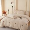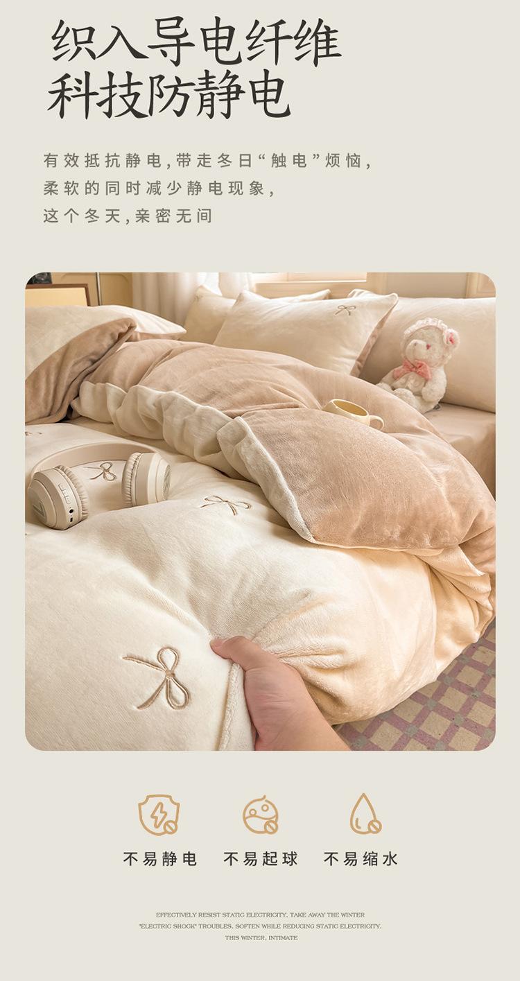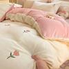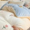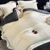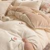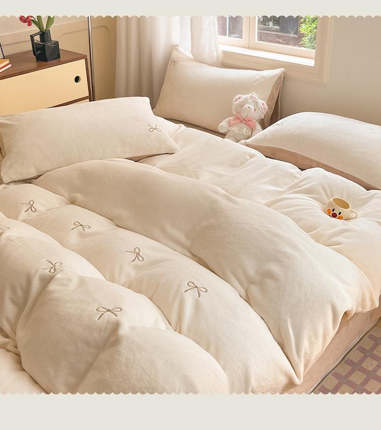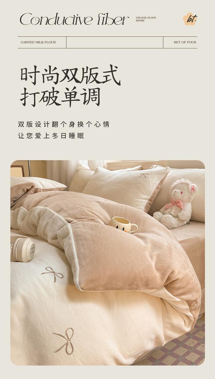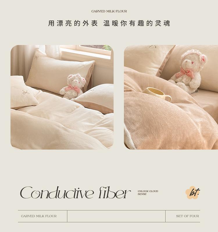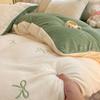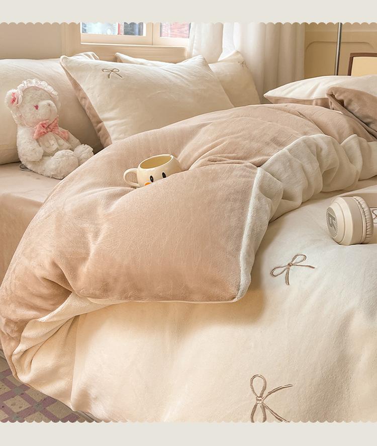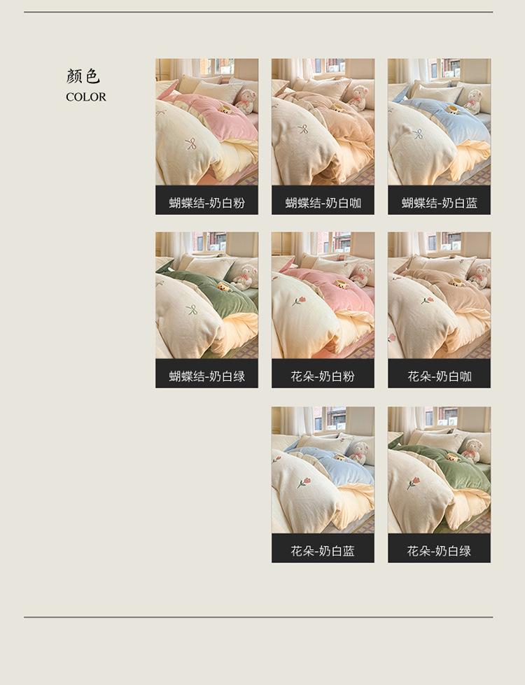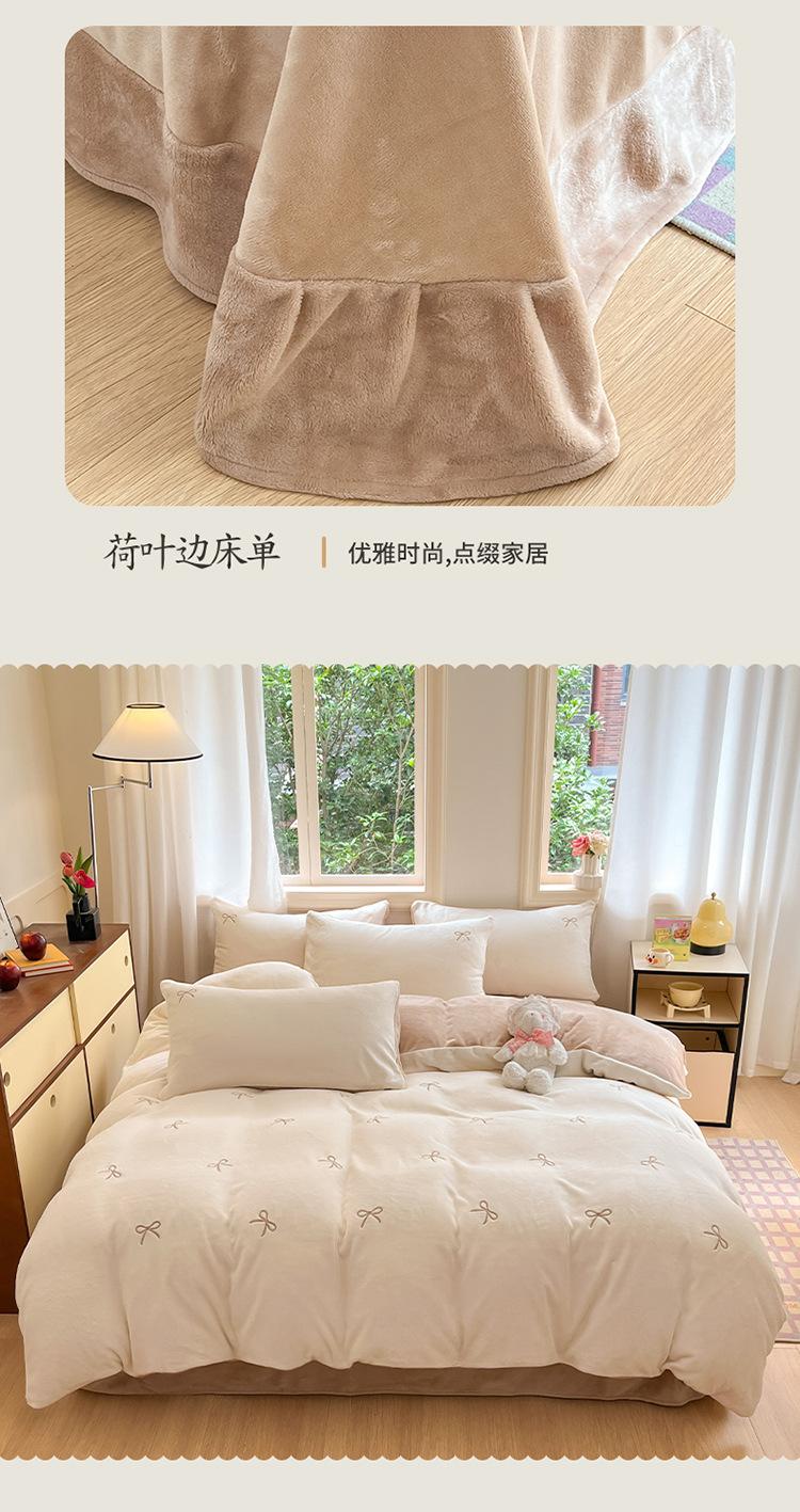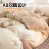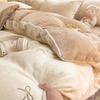Juego de tres o cuatro piezas de terciopelo de leche de color sólido engrosado, fresco, de doble color, invierno, forro polar de coral, estilo sábana bajera de forro polar de doble cara