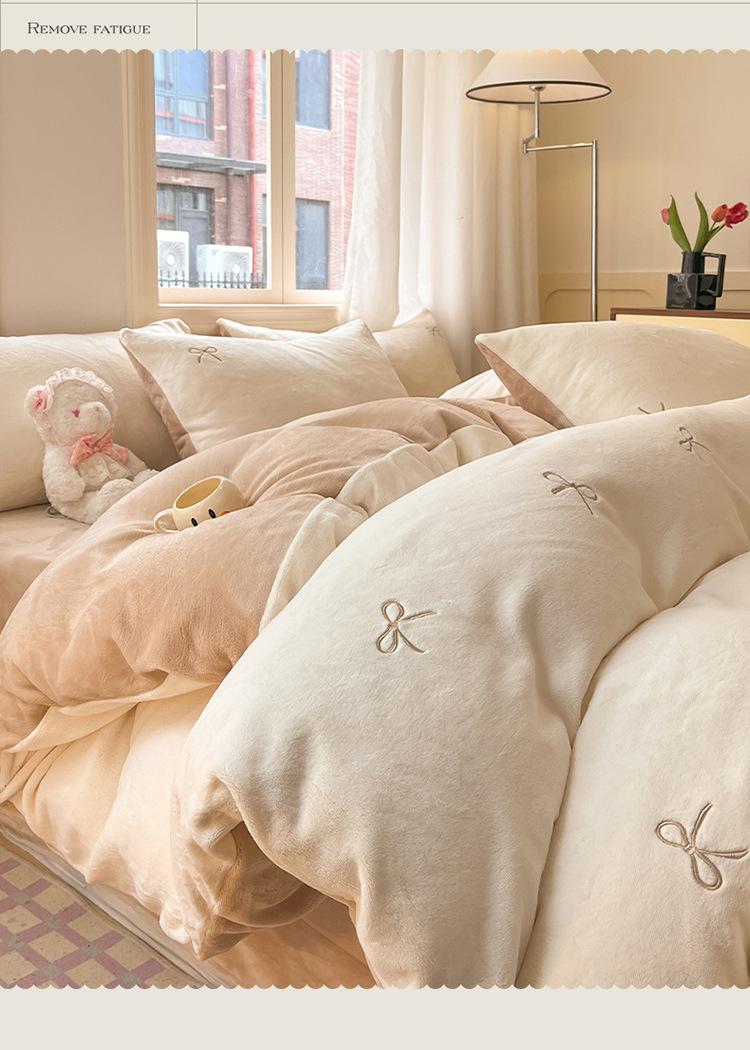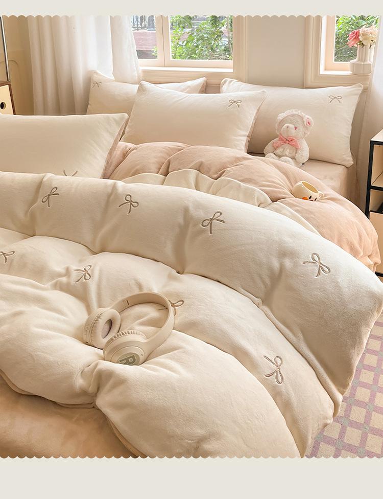 solid color, Bowknot-Milky White Coffee【Delicate Double-Sided Skin-Friendly Milk Velvet】, Bow - Milk White Gre...