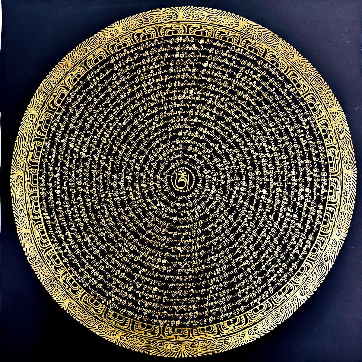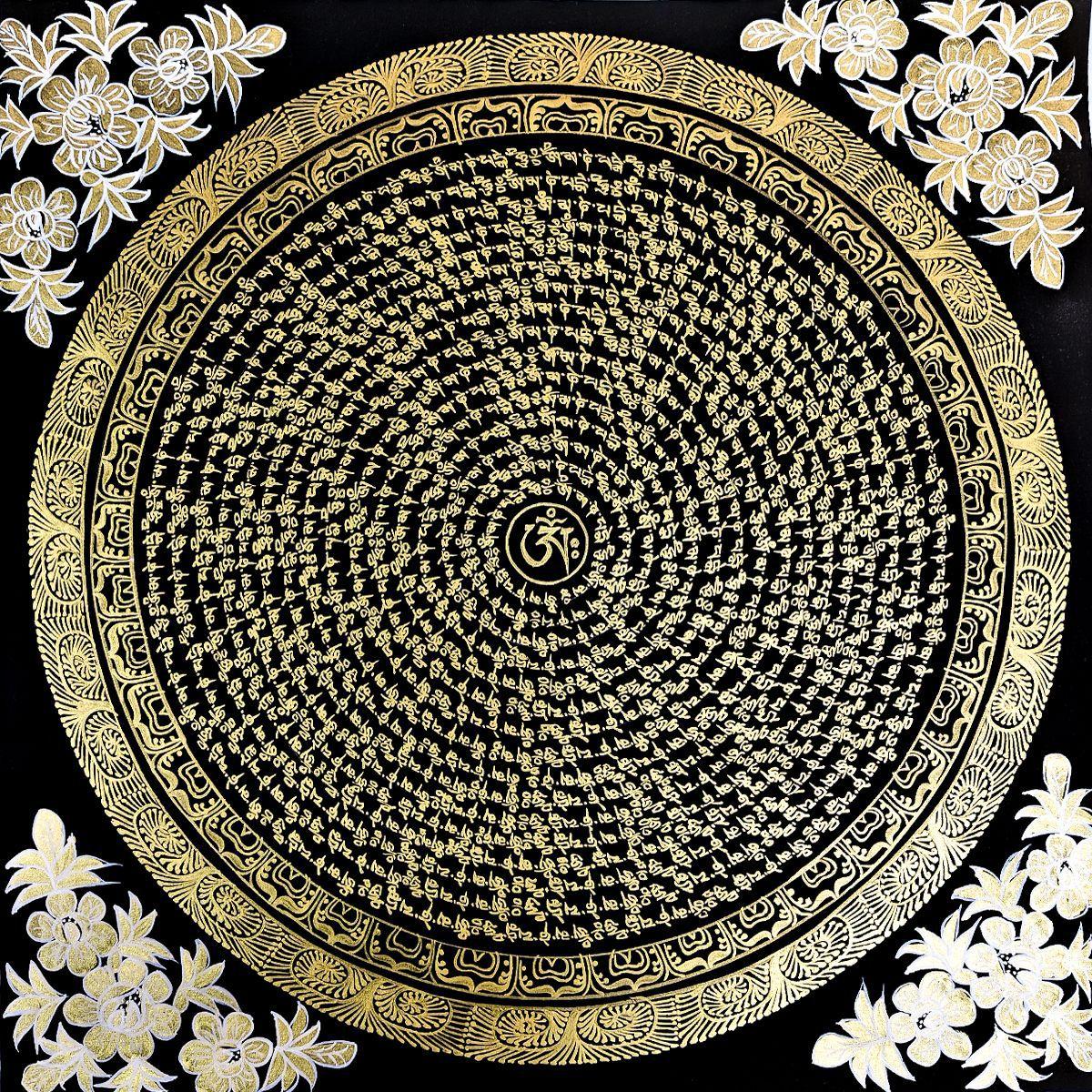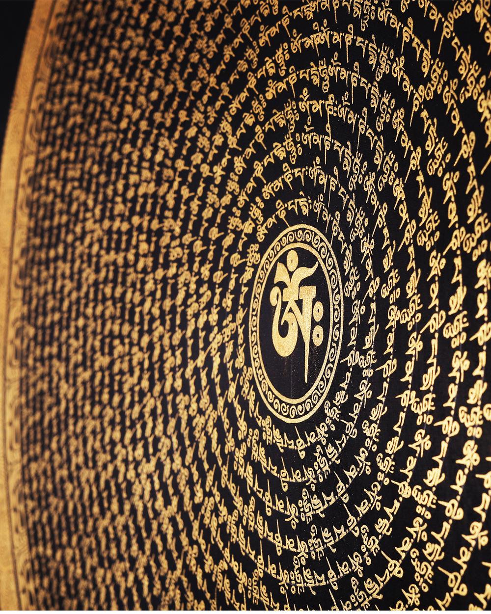 Thangka pintado a mano oro negro mantra de seis sílabas ciudad altar pintura decorativa sala de estar porche estudio club pintura colgante mantra del corazón de Guanyin