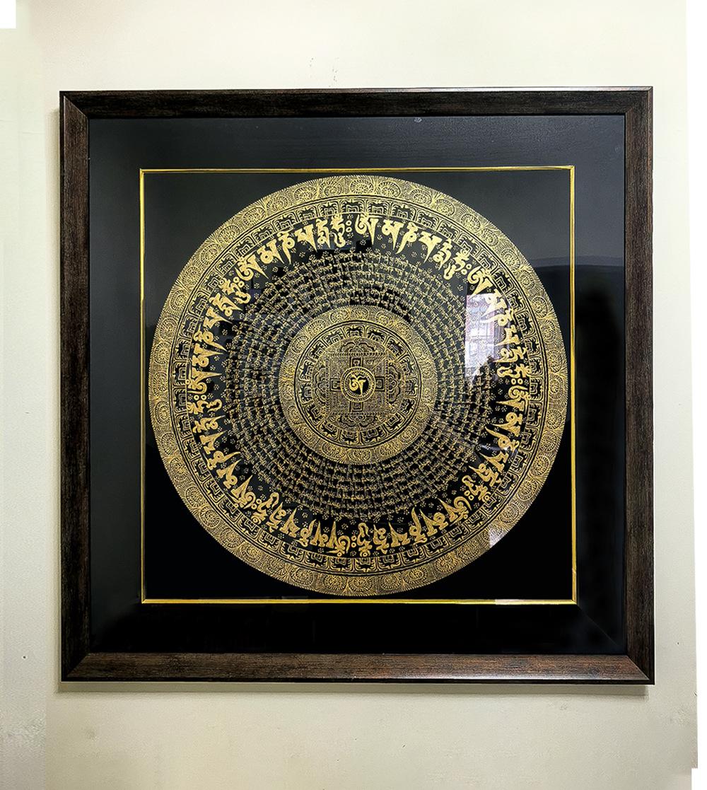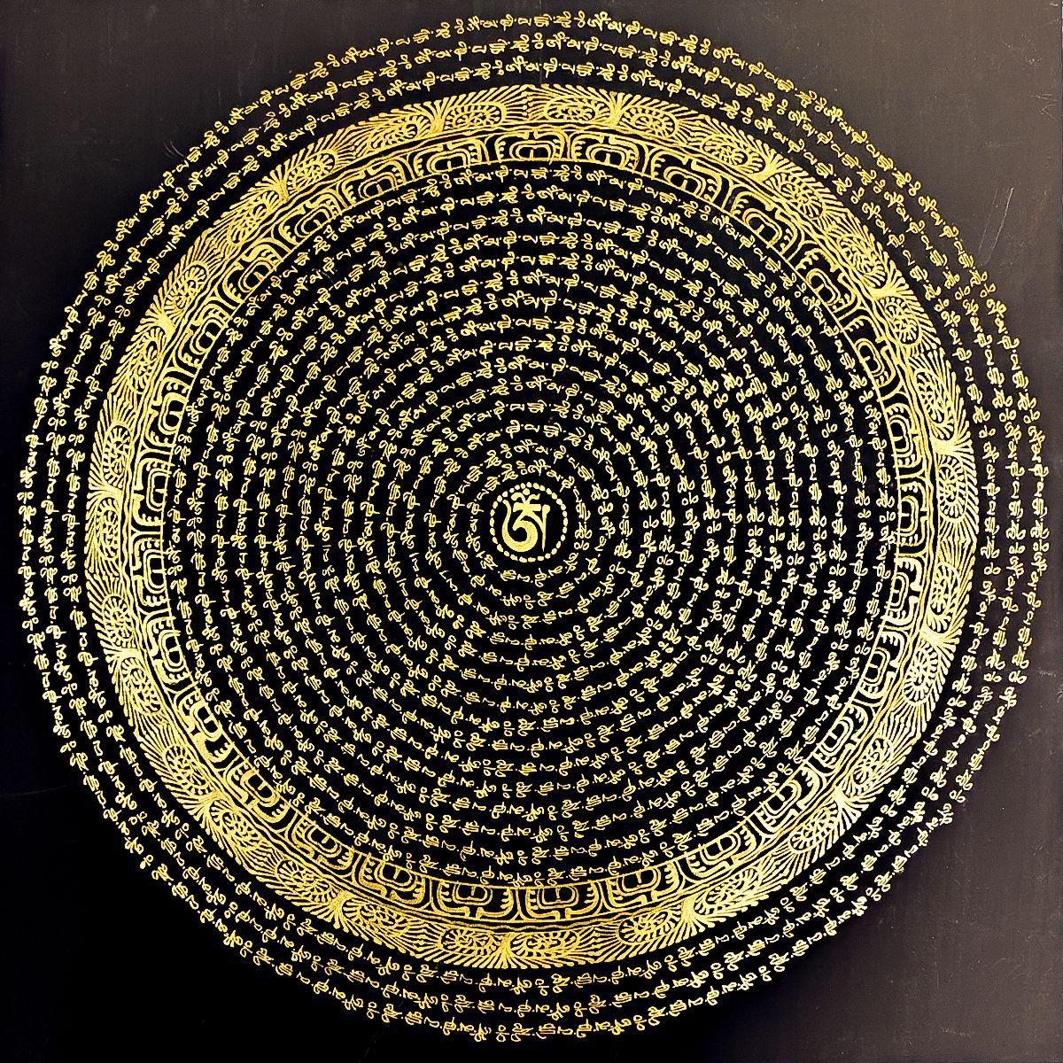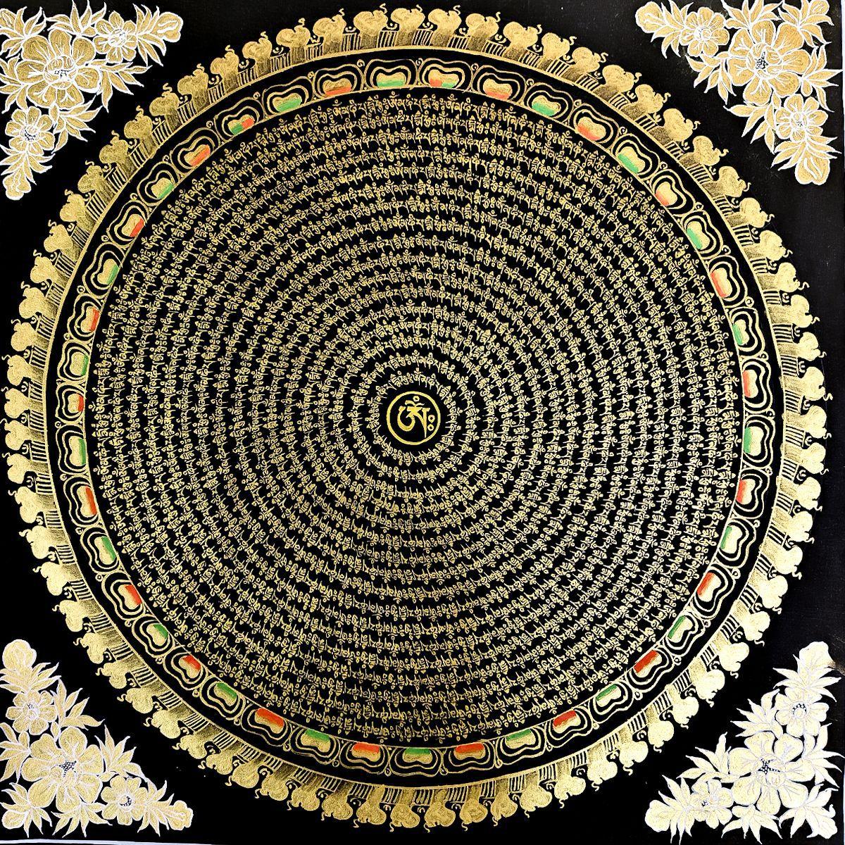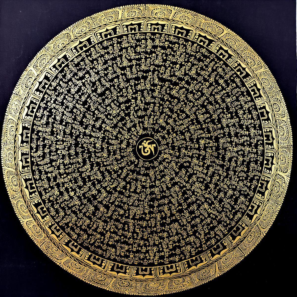Thangka pintado a mano oro negro mantra de seis sílabas ciudad altar pintura decorativa sala de estar porche estudio club pintura colgante mantra del corazón de Guanyin