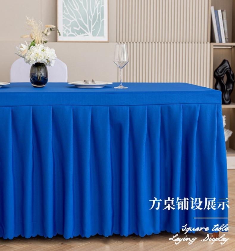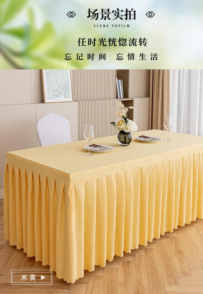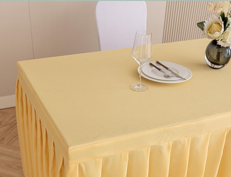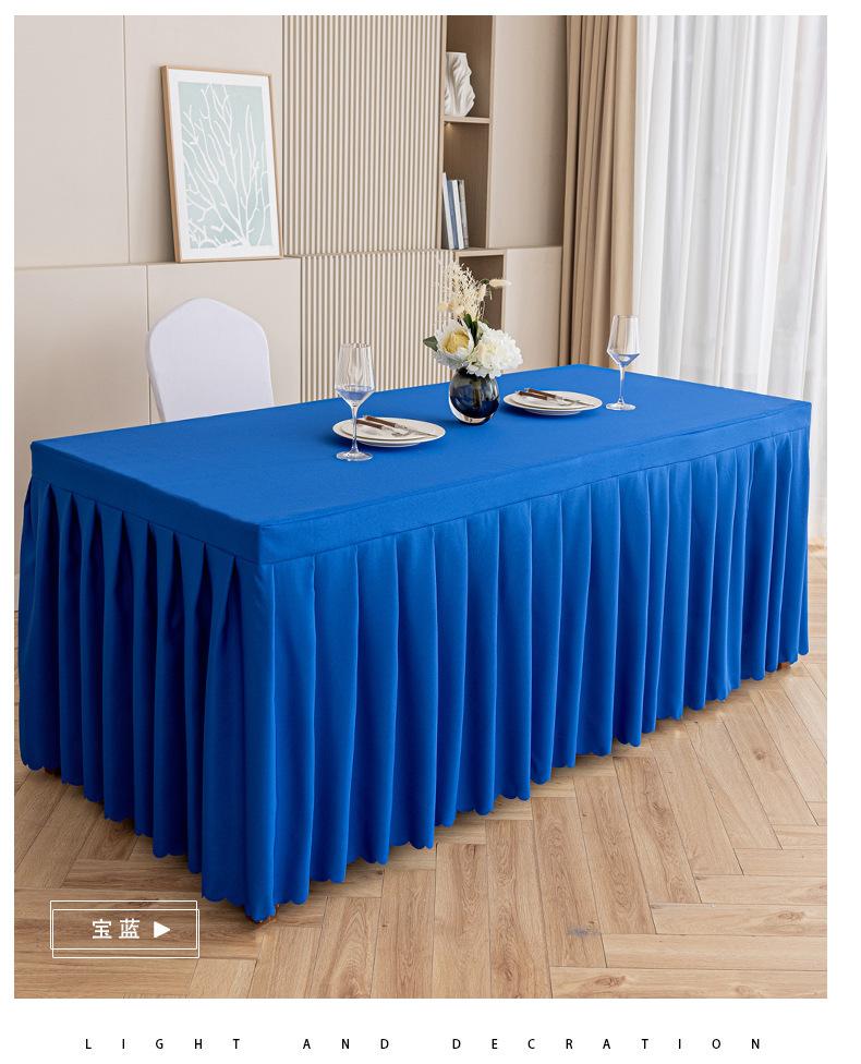 Falda para Mesa de Conferencia Rectangular de Color Sólido Antipolvo Decorativa de Poliéster Mantel con Volantes Anti-Arrugas para Banquete Boda