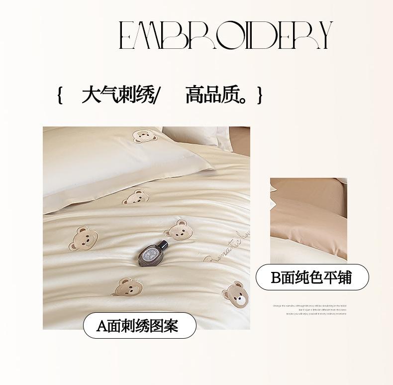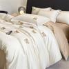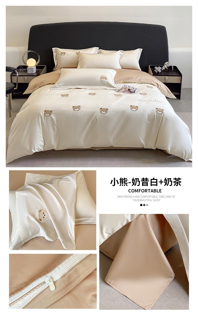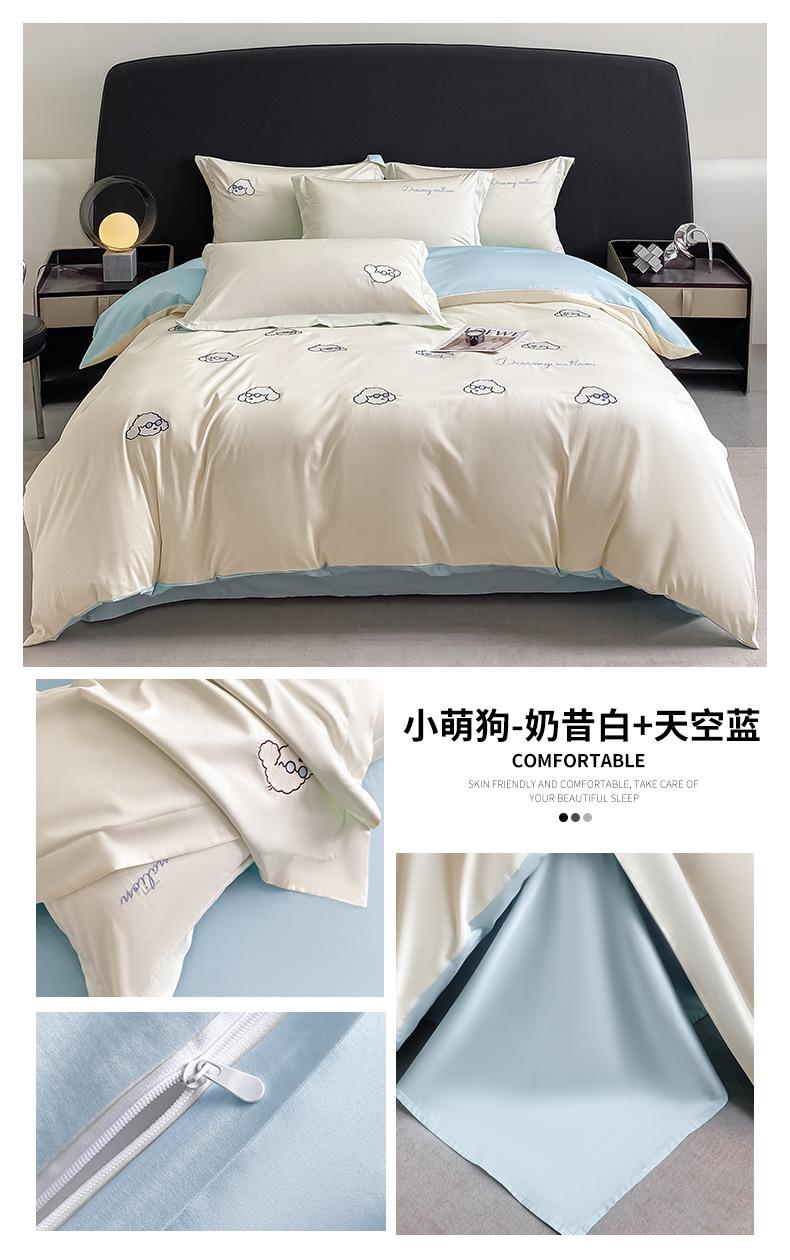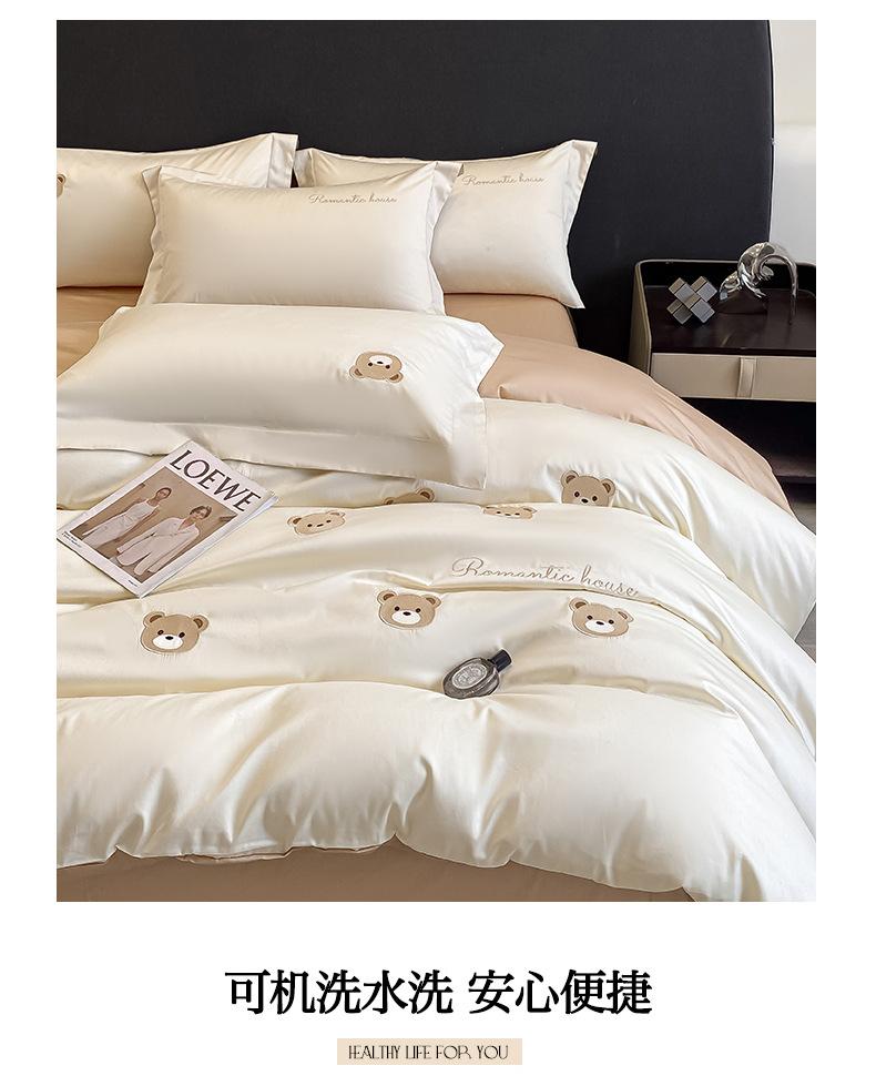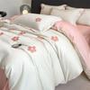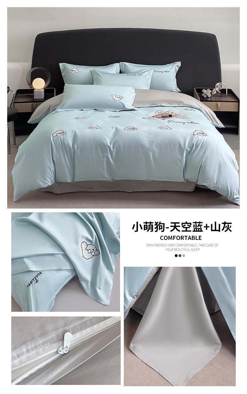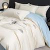 Juego de Funda Nórdica Bordada de Algodón Puro Fresco y Simple de Cuatro Piezas para Estudiantes, Juego de Tres Piezas, Algodón 100% Dibujos Animados Hogar Sábana de 1.5 Cama Funda Nórdica