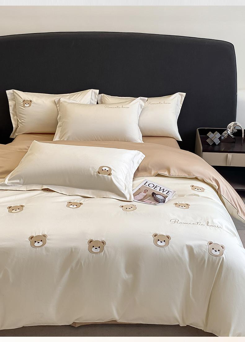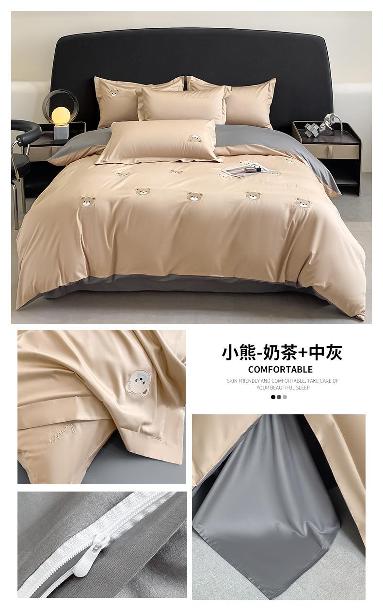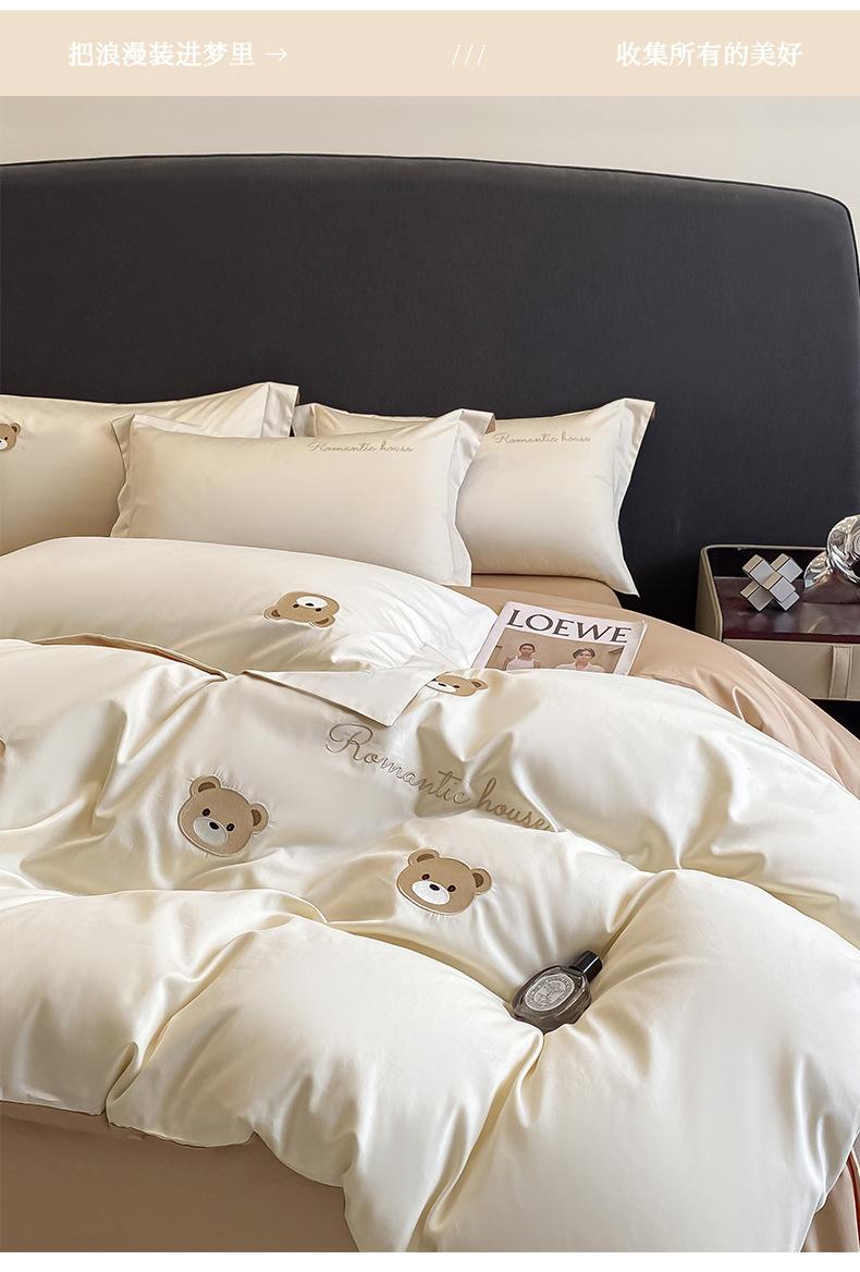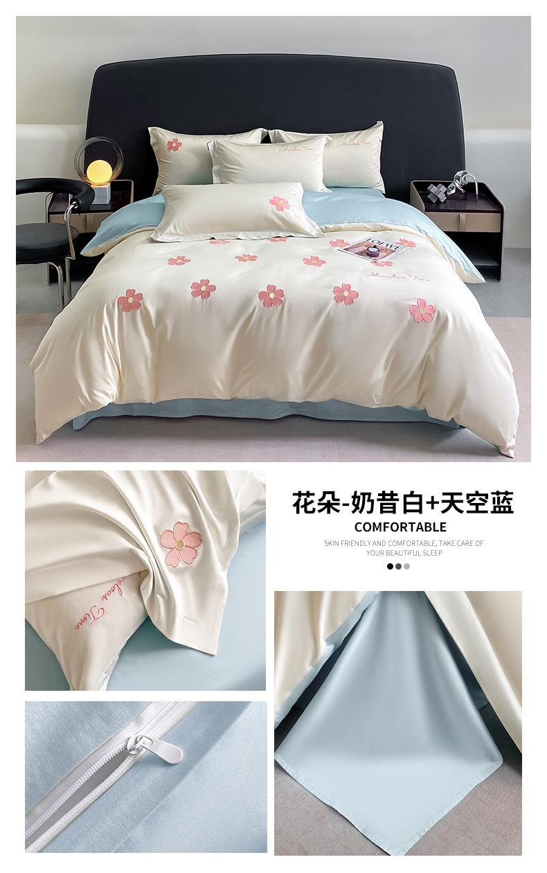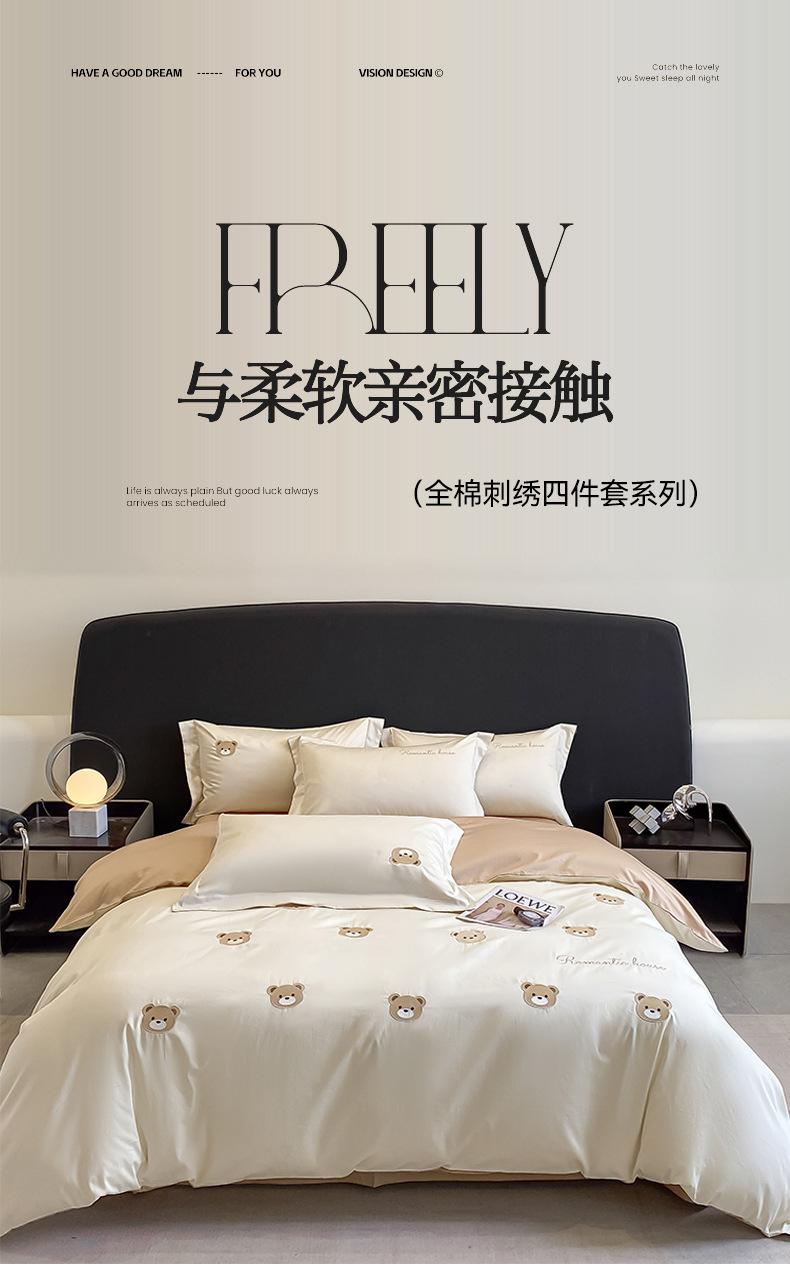 Juego de Funda Nórdica Bordada de Algodón Puro Fresco y Simple de Cuatro Piezas para Estudiantes, Juego de Tres Piezas, Algodón 100% Dibujos Animados Hogar Sábana de 1.5 Cama Funda Nórdica