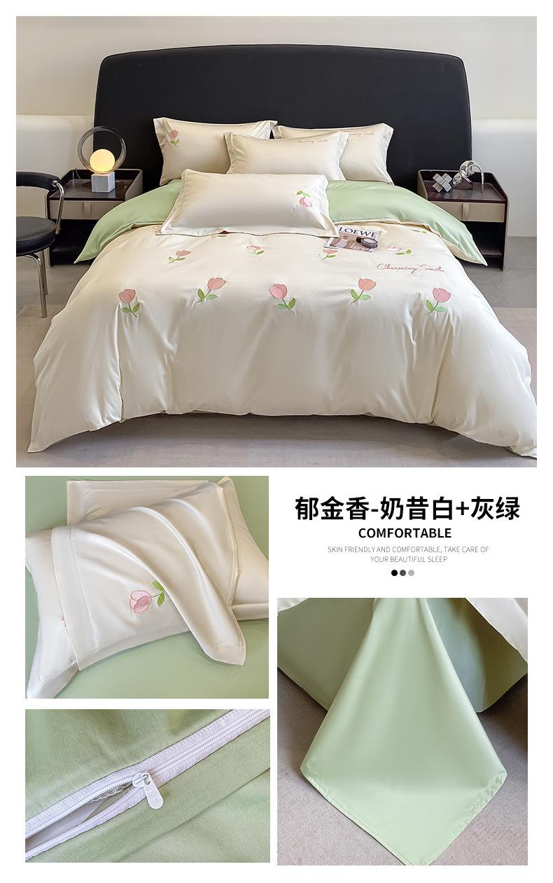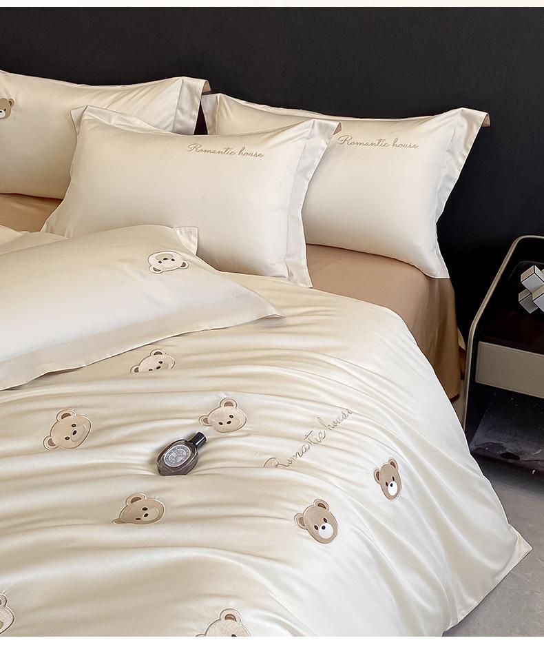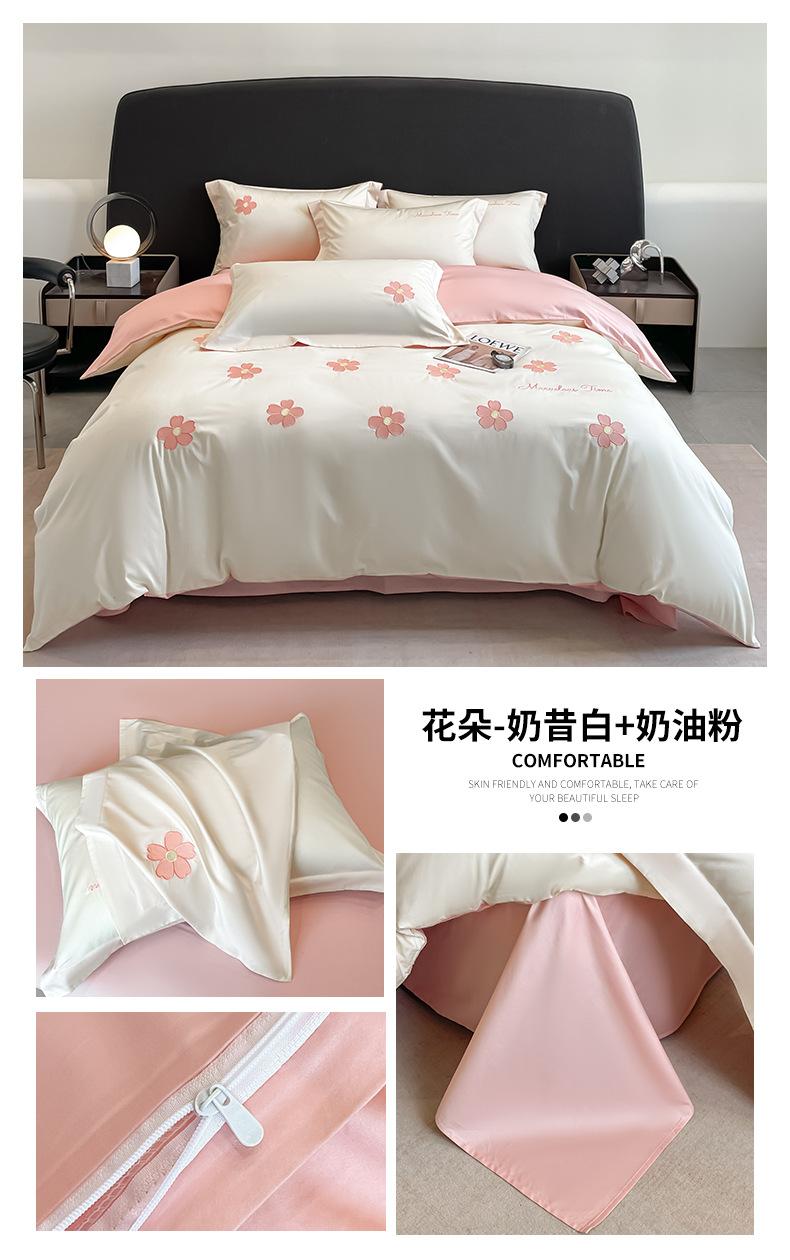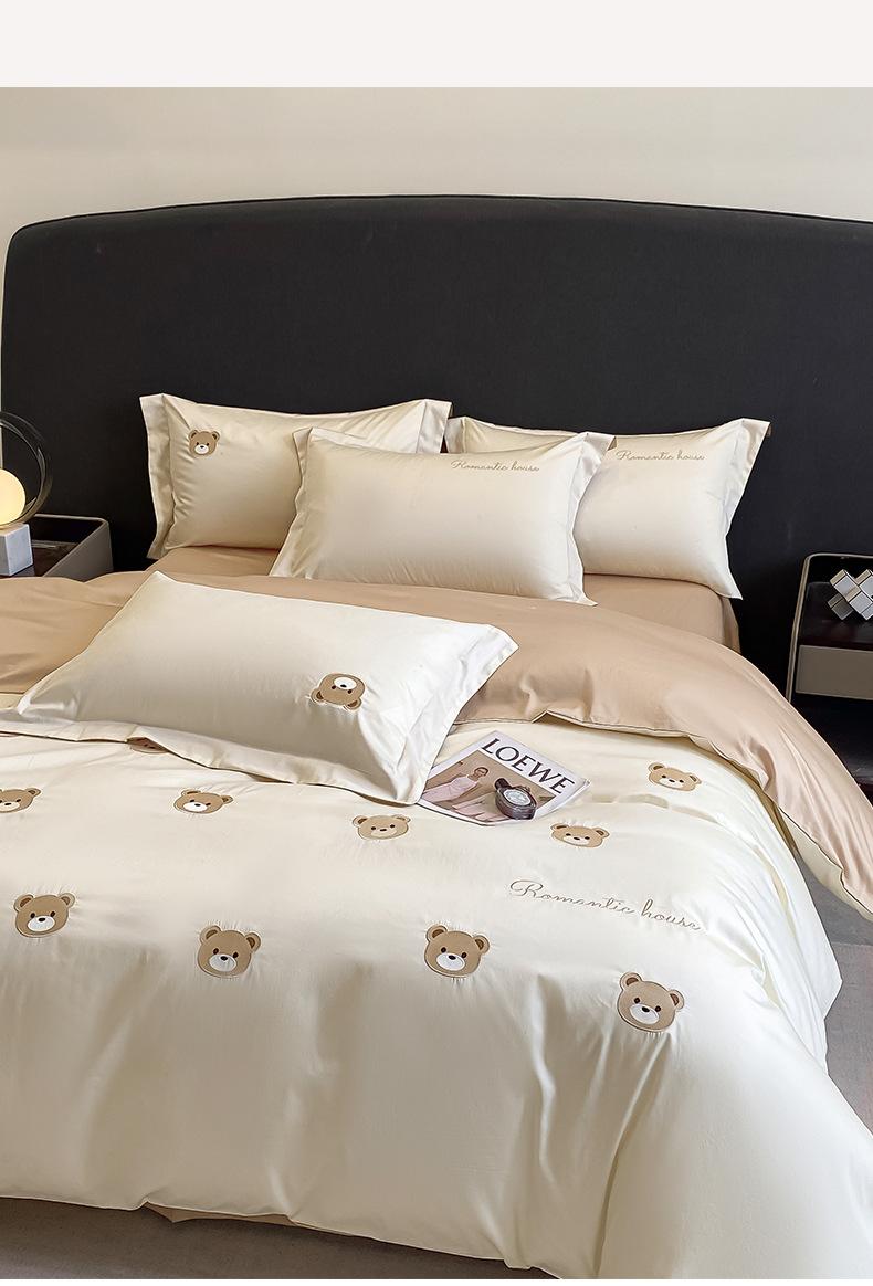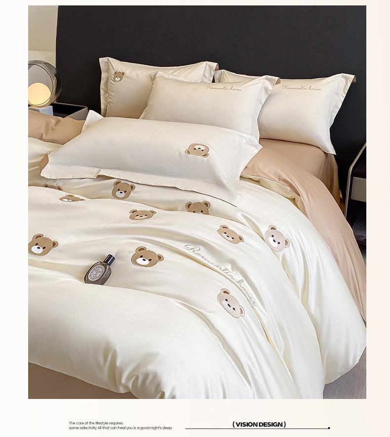 Juego de Funda Nórdica Bordada de Algodón Puro Fresco y Simple de Cuatro Piezas para Estudiantes, Juego de Tres Piezas, Algodón 100% Dibujos Animados Hogar Sábana de 1.5 Cama Funda Nórdica