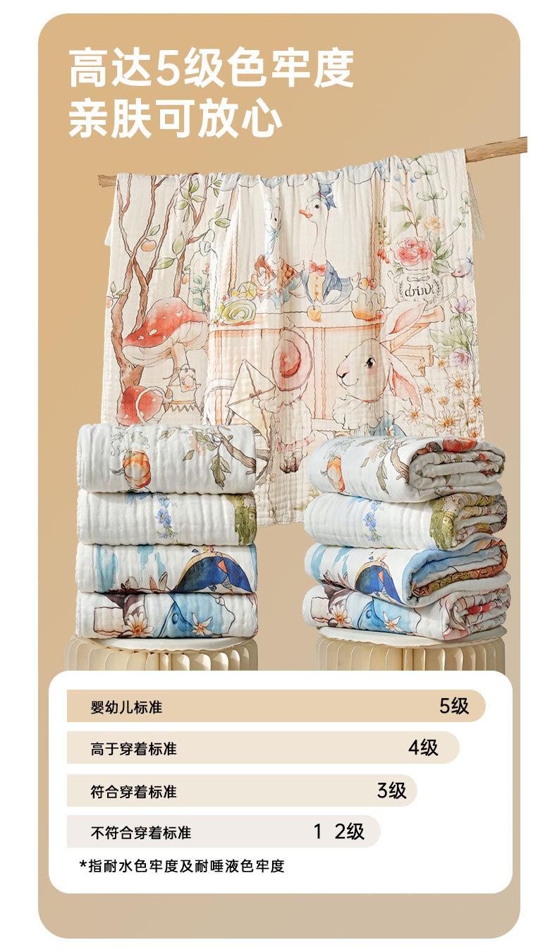 Toalla de Baño de Gasa de Seis Capas con Estampado Único para Bebé Recién Nacido Tipo Algodón Peinado una Manta para Bebé Edredón Acondicionado para Niños