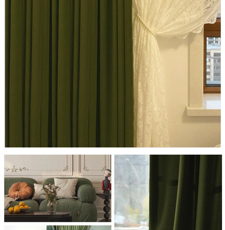 Cortinas estilo vintage francés opacas retro verde lana de alpaca americano dormitorio sala de estar atmosférico 2025 nuevo personalizado