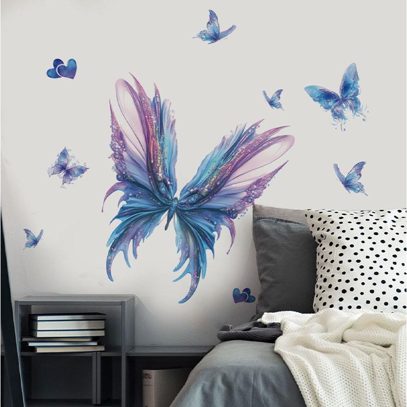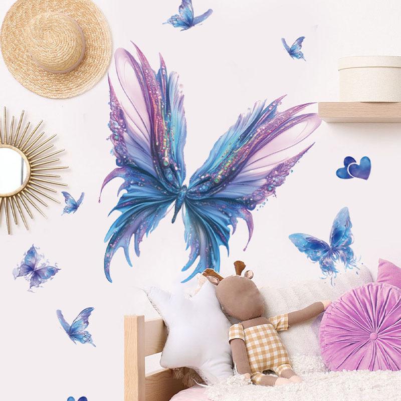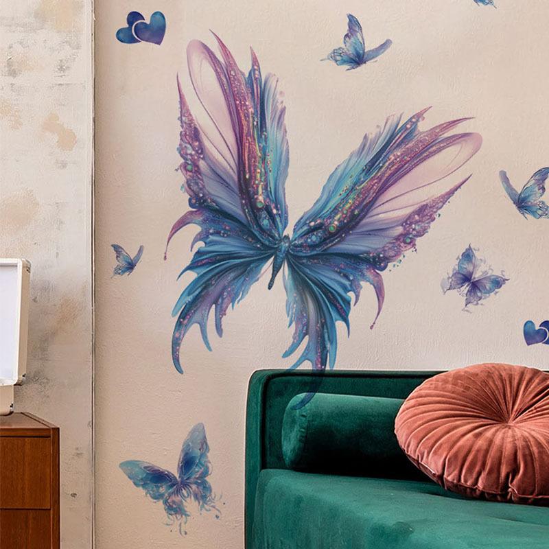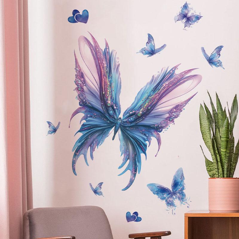 Adhesivo de pared de mariposa azul transfronterizo dormitorio sala de estar cocina adhesivo de pared interesante pegatina de decoración para el hogar autoadhesivo PVC removible
