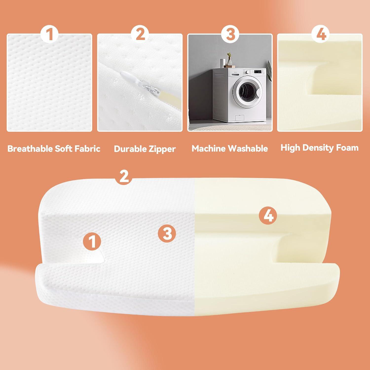 Almohada Cuña de Cama Almohada Antirronquidos Cojín para Alivio del Reflujo Ácido Cojín de Soporte para Espalda y Piernas Almohada para Leer en la Cama