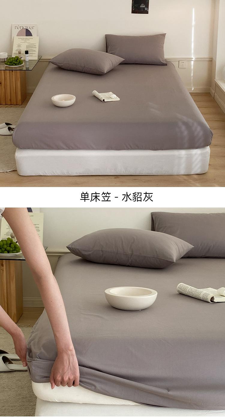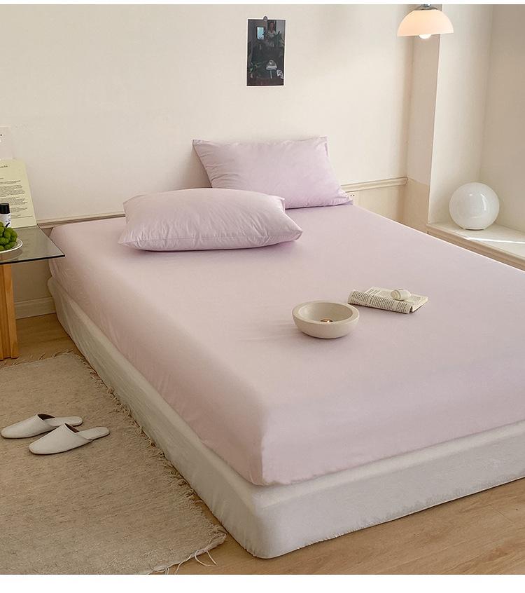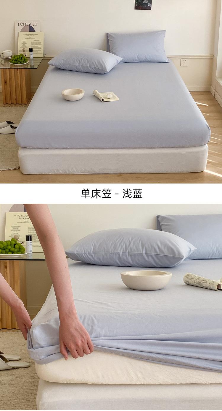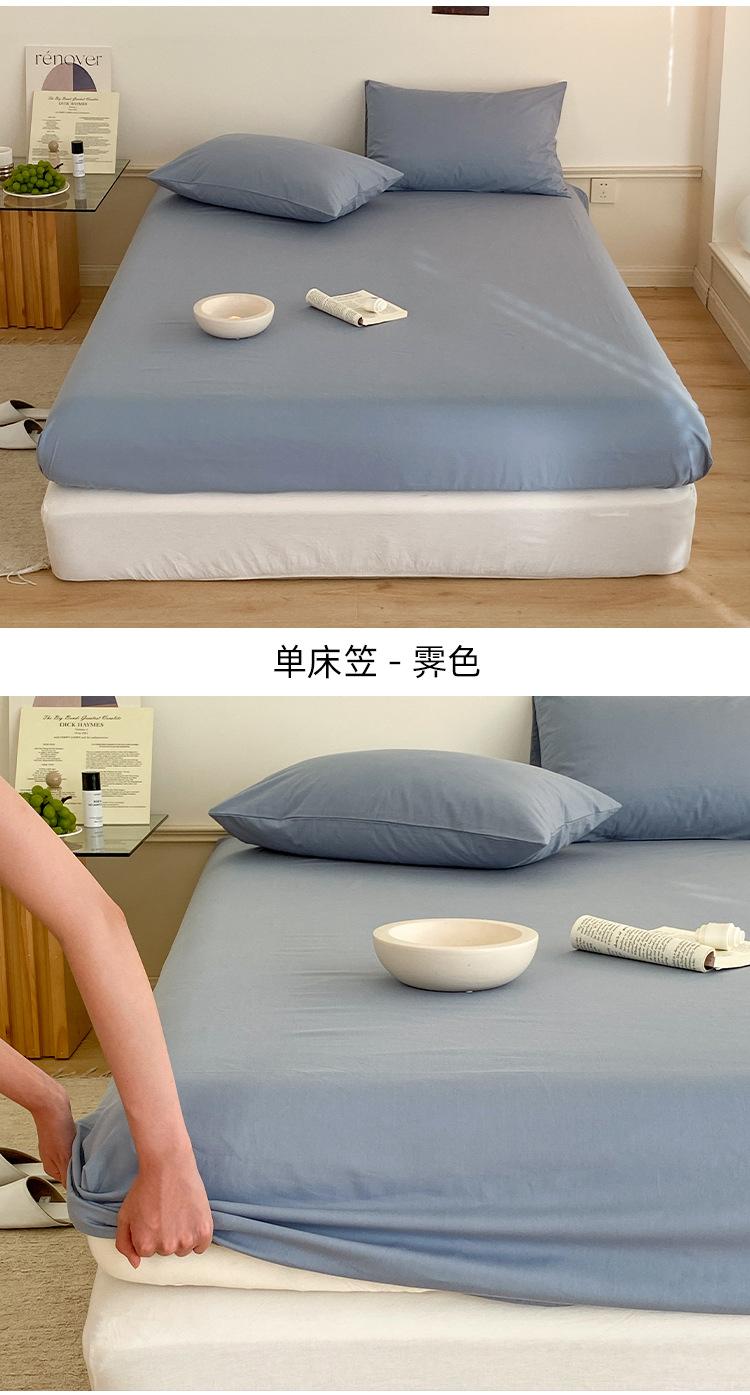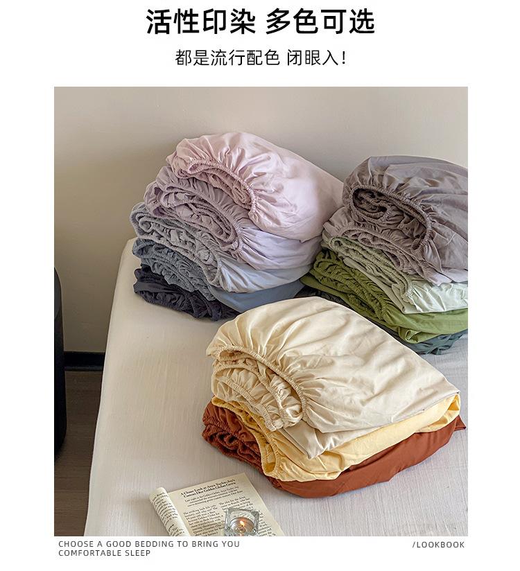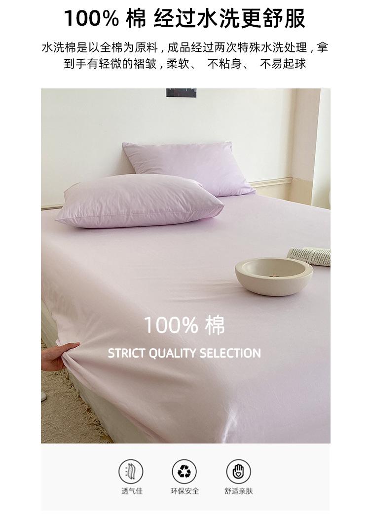 Primavera/Verano Simple Color Sólido 100% Algodón Algodón Lavado Sábana Ajustable Pieza Única Algodón Puro Colcha Sábana Juego de Tres Piezas para Dormitorio de Estudiante