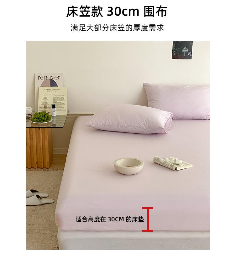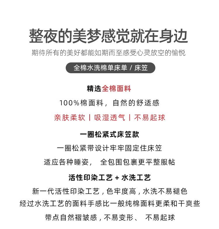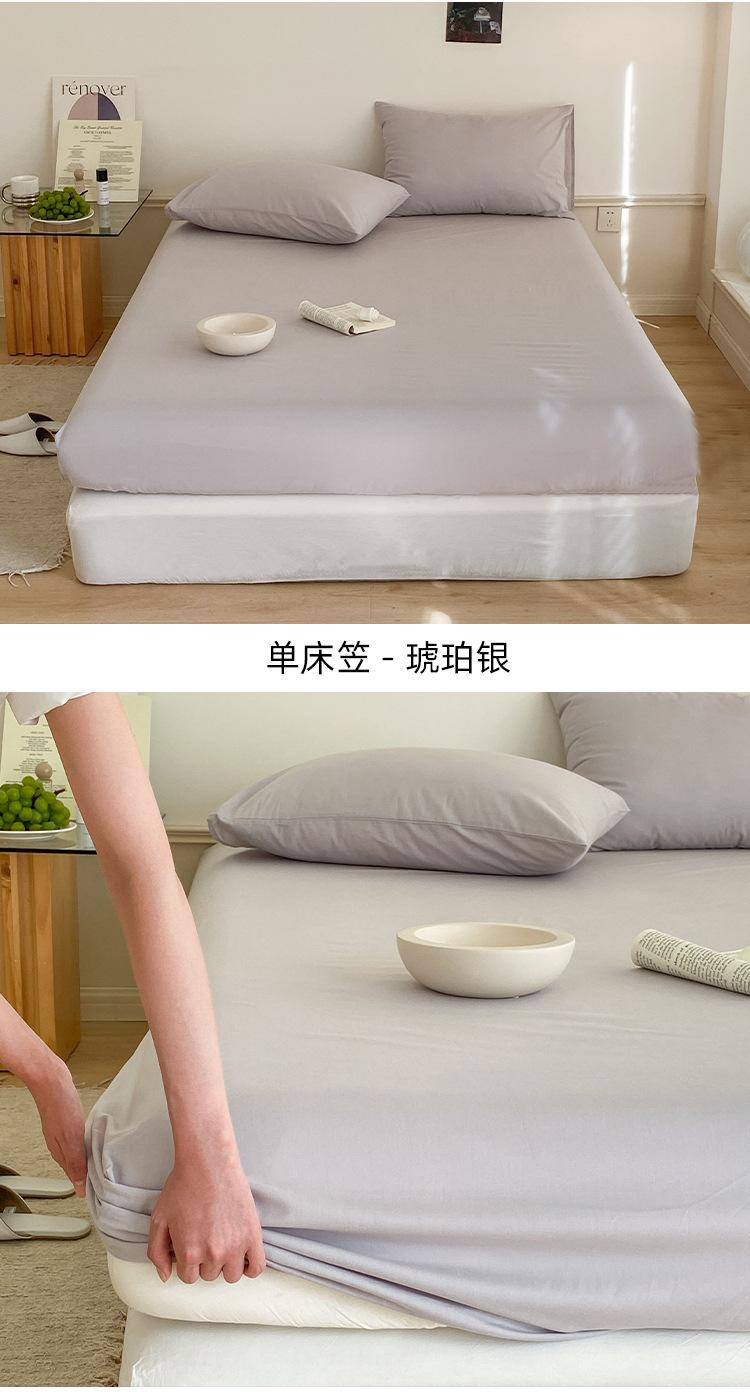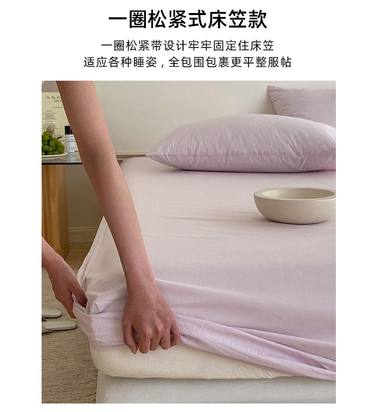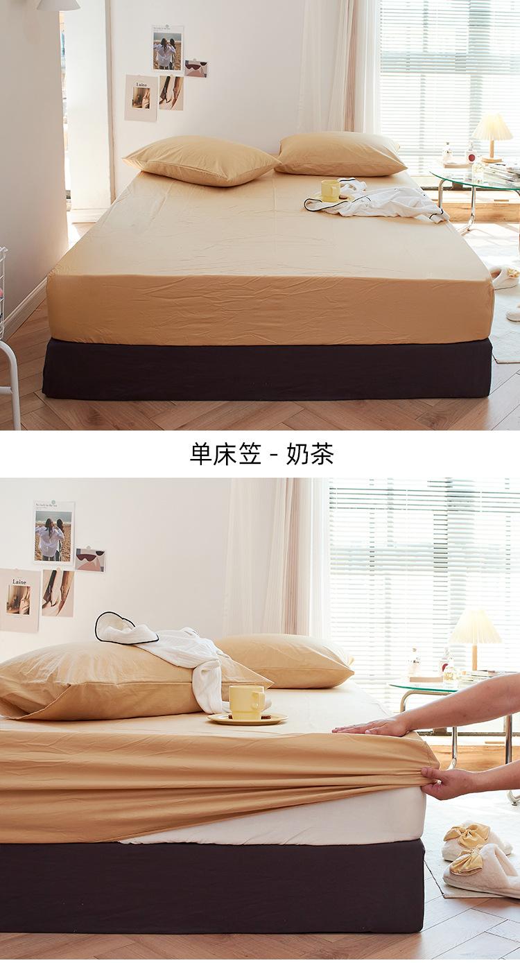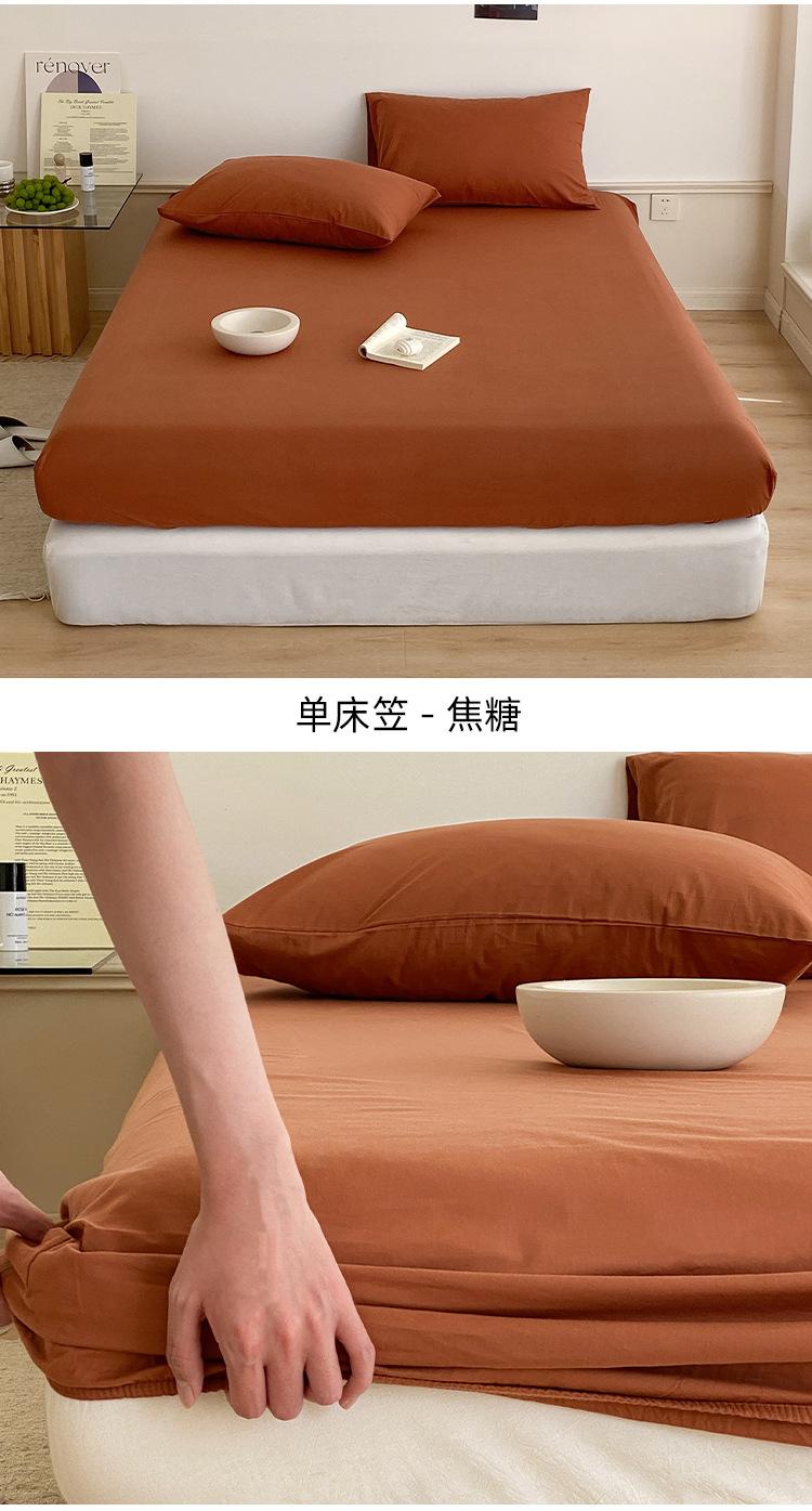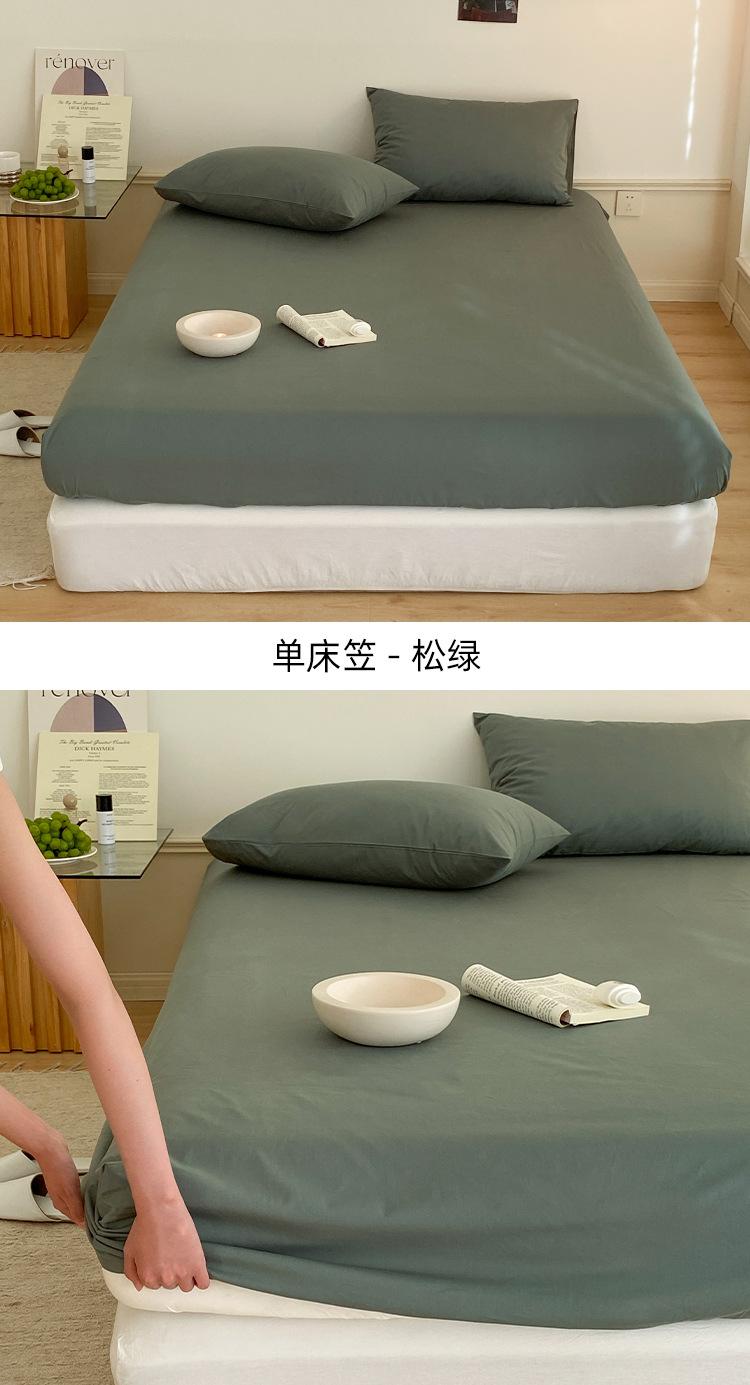 Primavera/Verano Simple Color Sólido 100% Algodón Algodón Lavado Sábana Ajustable Pieza Única Algodón Puro Colcha Sábana Juego de Tres Piezas para Dormitorio de Estudiante