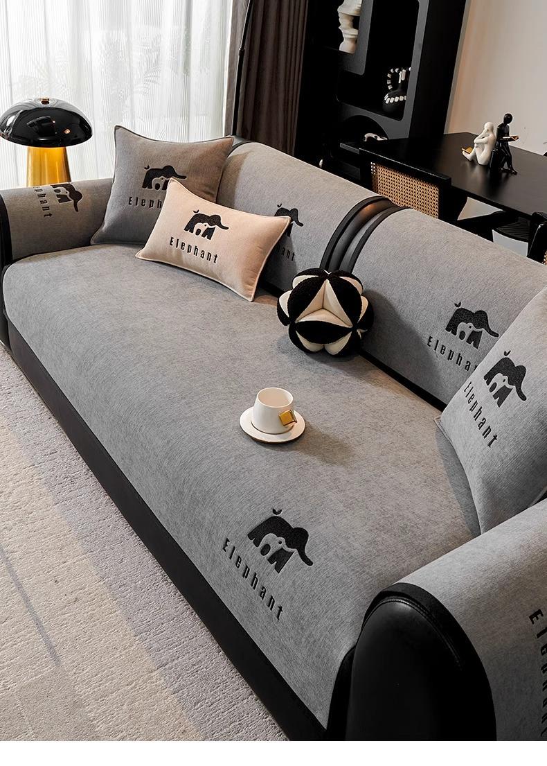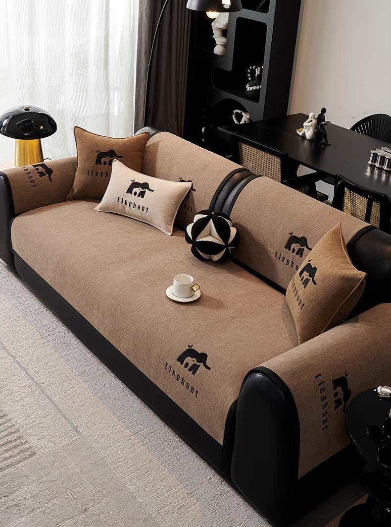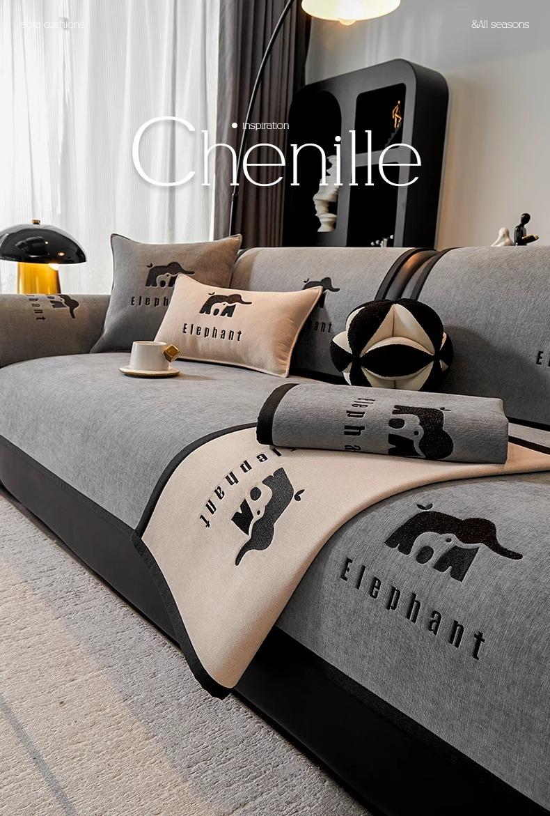 Cojín de Sofá de Chenilla de Lujo Ligero Universal para las Cuatro Estaciones Nuevo 2025 Antideslizante Fila Recta Cuero Cobertura de Tela para Cojín de Asiento de Sofá
