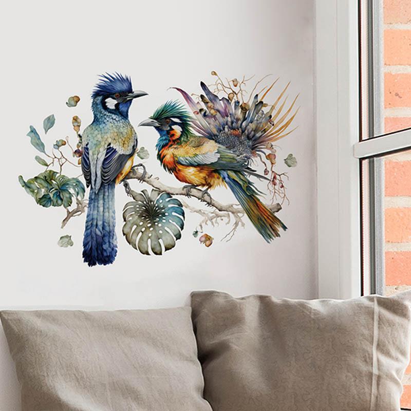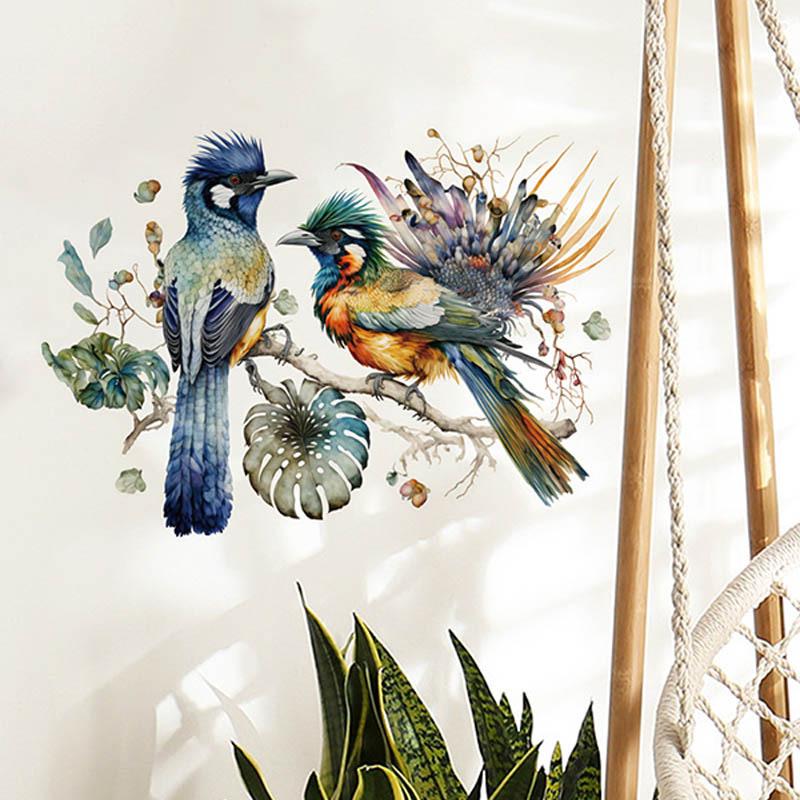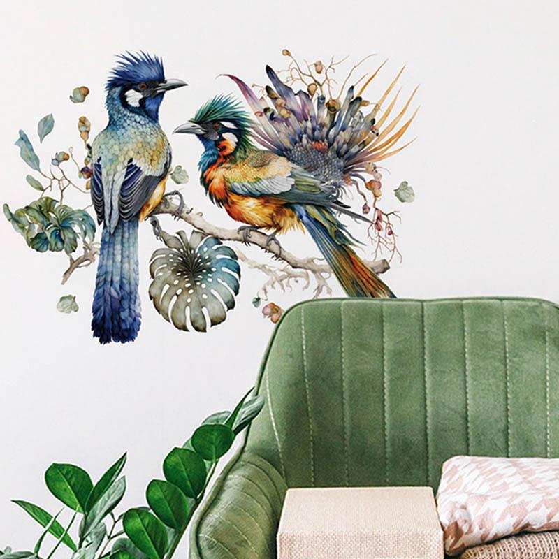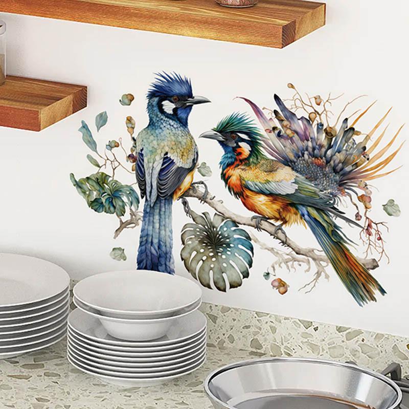 Adhesivo de pared verde transfronterizo dos loros adhesivo de pared cocina sala de estar dormitorio interesante decoración del hogar adhesivo autoadhesivo PV