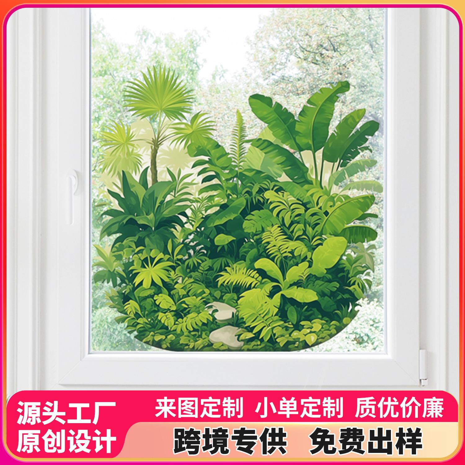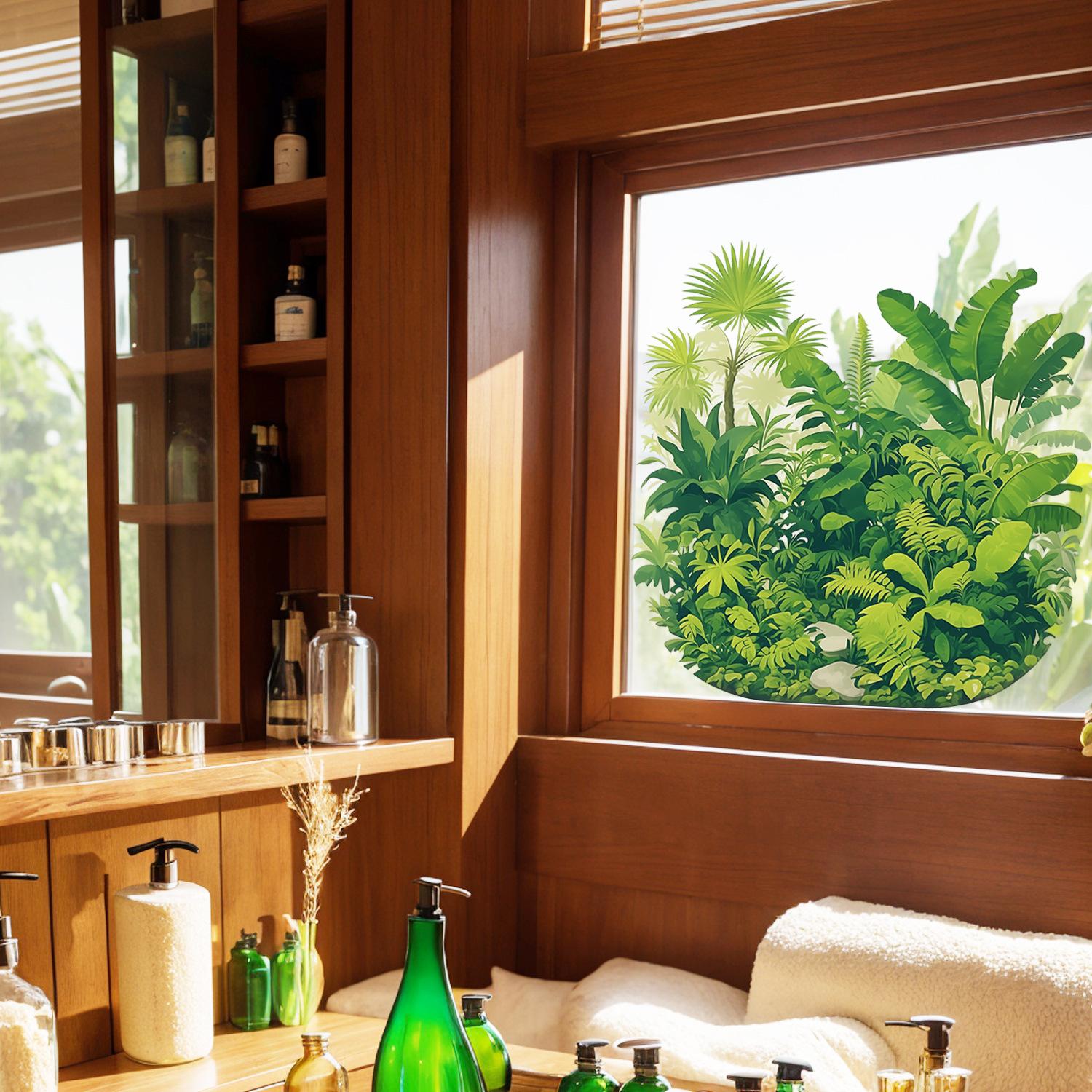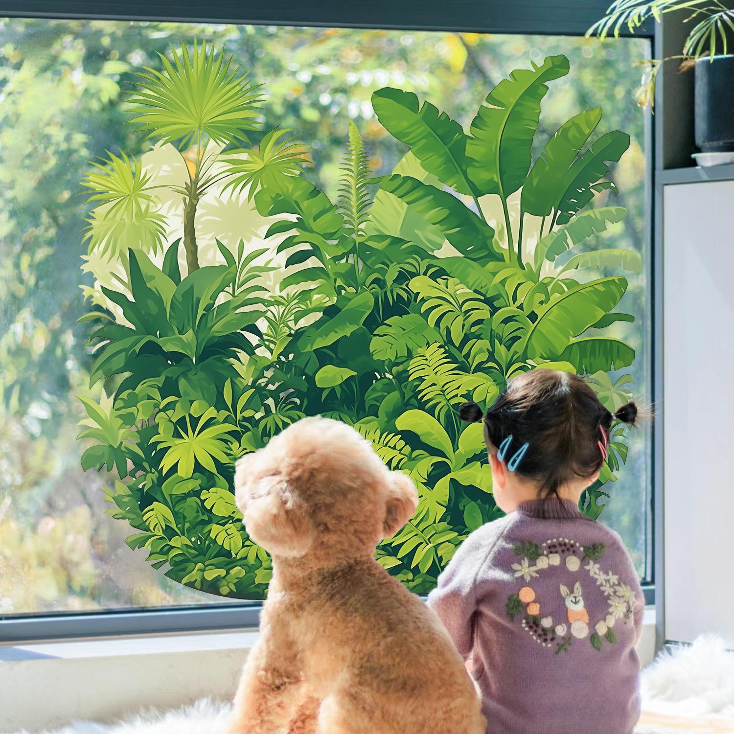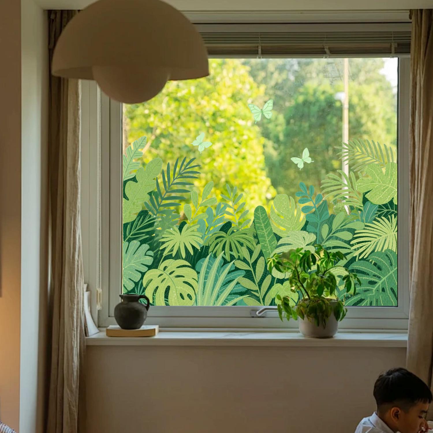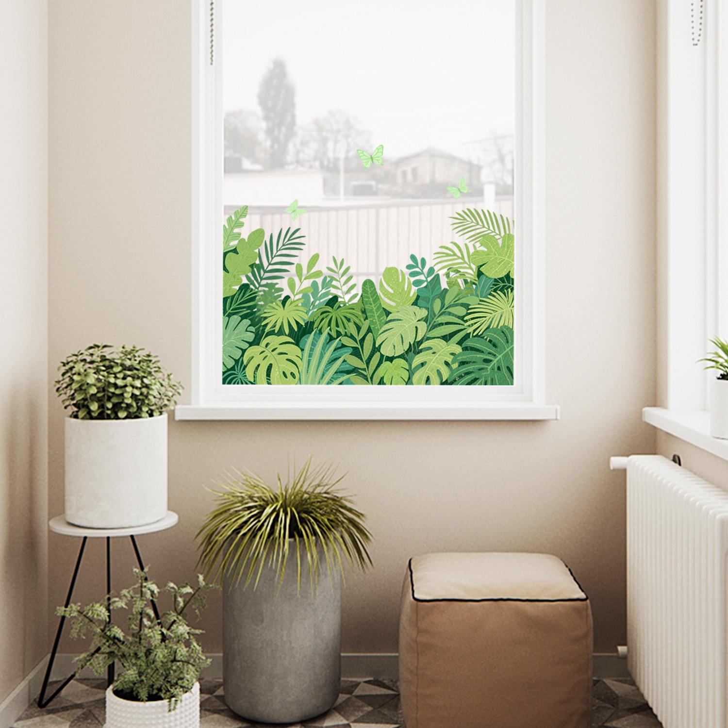 Nueva pegatina electrostática transfronteriza de hojas y flores tropicales verdes, decoración para balcón, dormitorio, cocina, hogar, pegatina para ventana al por mayor