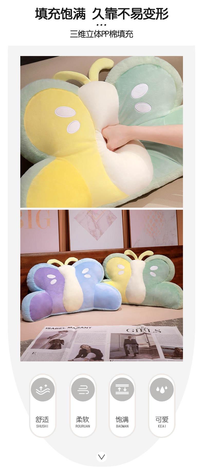 Almohada Mariposa Linda Cabecera Respaldo Paquete Suave Respaldo Grande Oficina Sentado Prolongado Almohada Soporte Lumbar Cama Almohada para Lectura