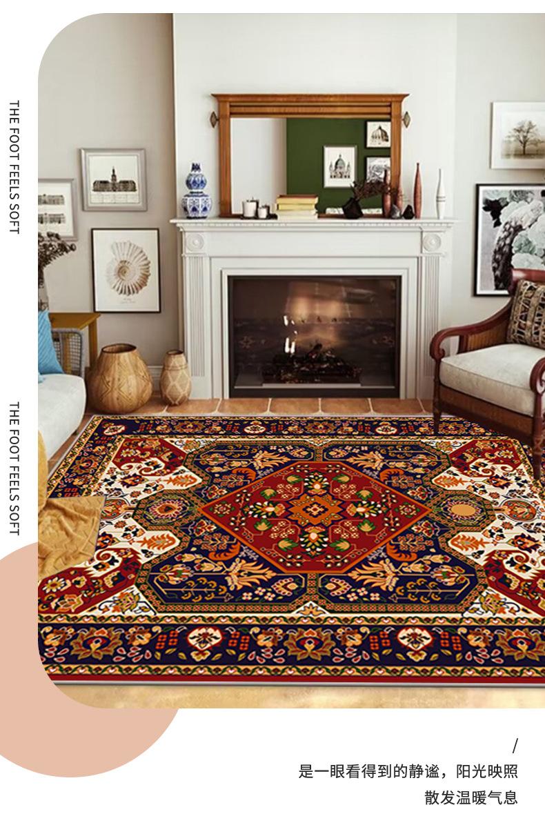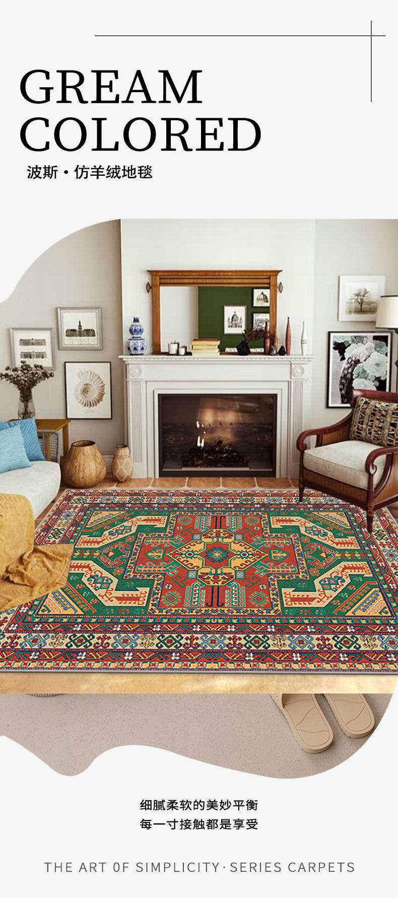 Alfombra Americana Retro Transfronteriza Estilo Étnico Persa Sala de Estar Sofá Mesa de Centro Felpudo Imitación Cachemira Dormitorio Cama Manta de Noche