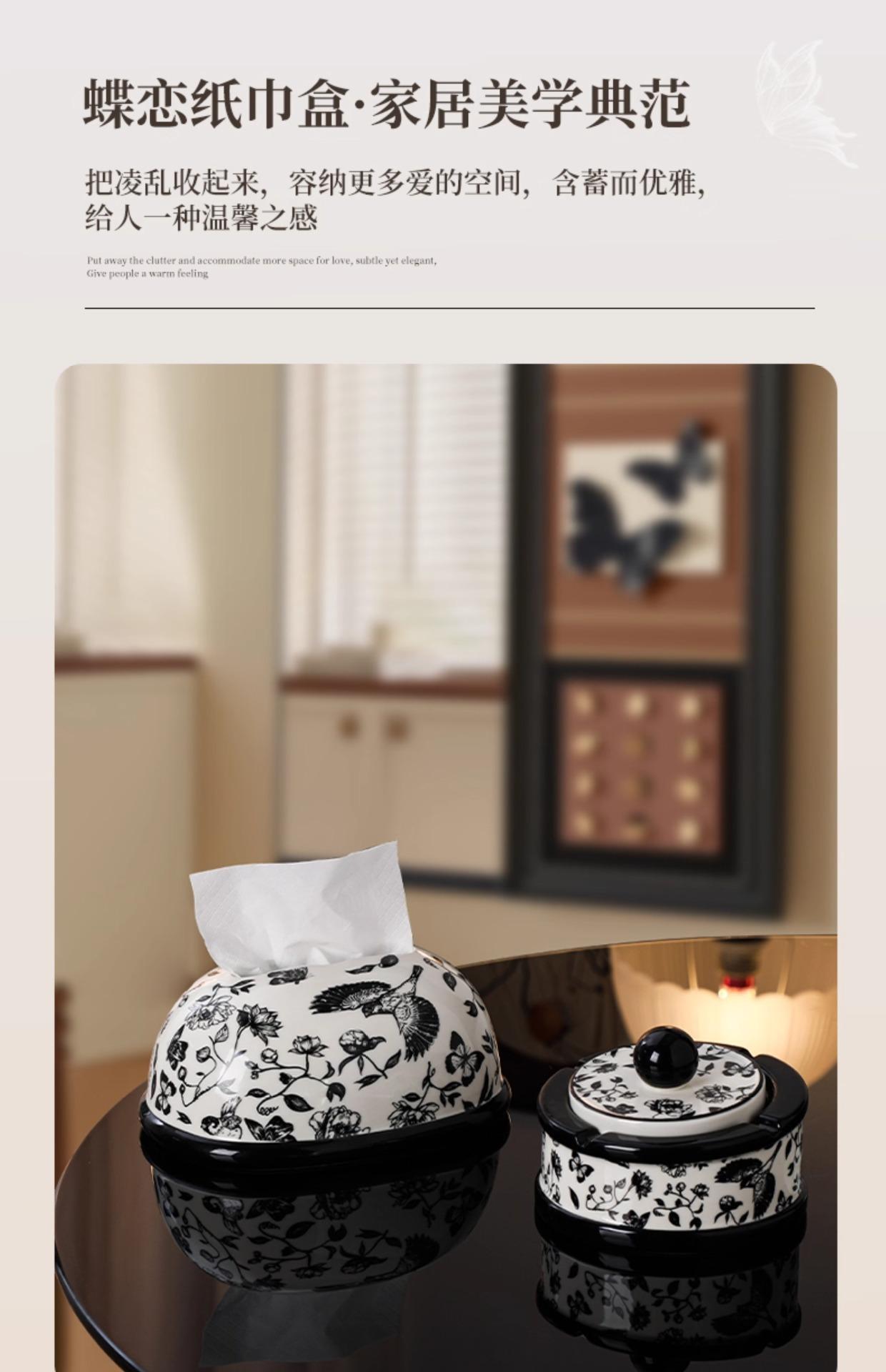 Ceramic Butterfly Love Ashtray - with Lid, Ceramic Butterfly Love Tissue Box - Includes Spring Bottom, Butterf...