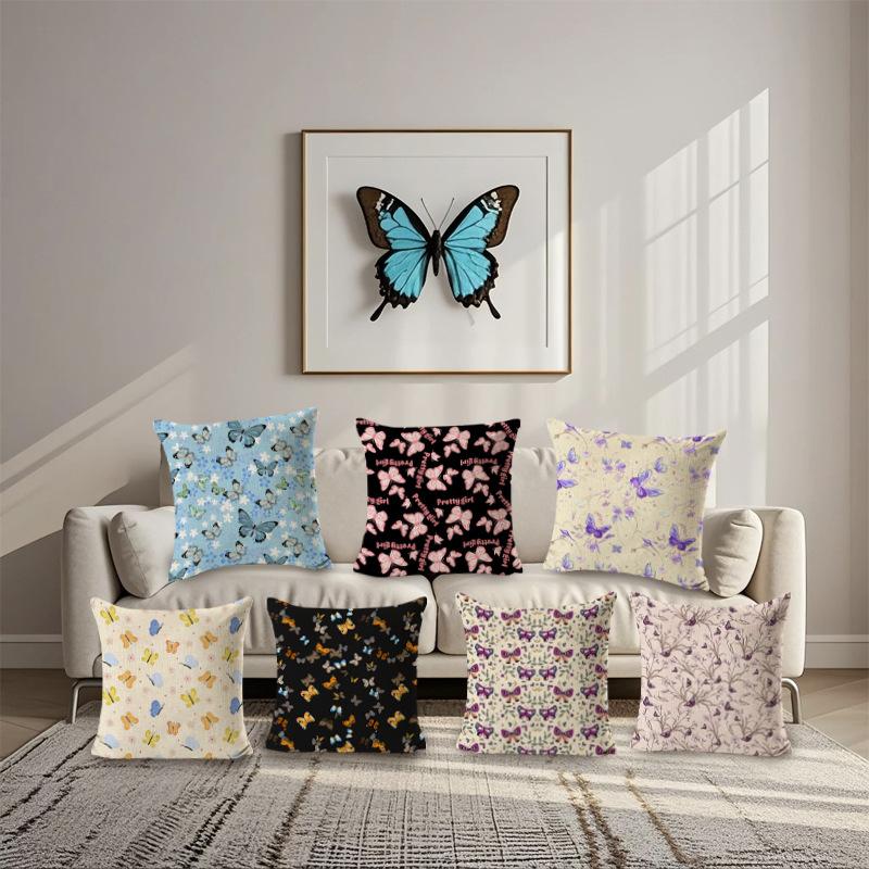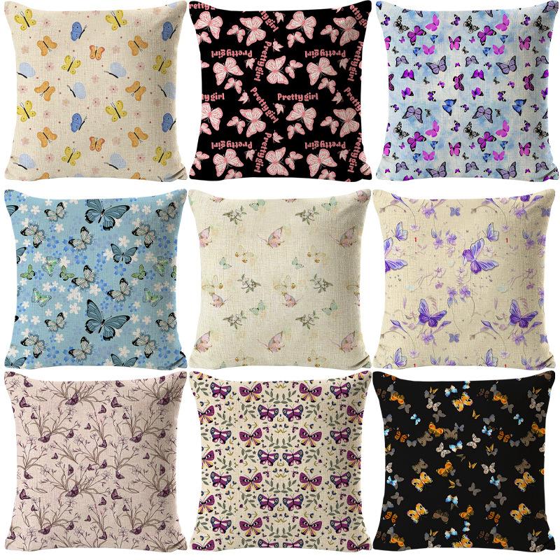 Funda de Almohada de Mariposa de Segunda Mano Lino Estampado Cojín de Sofá Cojín Funda de Almohada Venta Directa de Fábrica a partir de una pieza