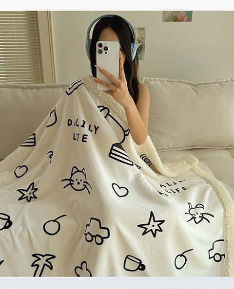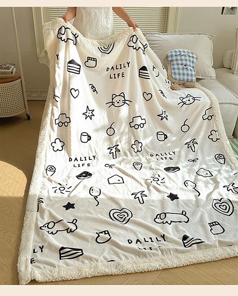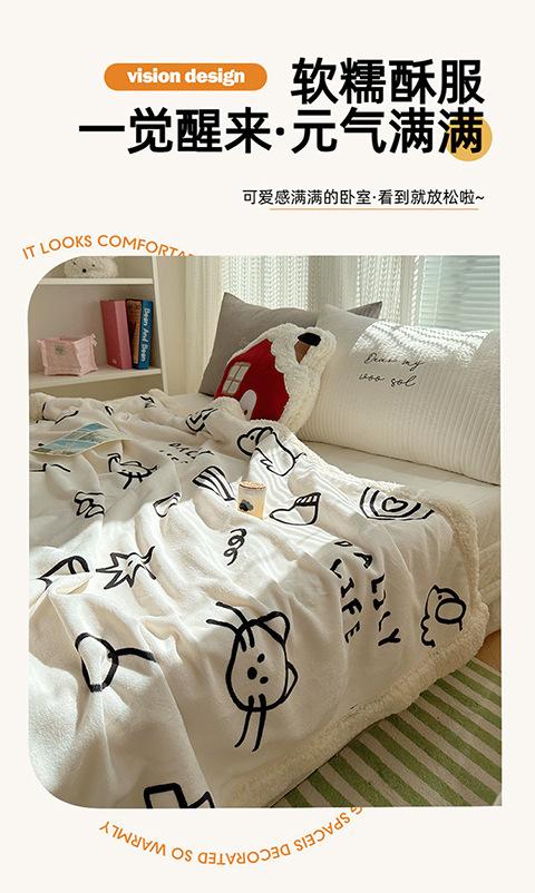 Manta de terciopelo de leche clase A de dibujos animados linda de bloguera INS manta lana de cordero engrosada manta infantil funda para siesta