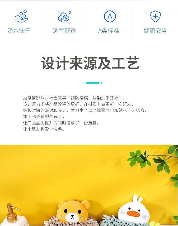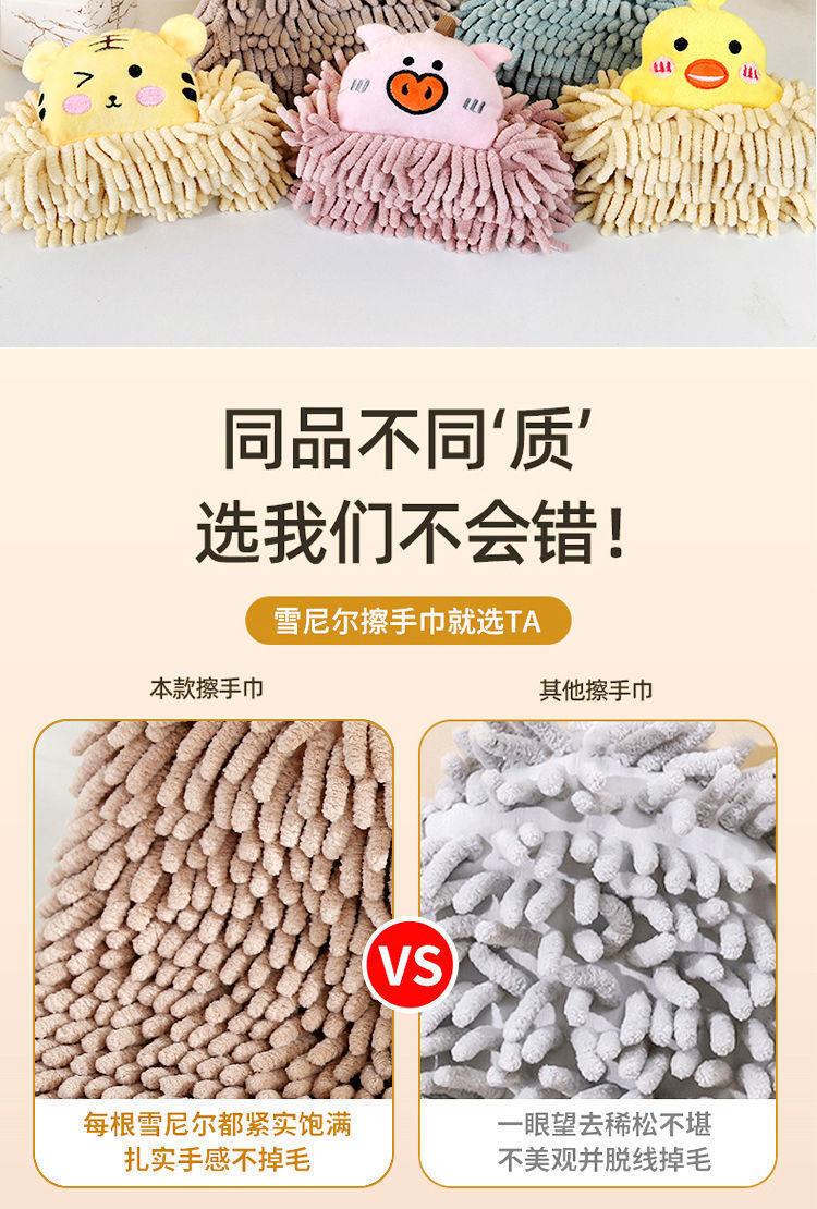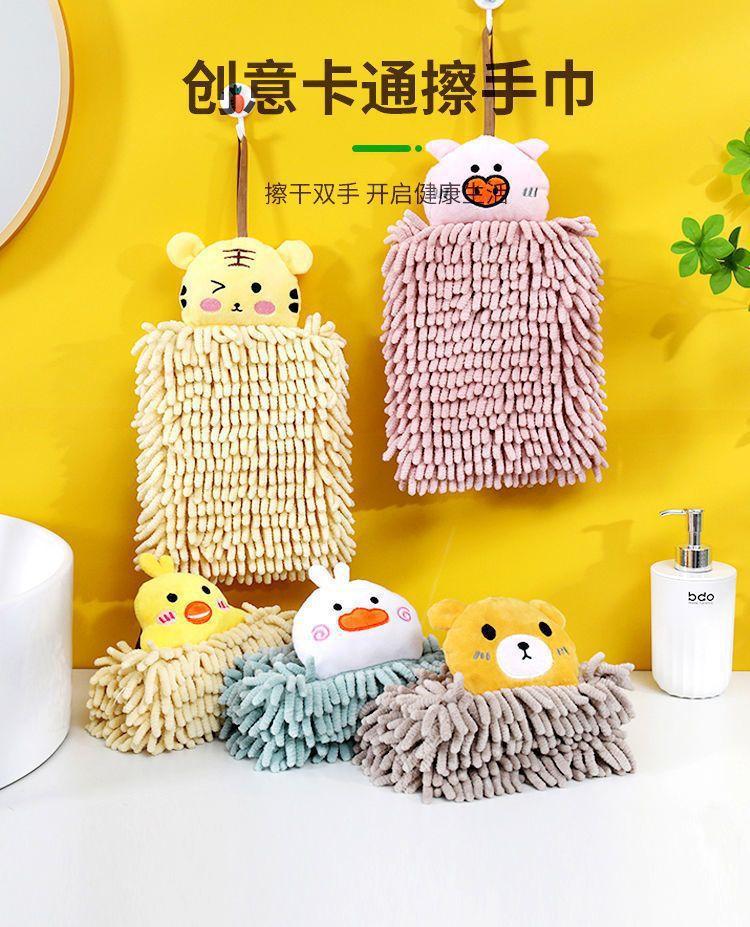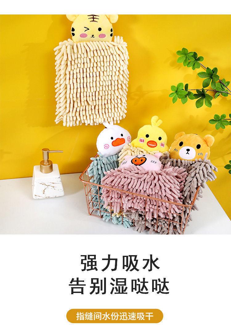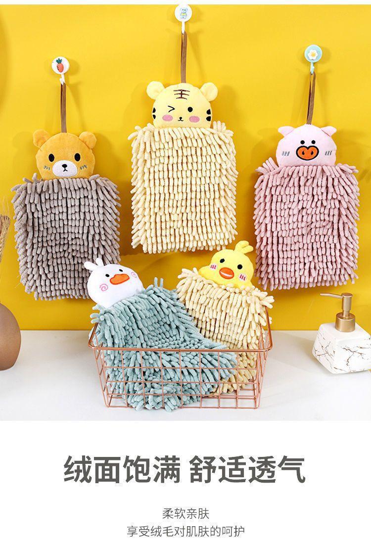 Toalla de Mano Dibujo Animado Infantil Lindo Colgable Absorbente de Secado Rápido Cocina Baño Toalla de Mano de Chenilla Engrosada