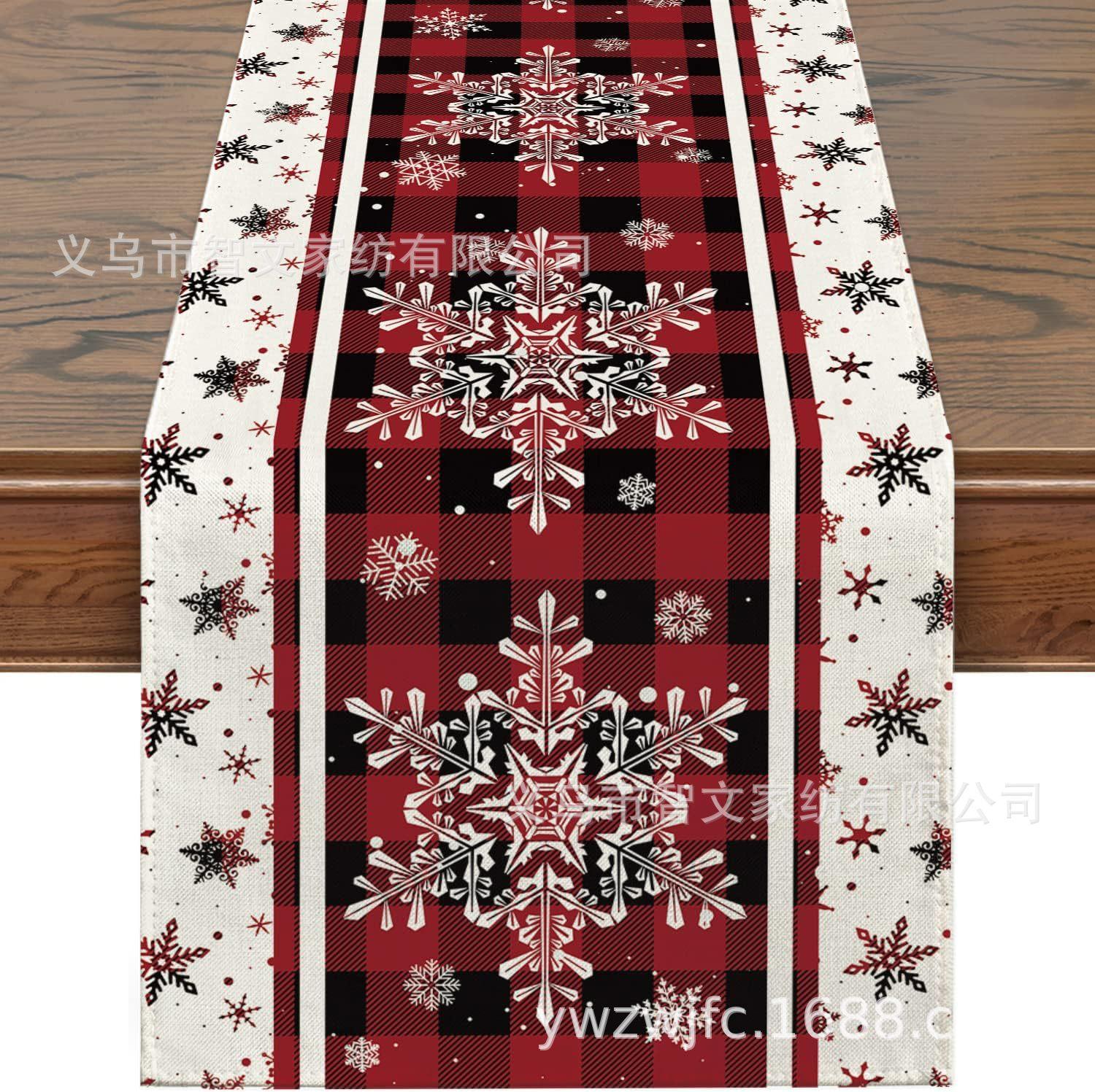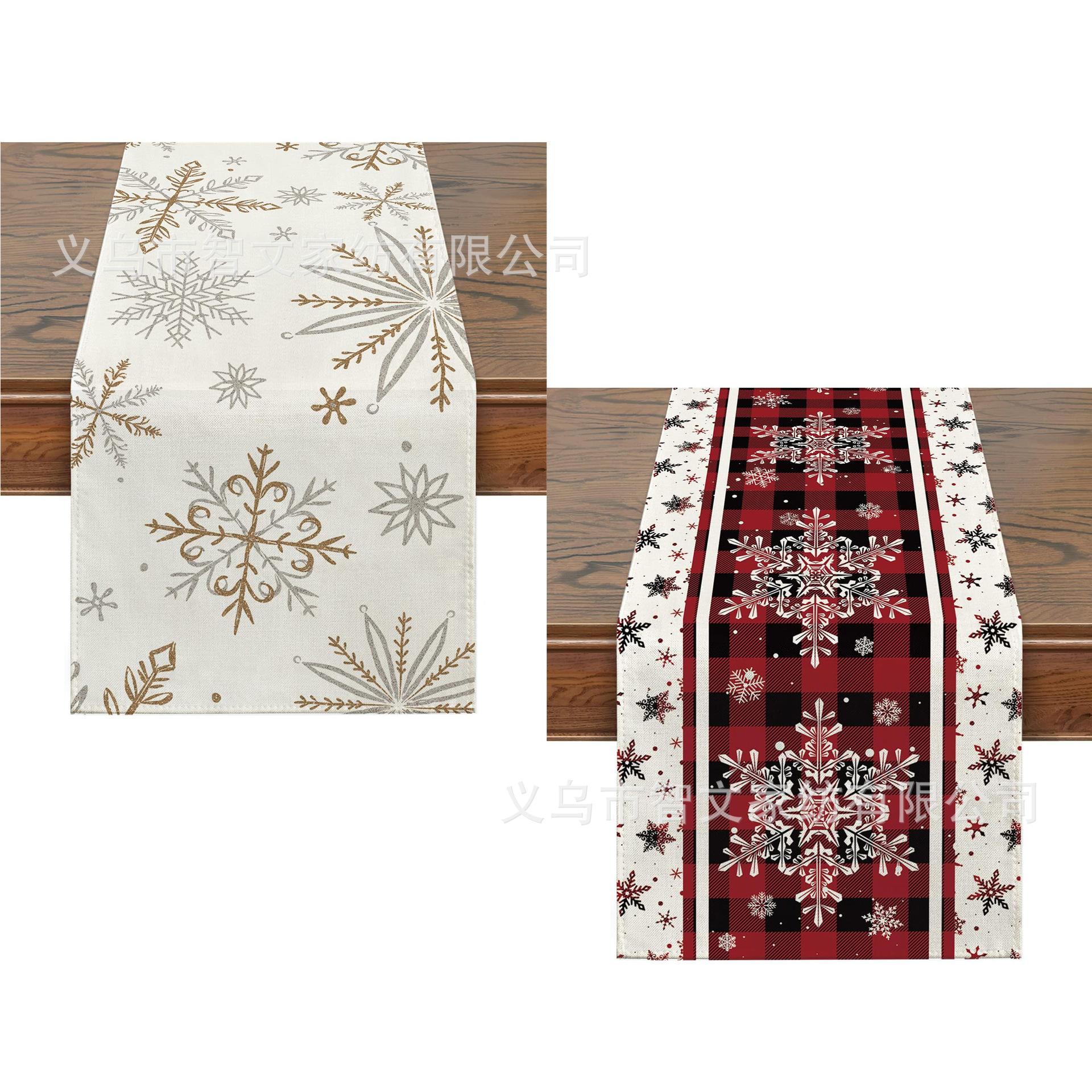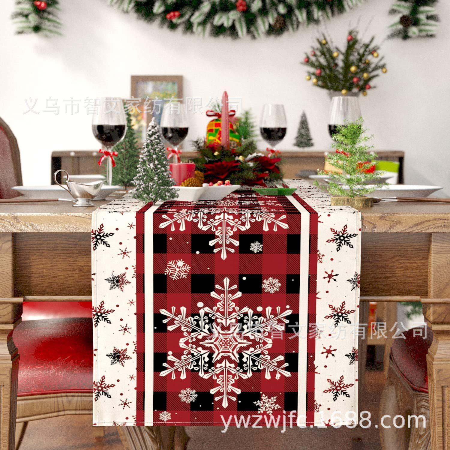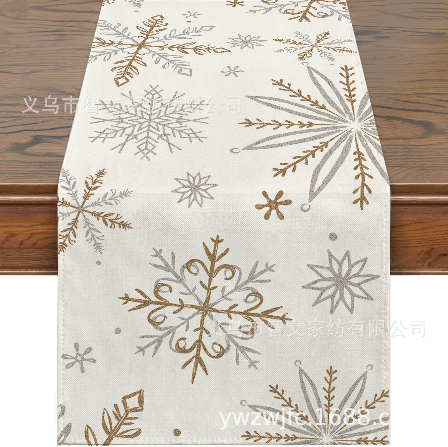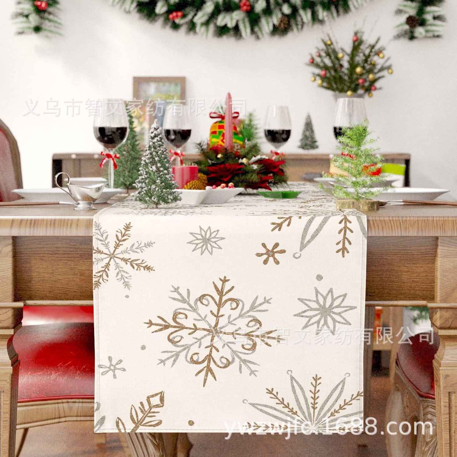 Amazon popular Navidad invierno copo de nieve lino camino de mesa decoración del hogar restaurante impresión mantel camino de mesa
