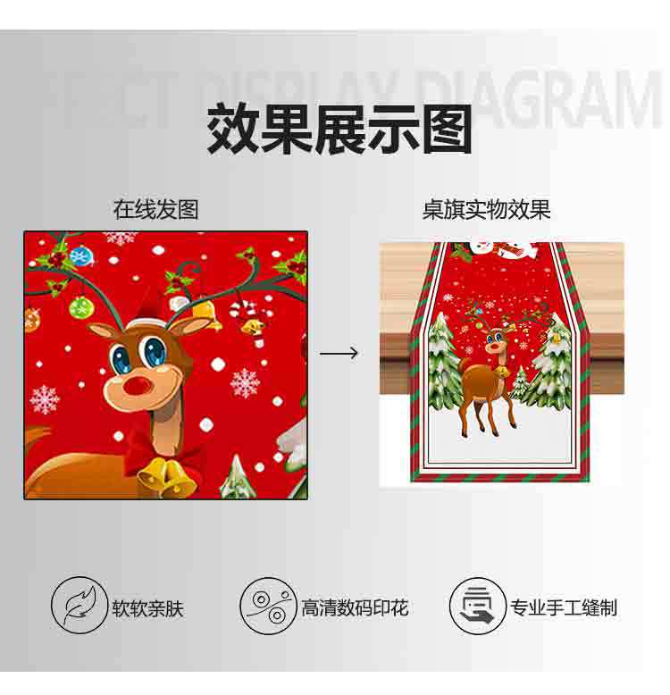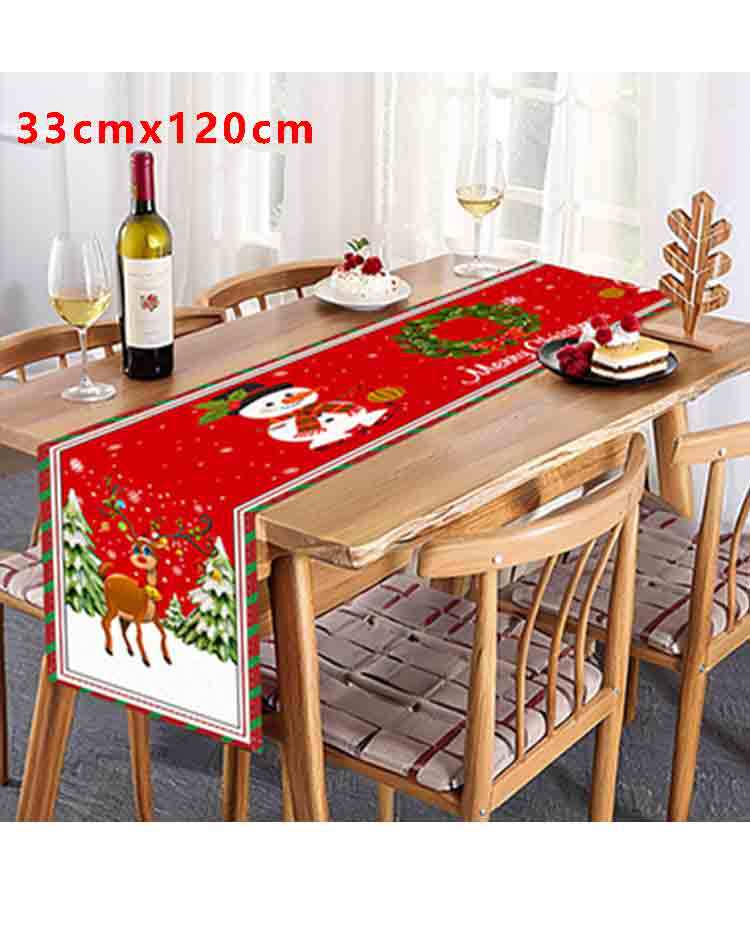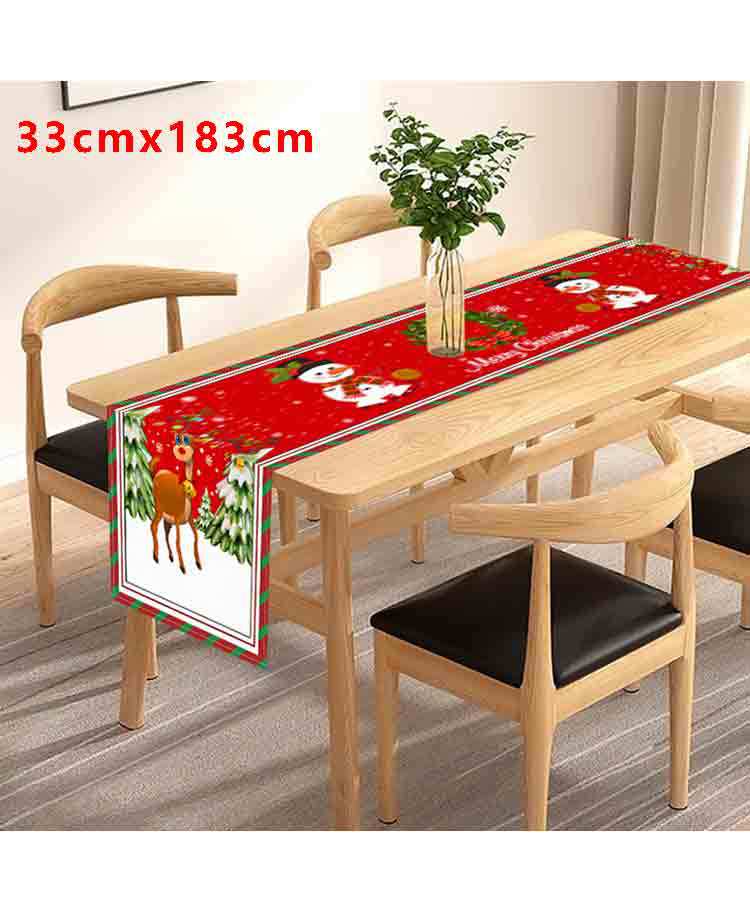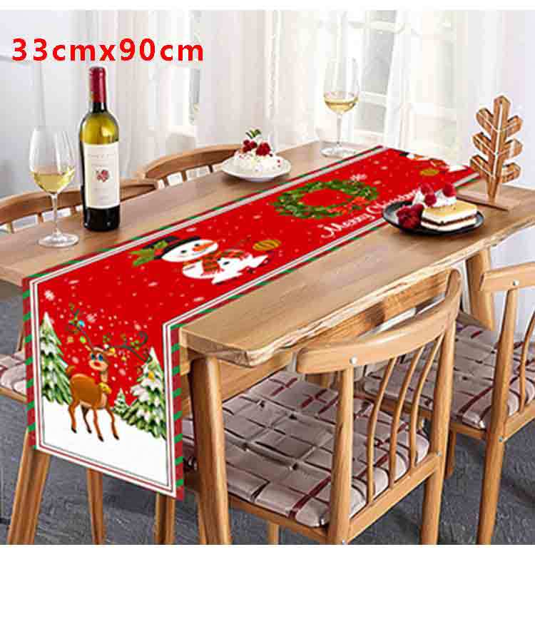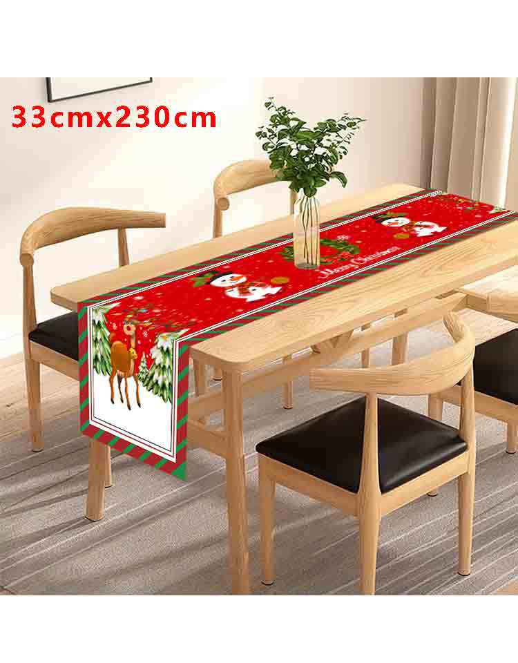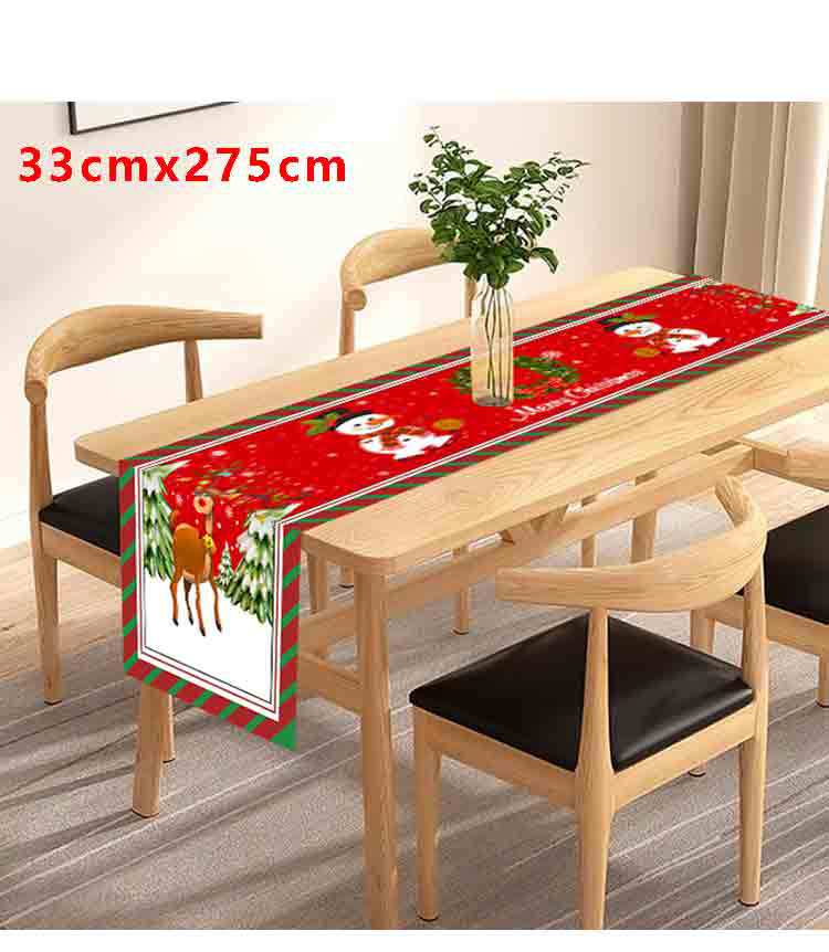 Amazon Transfronterizo Nuevo Corredor de Mesa de Dibujos Animados de Reno Navideño Manteles Decoración de Ambiente Festivo con Patrón de Muñeco de Nieve Navideño