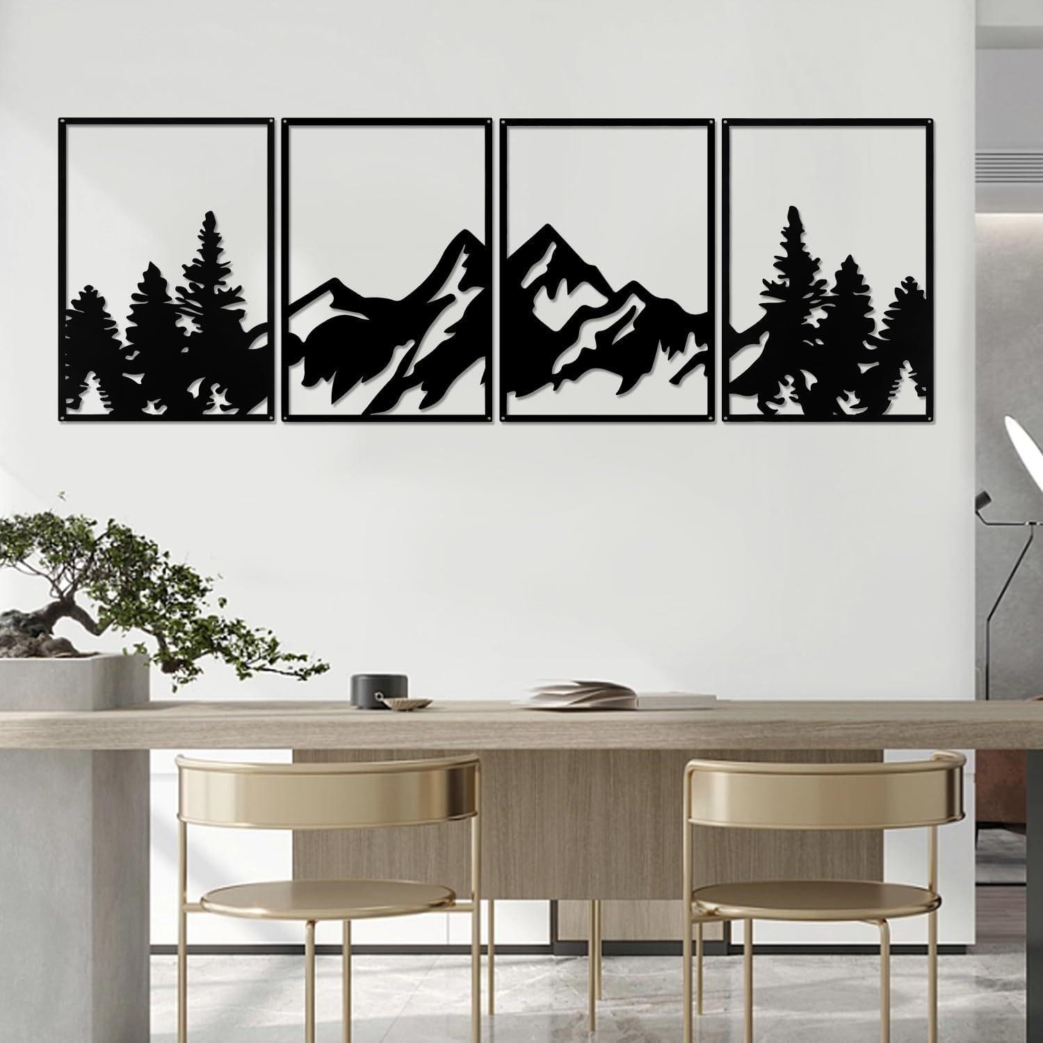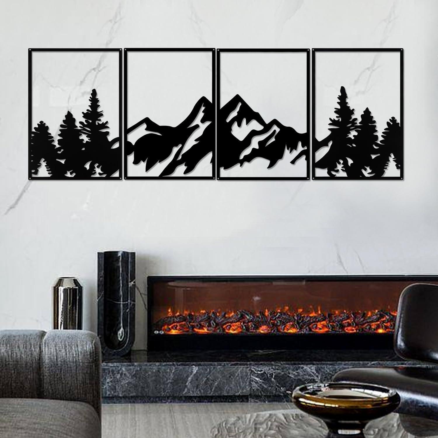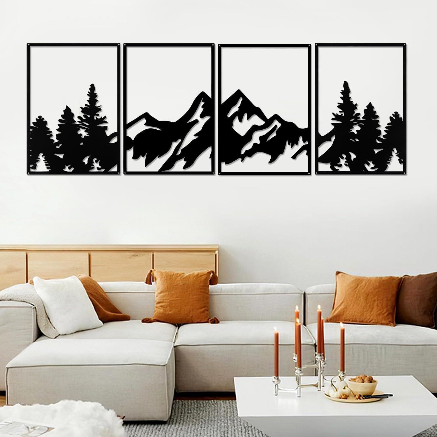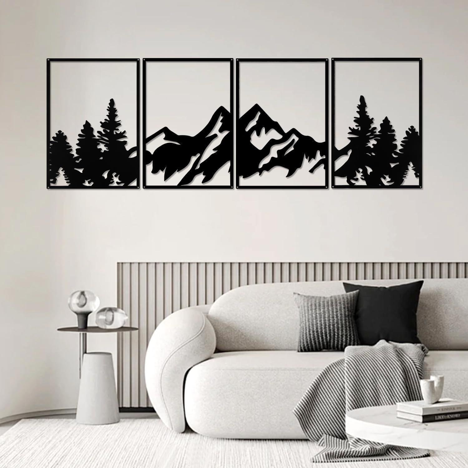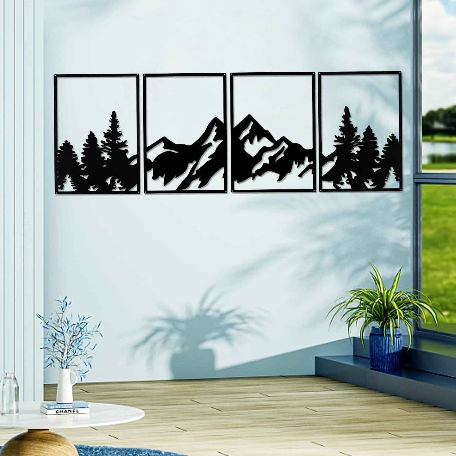 Adornos de Pared de Hierro Americano Transfronterizo Artesanía Juego de 4 Piezas Decoración de Pared de Montaña de Metal Minimalista Escultura Cuadrada Adecuado para Familia