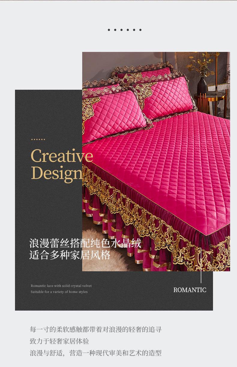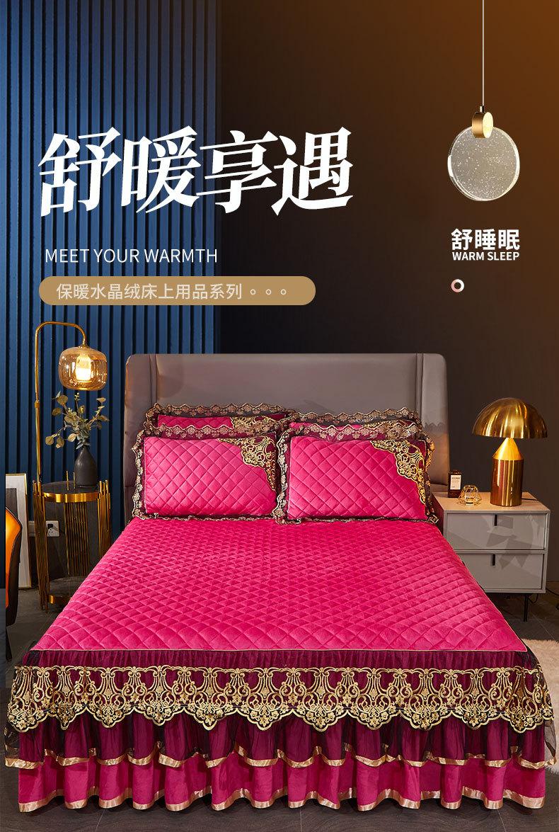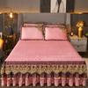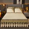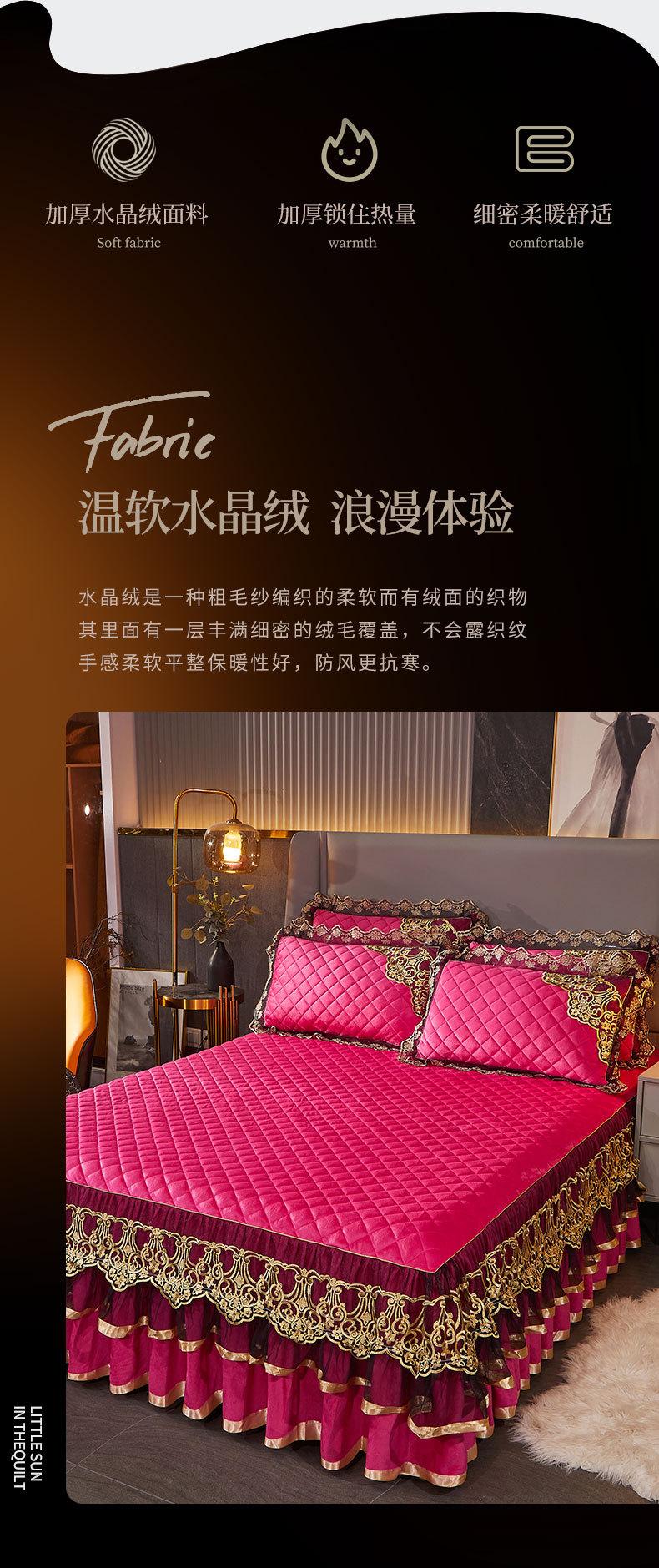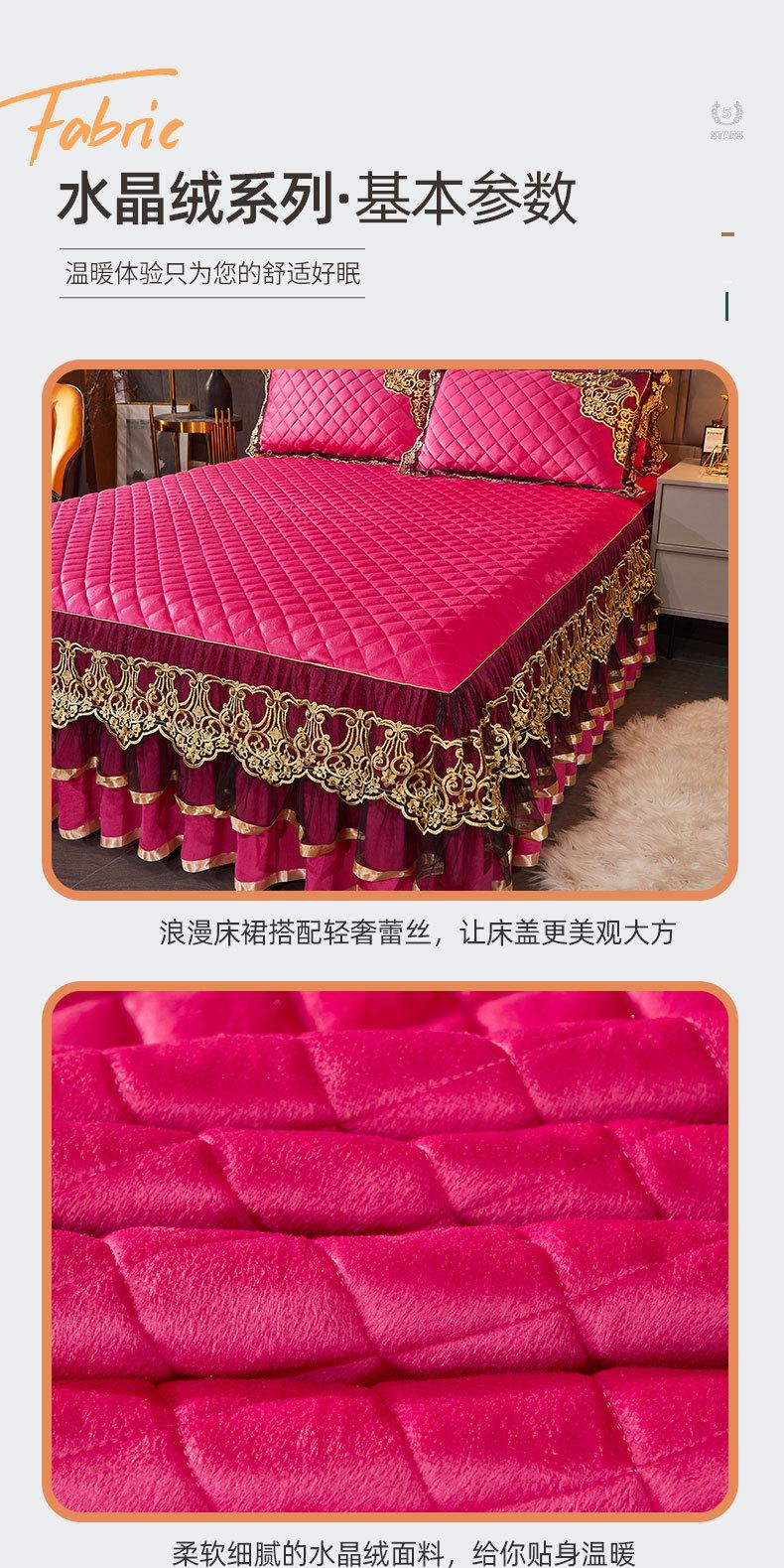 Falda de cama de vellón coral estilo europeo de una pieza, cubierta de cama de vellón cristalino, antideslizante, franela acolchada gruesa, falda de sábana, colcha