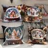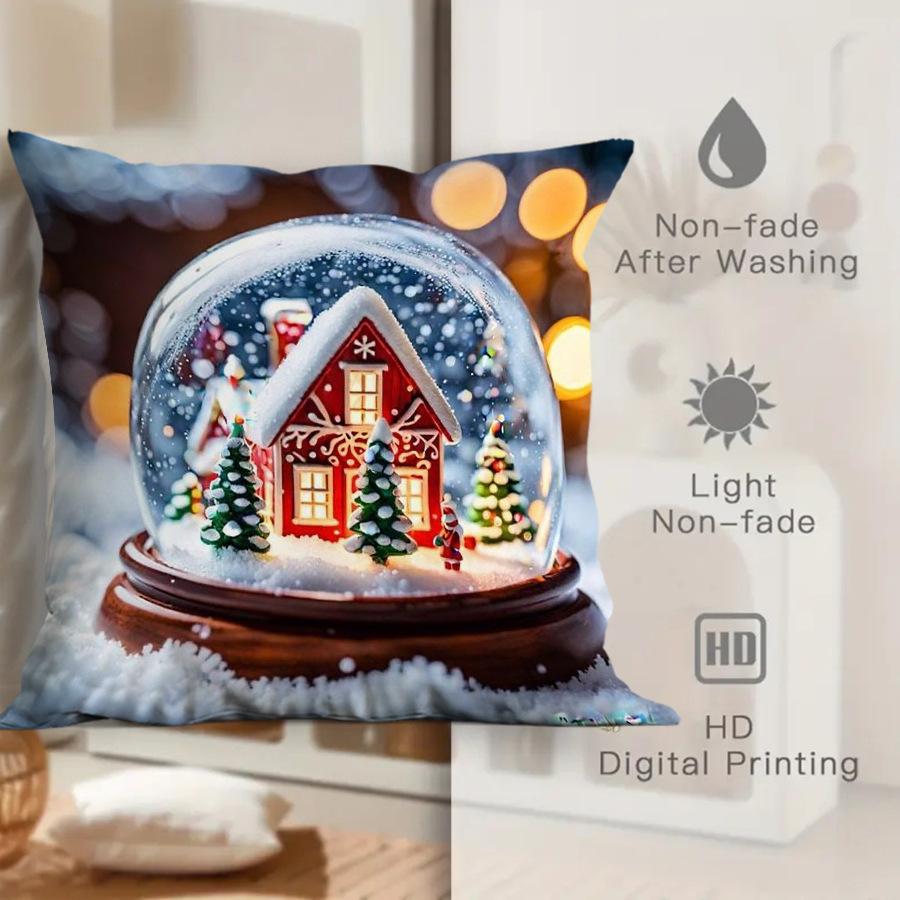 Temu nueva funda de almohada de regalo de Navidad poliéster estampado decoración navideña sala de estar sofá funda de cojín almohada de dormitorio