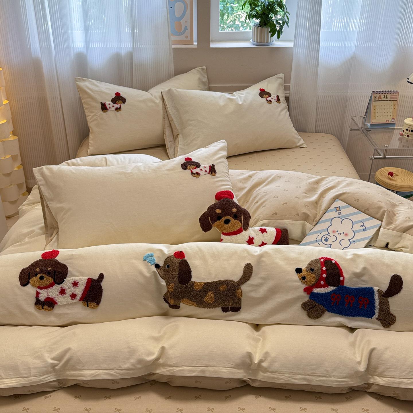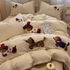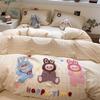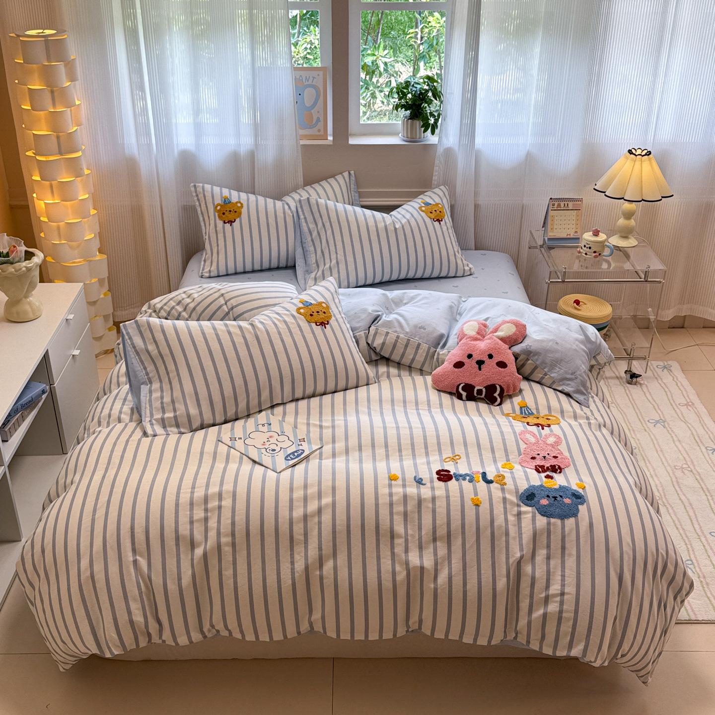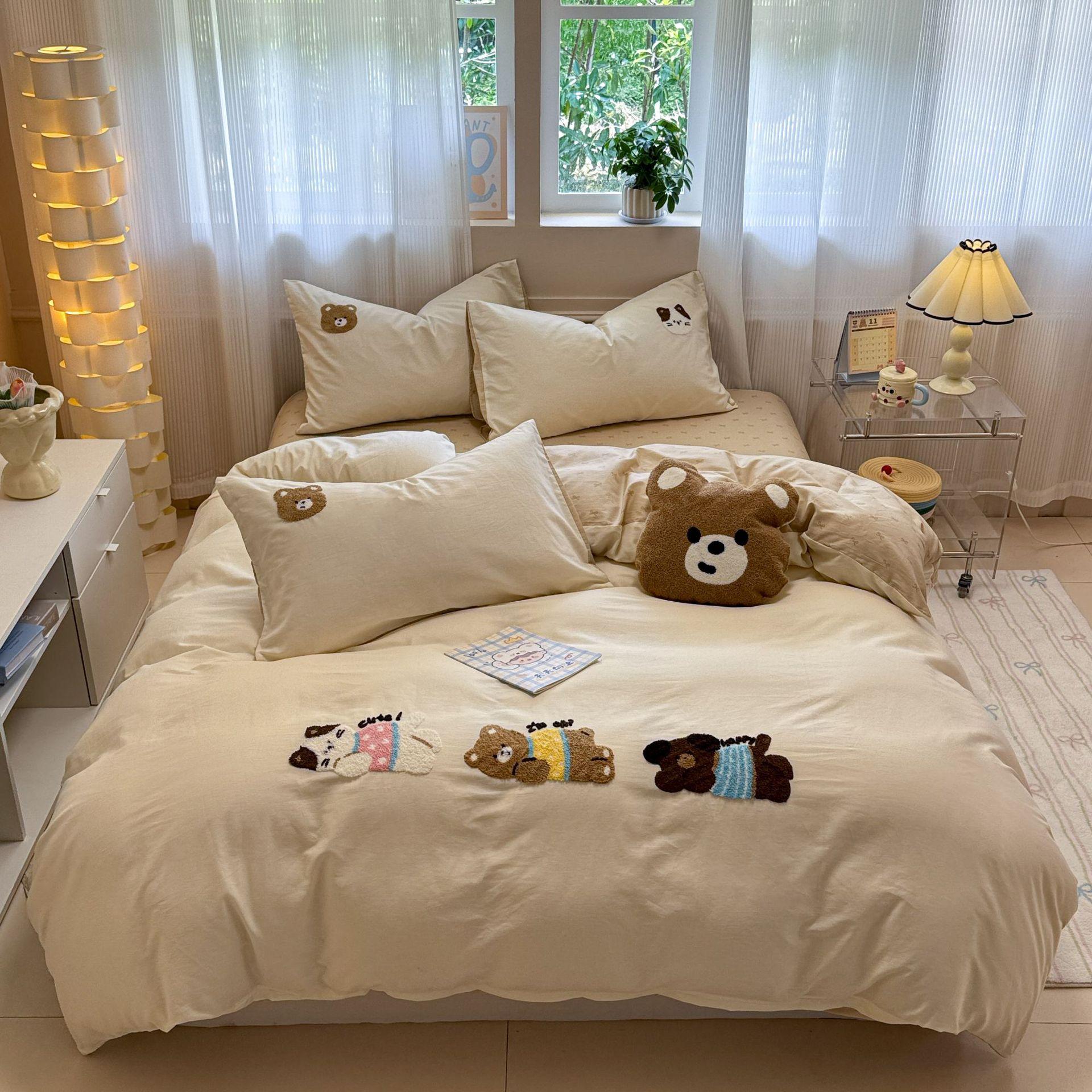 Ins ropa de cama bordada de algodón puro juego de cuatro piezas caricatura todo algodón bordado chenilla funda nórdica dormitorio de estudiante juego de tres piezas