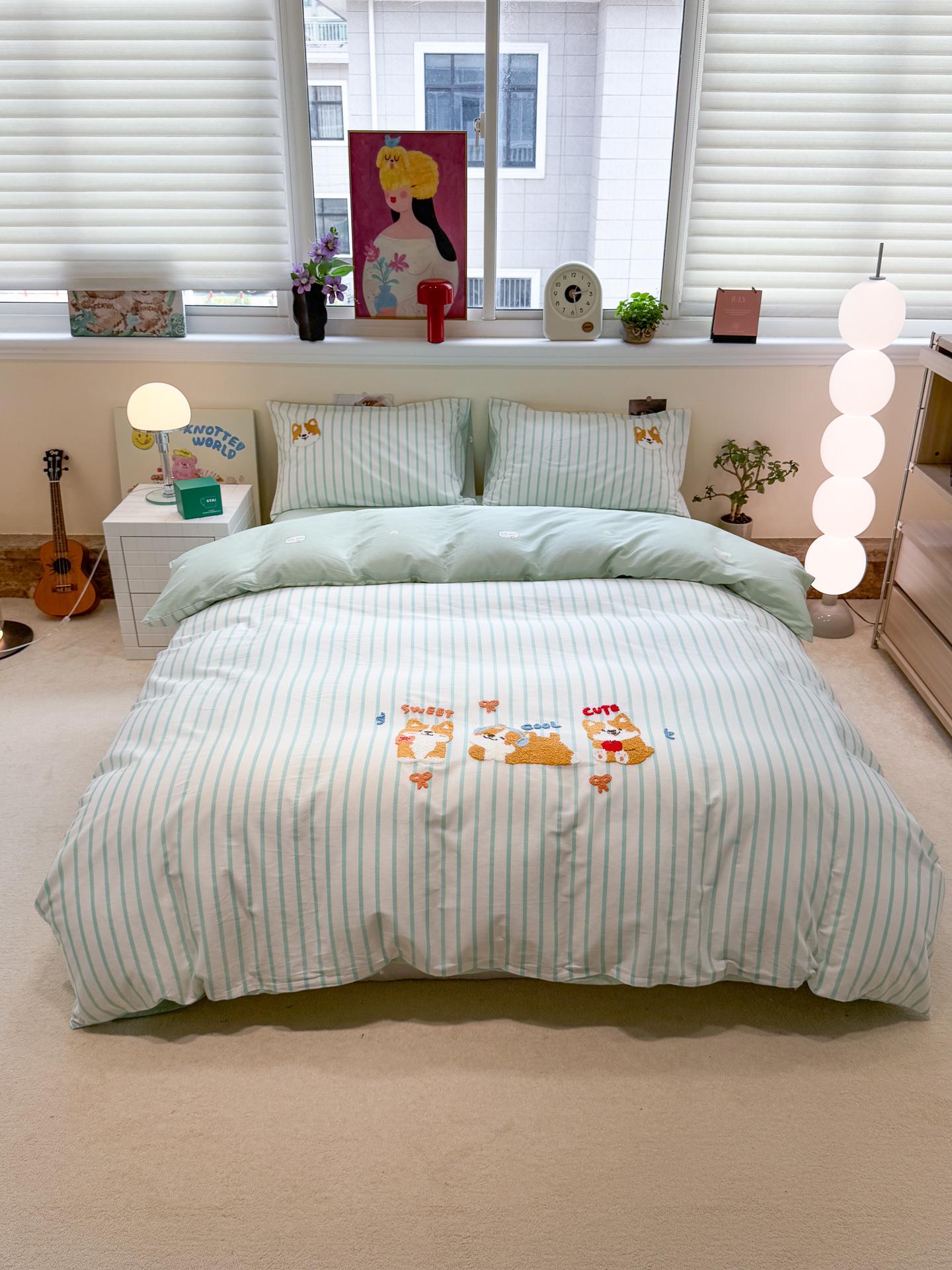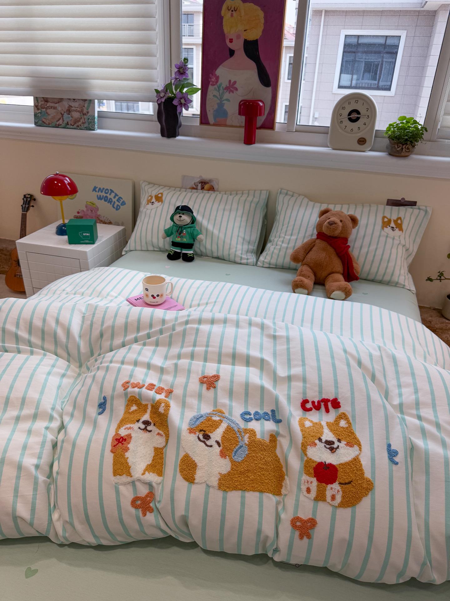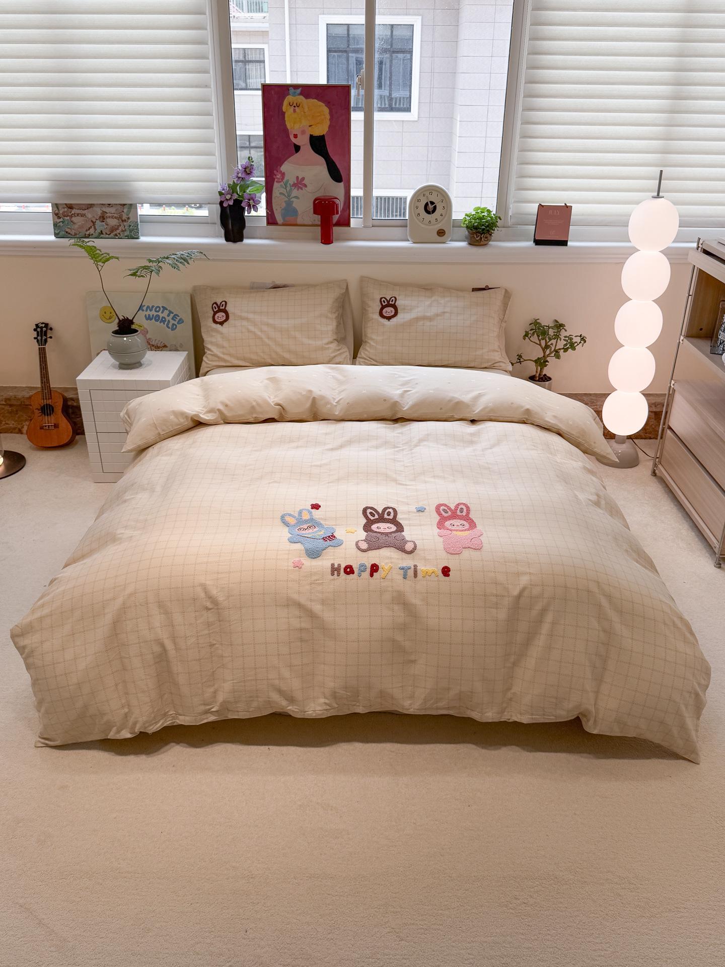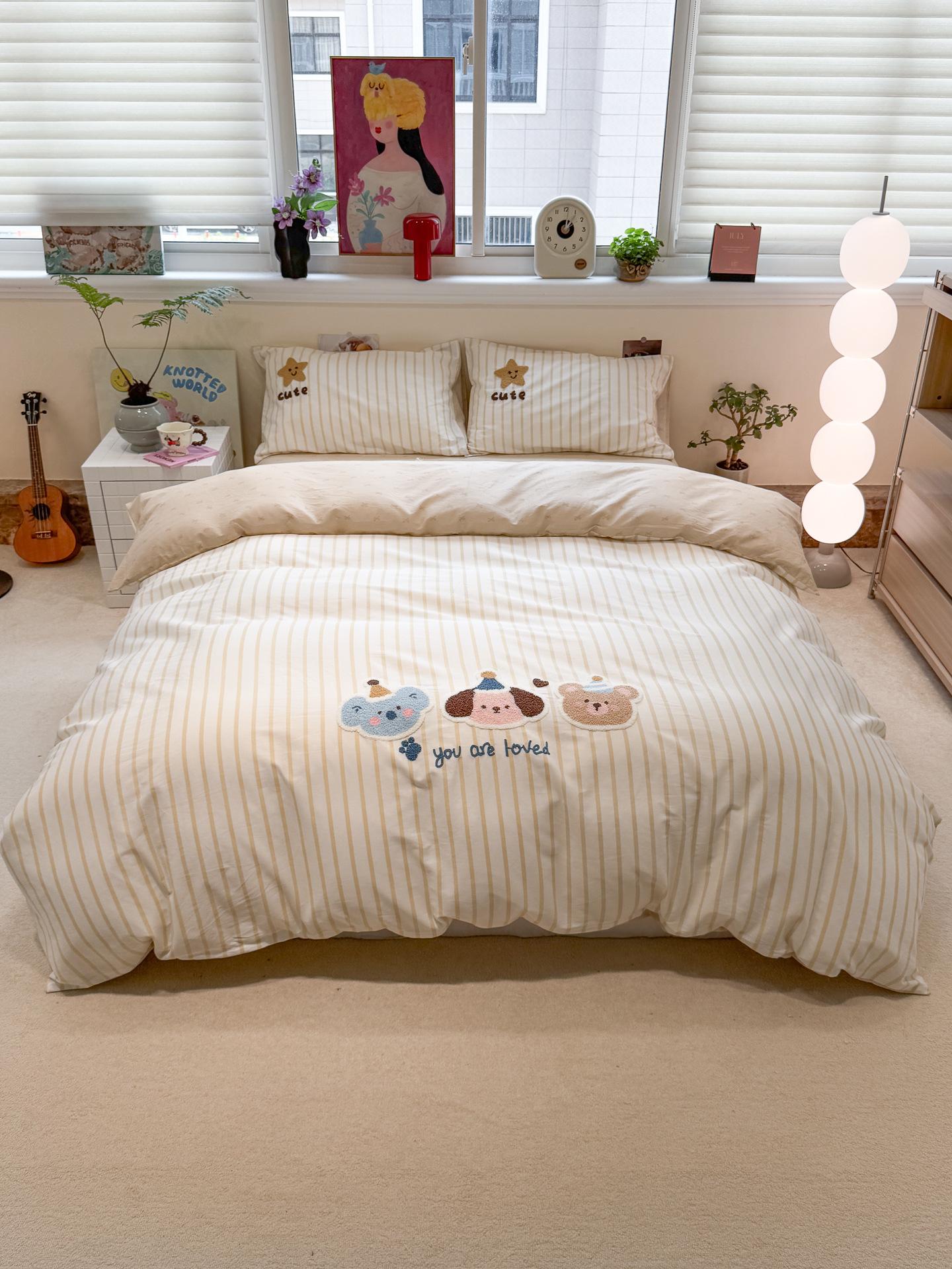 Ins ropa de cama bordada de algodón puro juego de cuatro piezas caricatura todo algodón bordado chenilla funda nórdica dormitorio de estudiante juego de tres piezas
