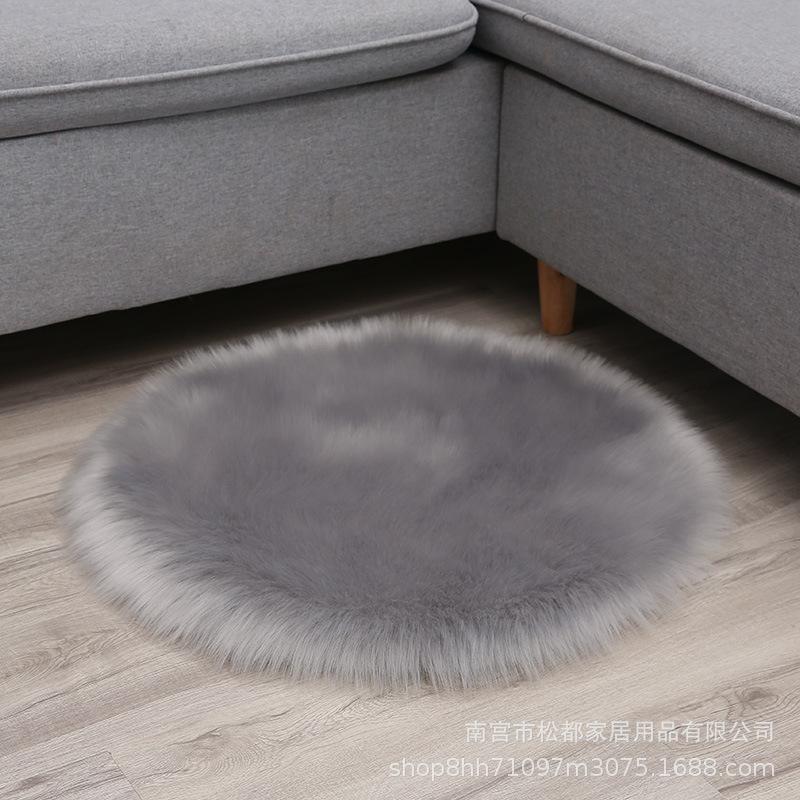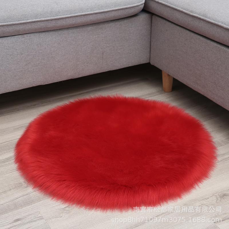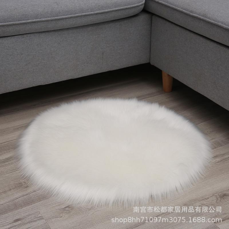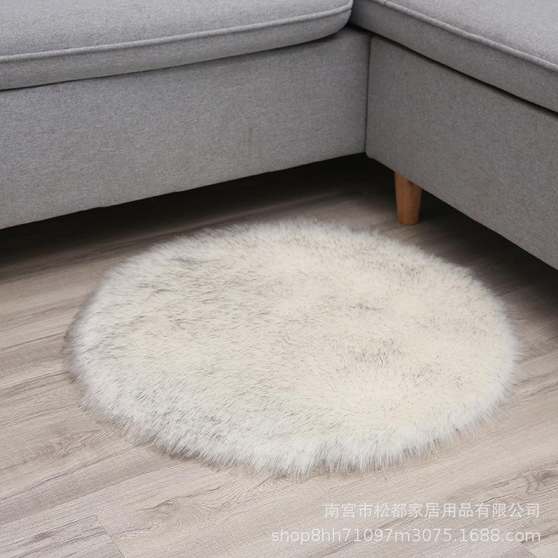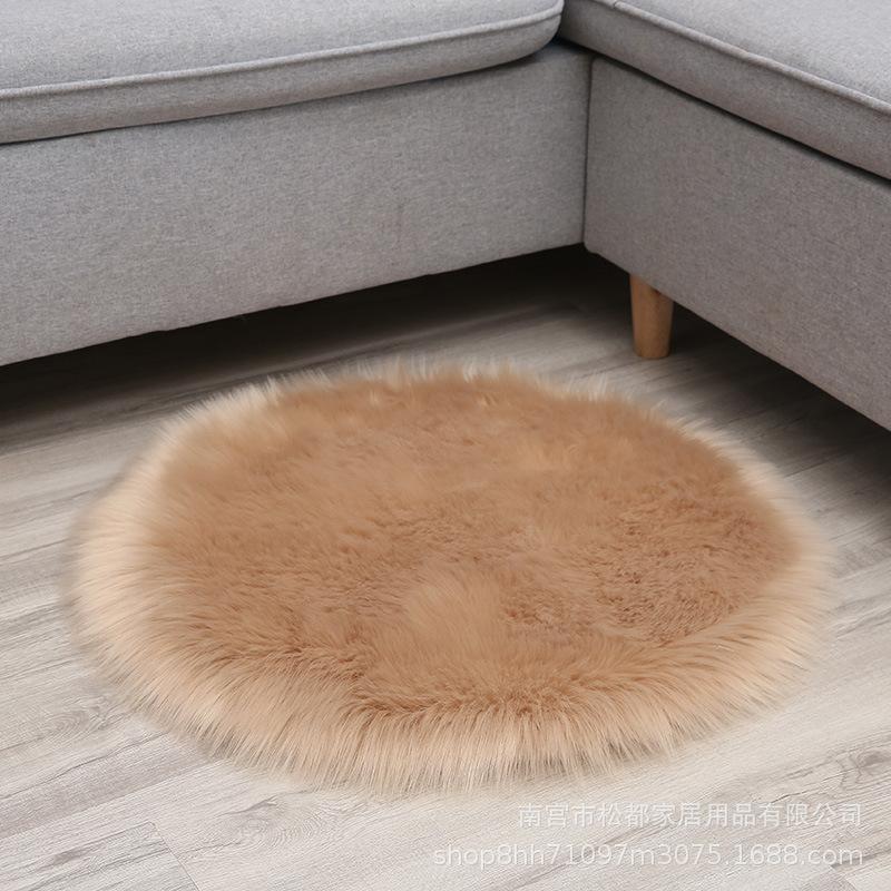 Alfombra Redonda Especial de Felpa Transfronteriza Alfombra de Piso Imitación Lana Dormitorio Color Sólido Manta Simple Alfombra Redonda Decoración