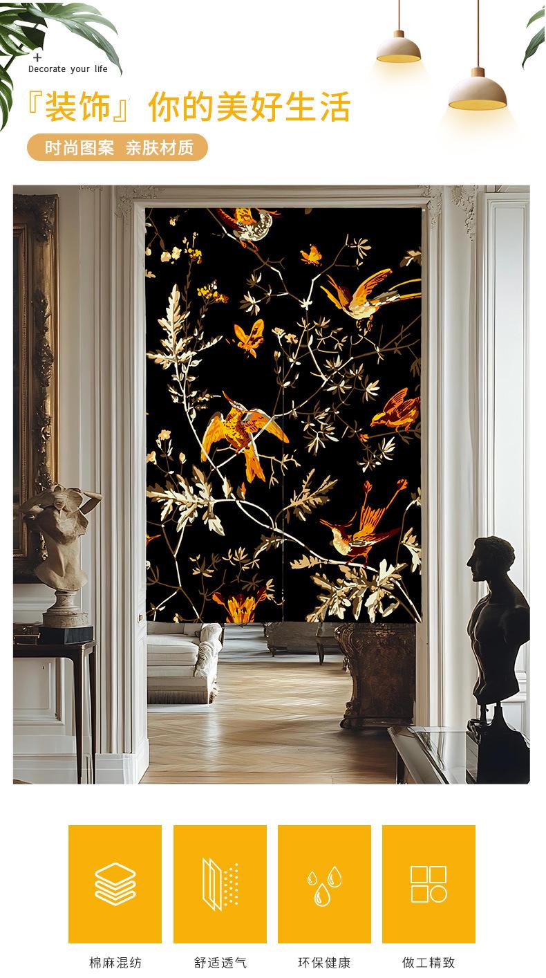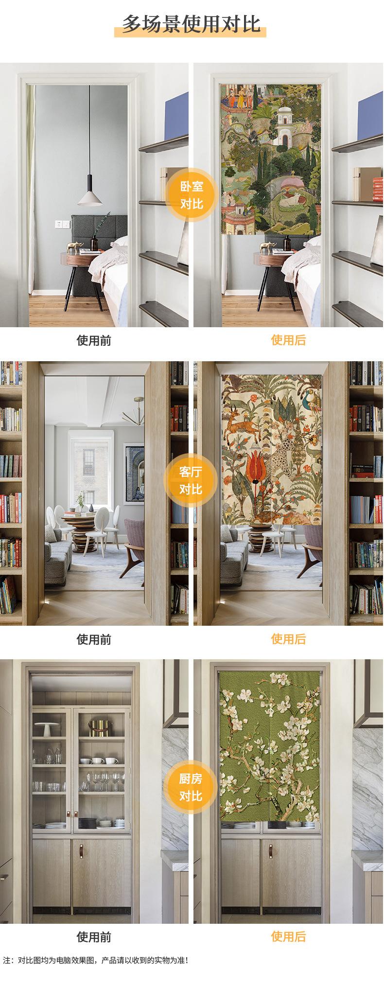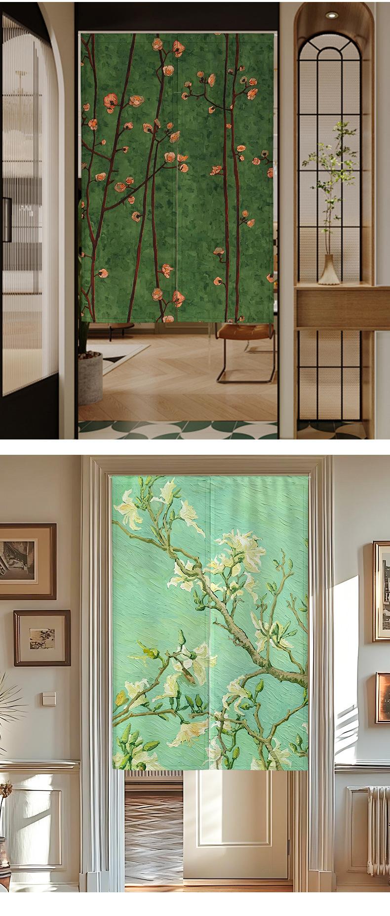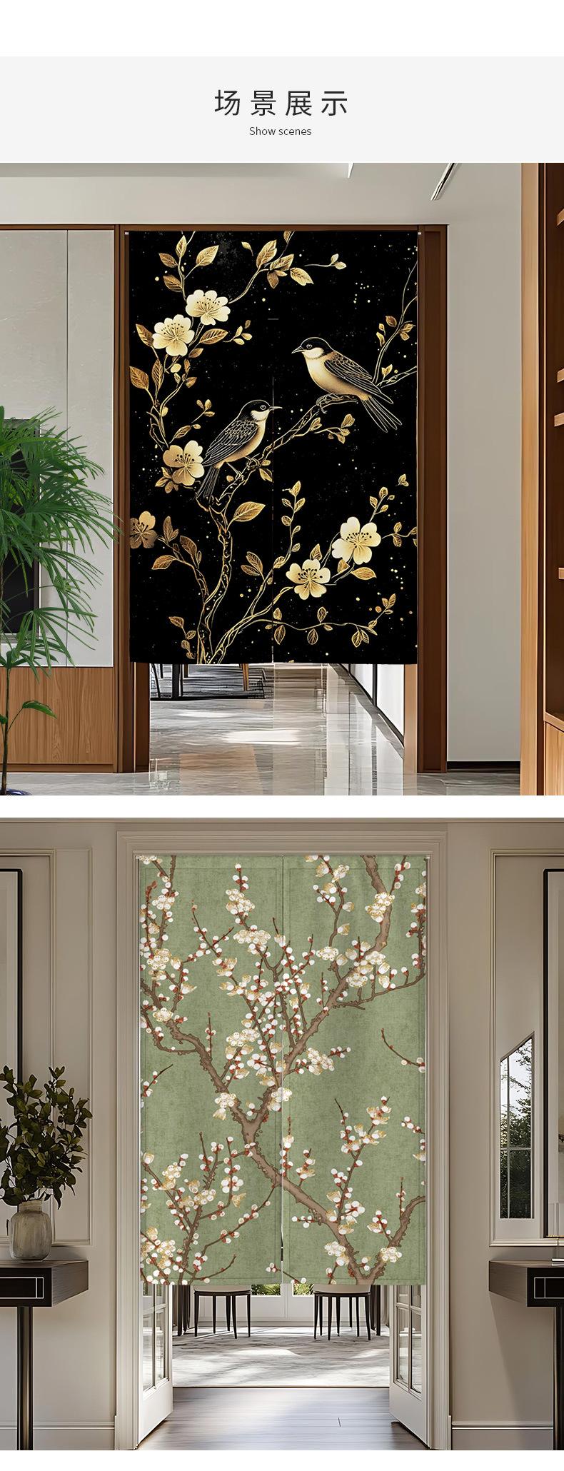 Cortina de Puerta Estilo Clásico Chino Cortina de Partición Sin Perforaciones Creativa Dormitorio Hogar Cortina Colgante Media Cortina Tela Cocina Cortina Blackout