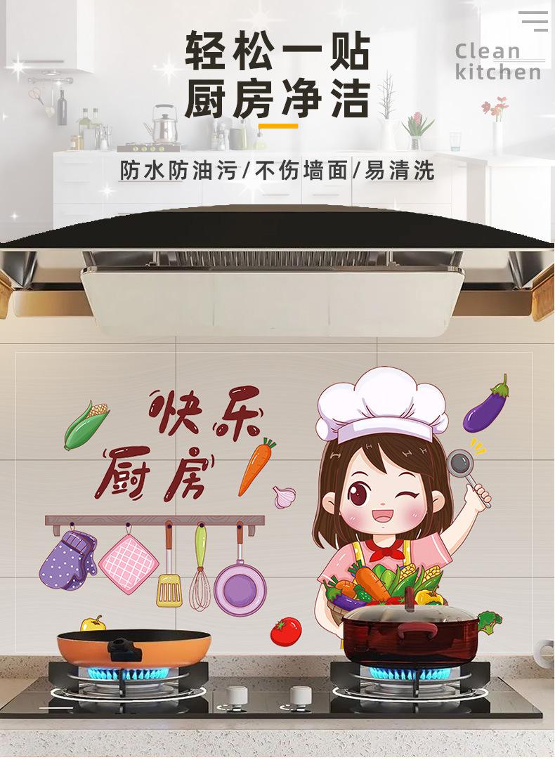 Adhesivos a prueba de aceite para estufa de cocina resistentes a altas temperaturas para el hogar autoadhesivos adhesivos para azulejos de pared cocina ventilador adhesivos de pared de dibujos animados