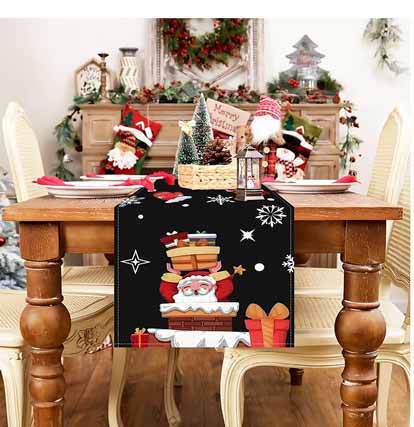Decoración Navideña Transfronteriza Amazon Bandera de Mesa de Lino Estampada Mantel Fiesta Navideña Sala de Estar Hogar Tela para Mesa de Centro