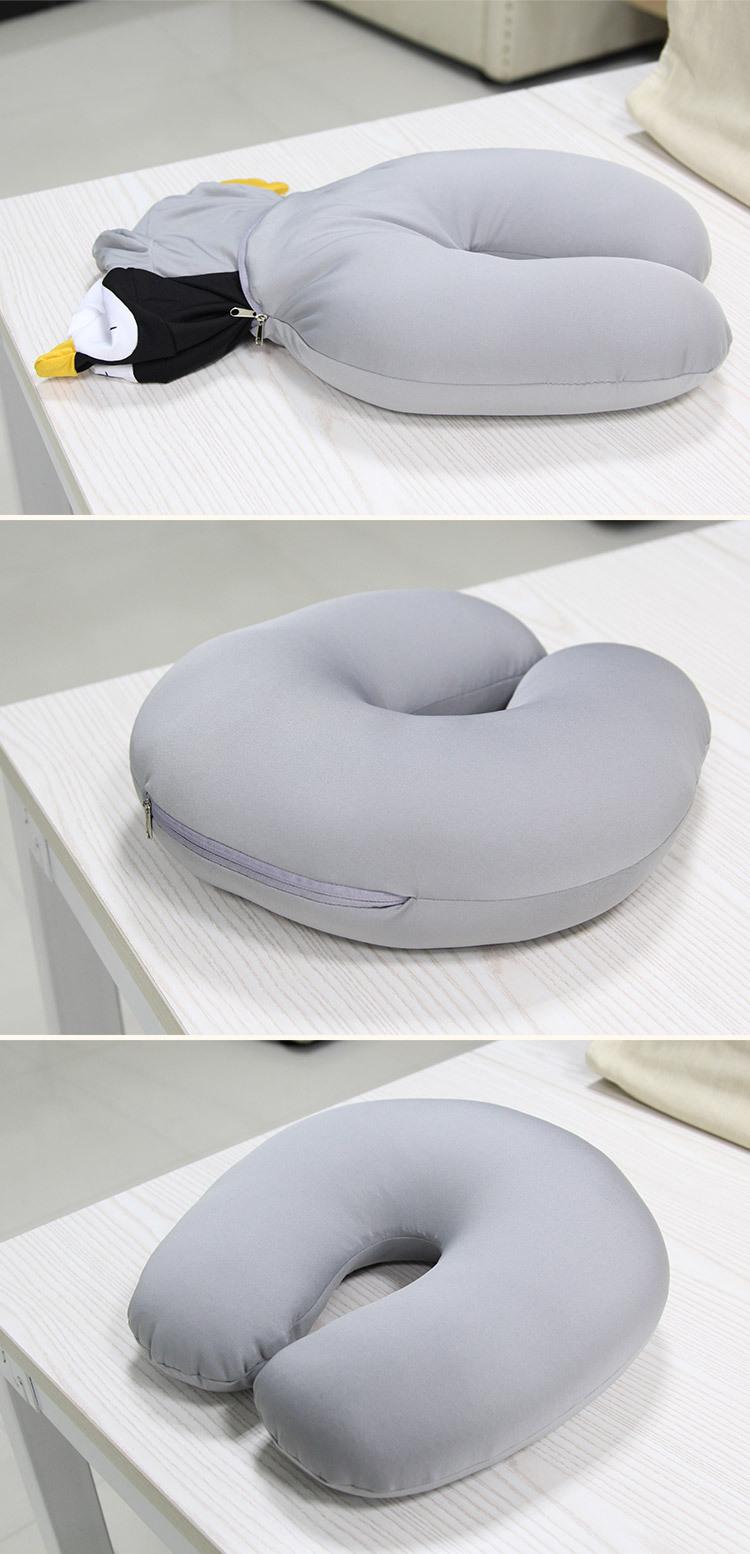 Almohada de dibujos animados en forma de U Pingüino almohada de doble uso almohada funcional almohada de partículas de espuma lindo dos en uno muñeco almohada para el cuello al por mayor