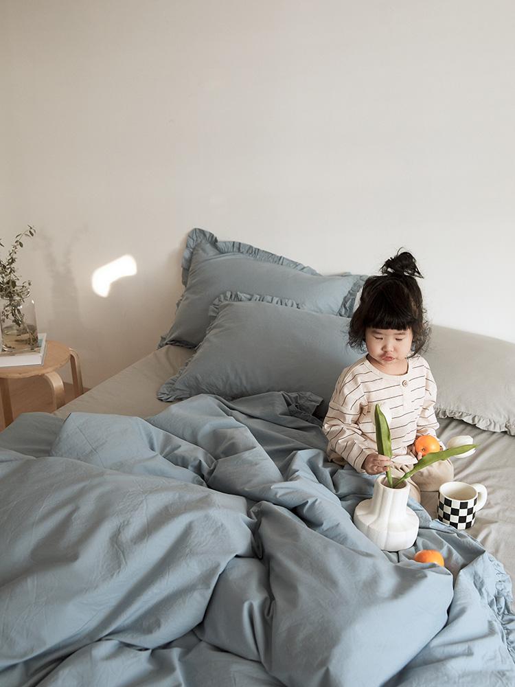 100% Algodón Estilo Japonés Primavera y Otoño Algodón Puro Juego de Cama de Cuatro Piezas Color Sólido Simple Sábana Encimera Funda Nórdica