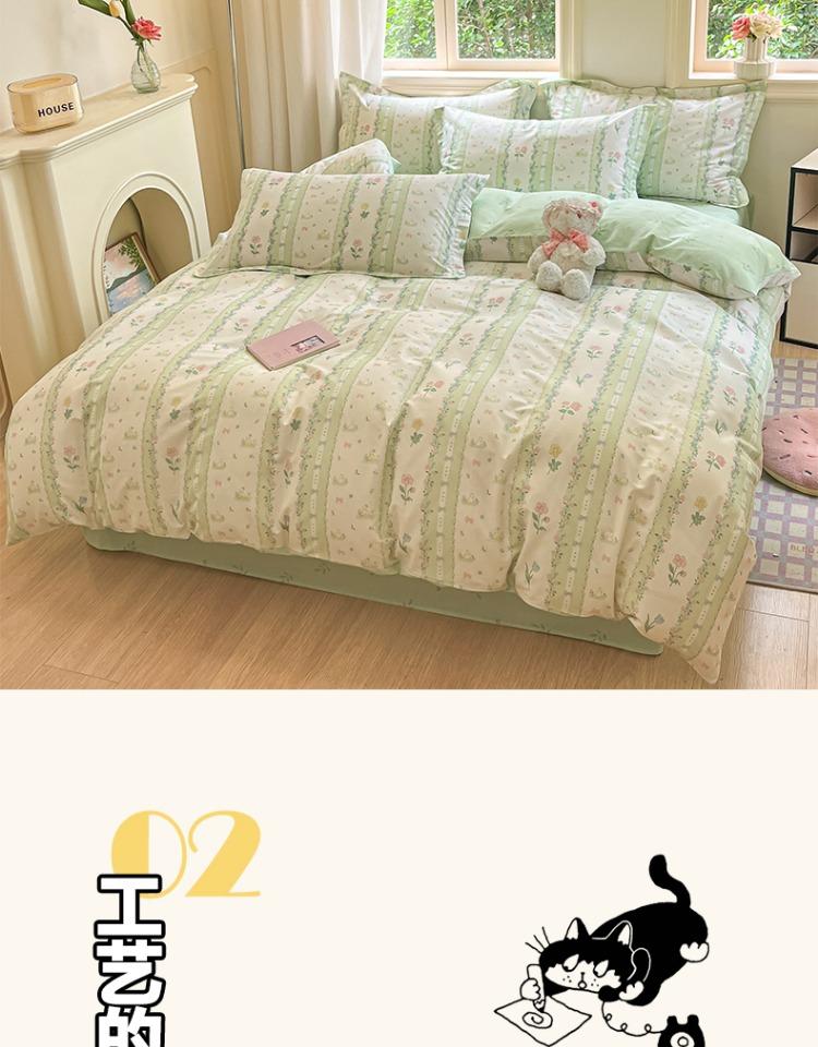 Compra Juego Fresco de Cuatro Piezas Algodón Puro Todo Algodón Sábana Bajera Funda Nórdica Juego de Tres Piezas para Cama Dormitorio Individual para Estudiantes Ropa de Cama Estilo Sábana Ajustable al por mayor en Joom.pro