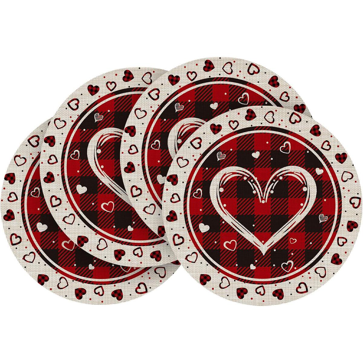 Amazon Nuevo Mantel Individual Caliente de San Valentín Mantel Individual Redondo Mantel Decorativo de Lino para Mesa de Comedor Mantel Individual Estampado Directo de Fábrica