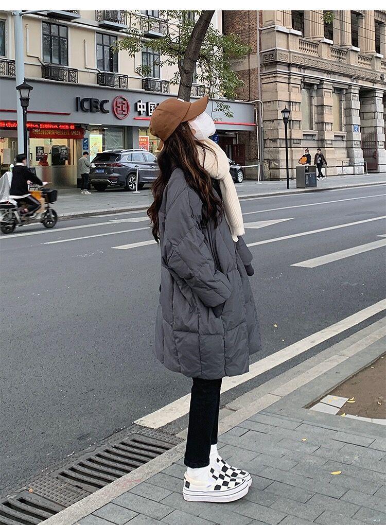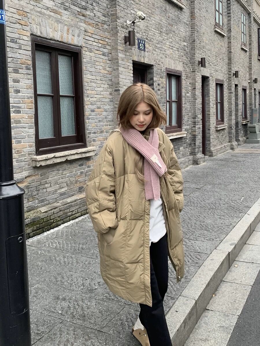 2025 Nuevo abrigo de plumón para mujer Invierno Largo medio Estilo coreano Chaqueta de algodón Suelta Por encima de la rodilla Largo Chaqueta de algodón Trendy