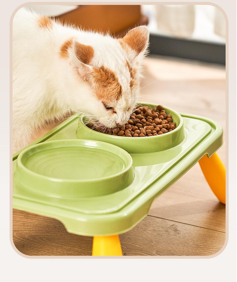 Plato Elevado para Mascotas Protección de Cuello Doble Tazón para Comida Tazón para Gatos Tazón para Perros Tazón para Comida Tazón para Alimentación Integrado Agua y Comida Creativo Tazón para Comida para Gatos
