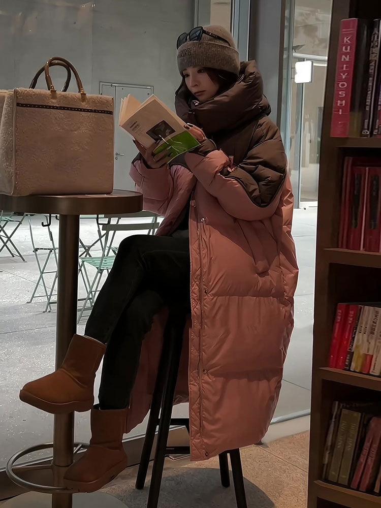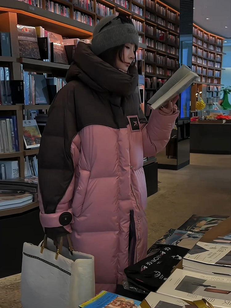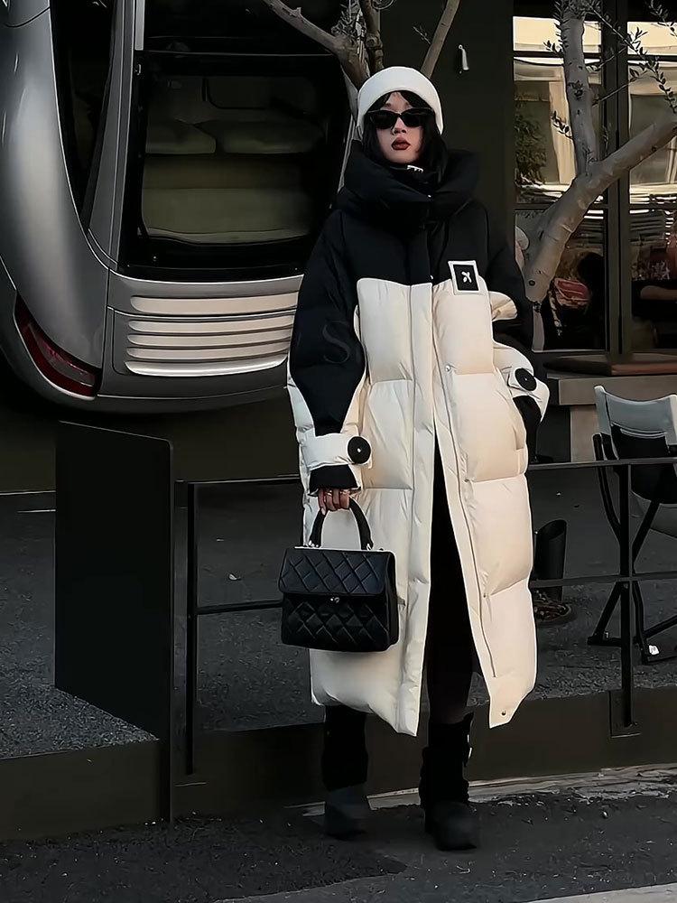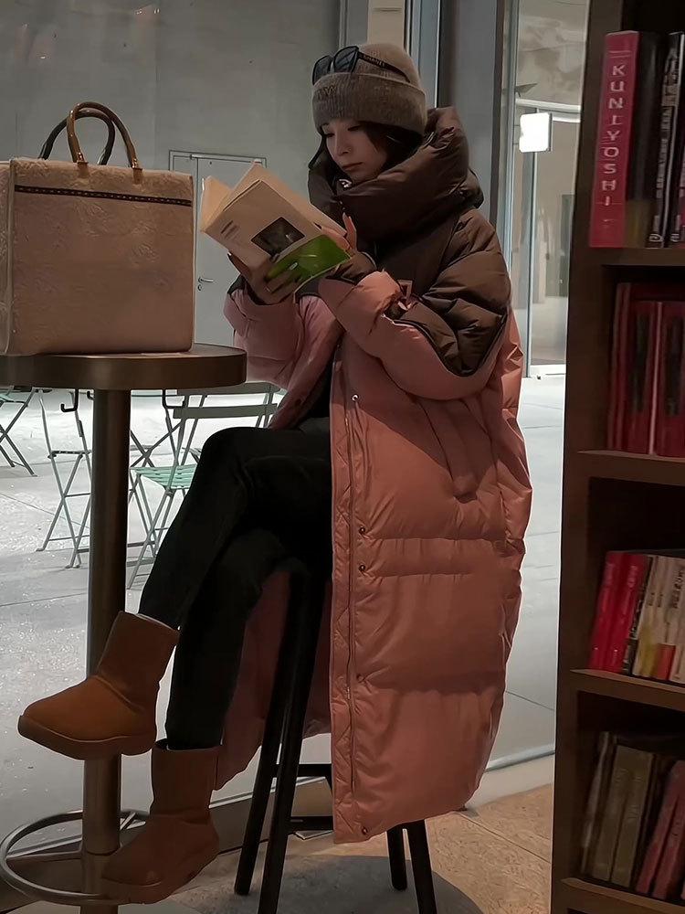 2025 Chaqueta de Invierno para Mujer de Algodón Acolchado Estilo Coreano Suelta Moda Trendy Gruesa Largo Medio con Capucha