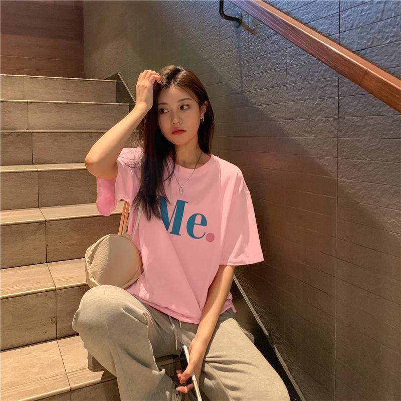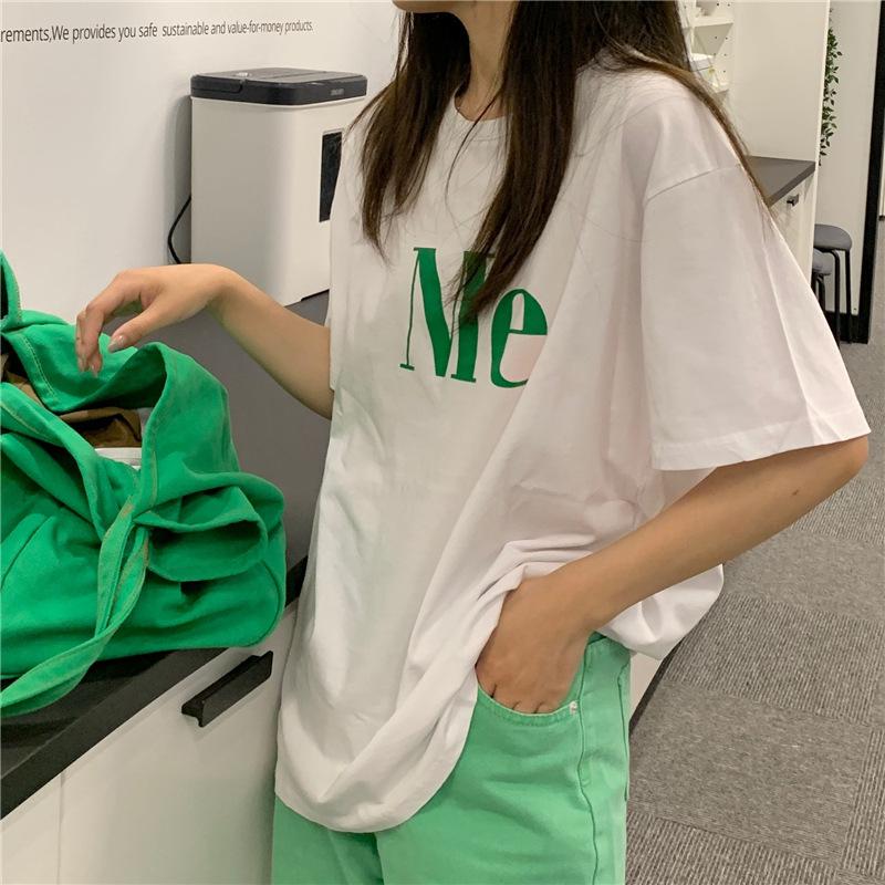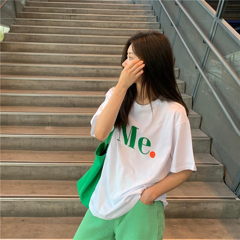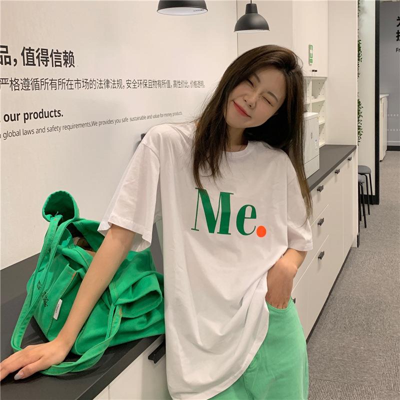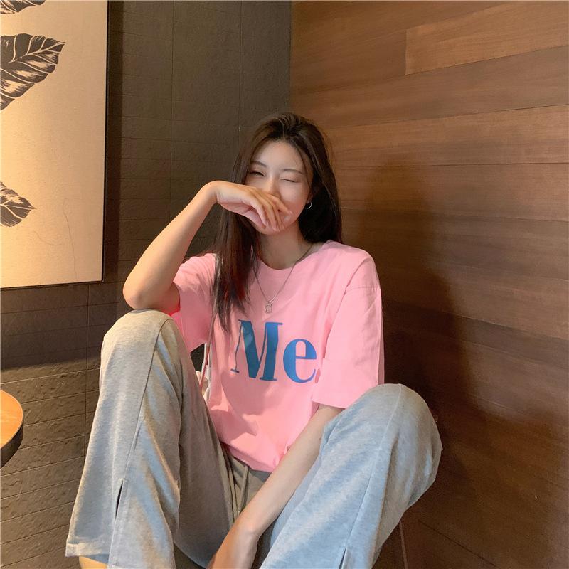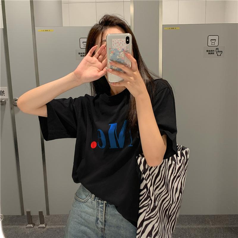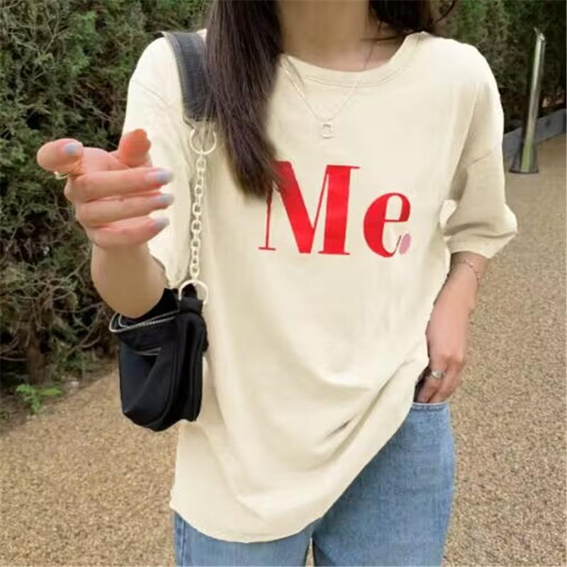 Compra Camiseta de Manga Corta de Algodón Puro con Estampado de Letras de Marca de Moda Estilo Coreano para Mujer Verano Nuevo Ins Manga Media Estilo Americano Vintage High Street Talla Grande al por mayor en Joom.pro
