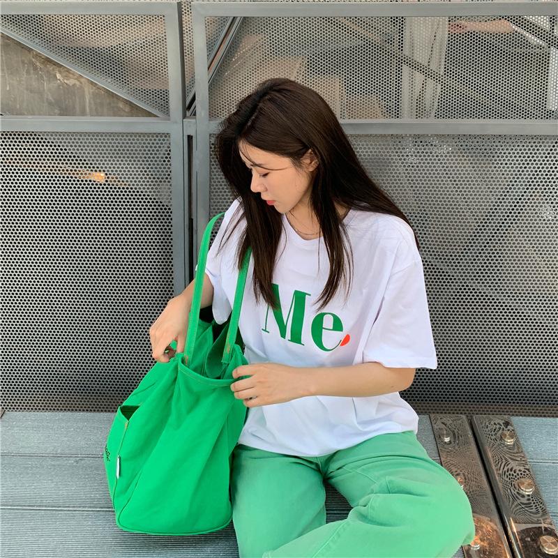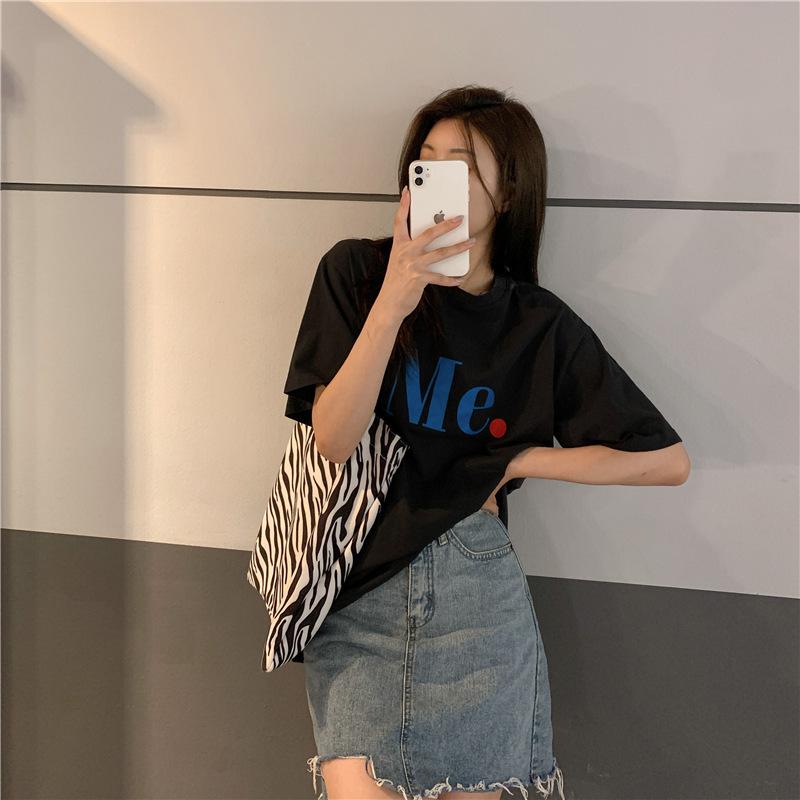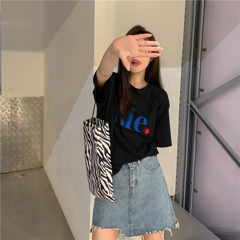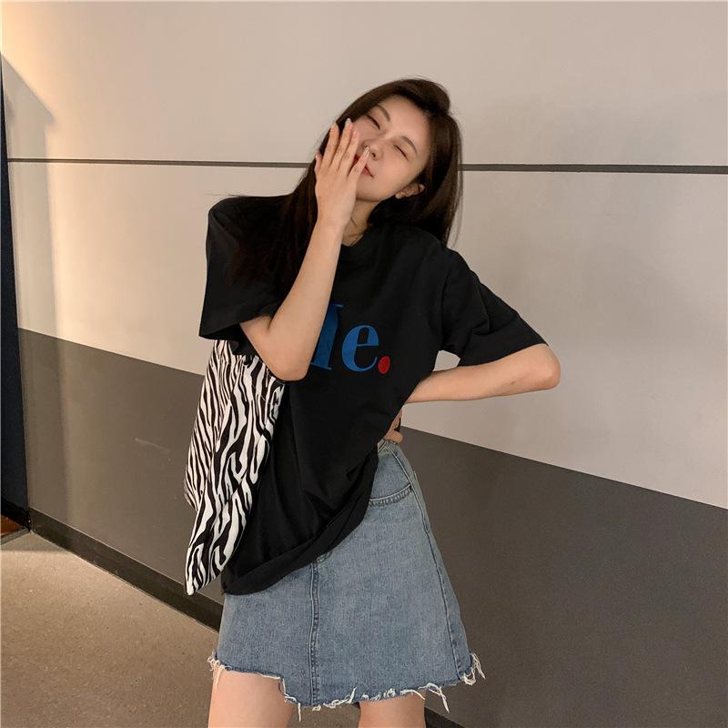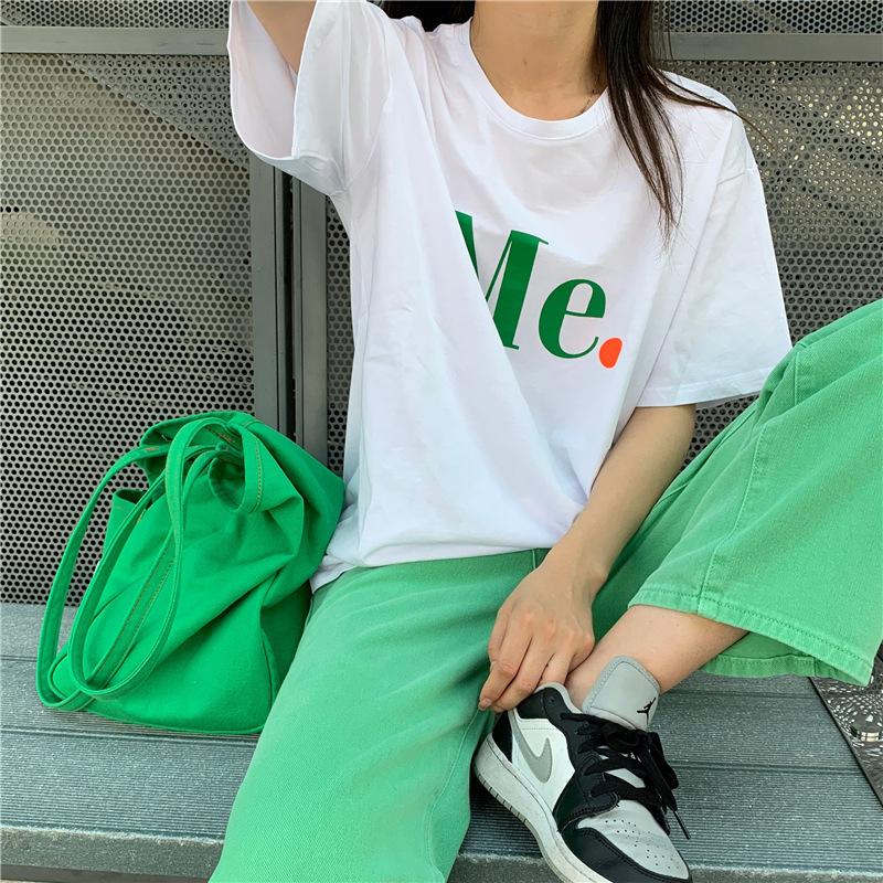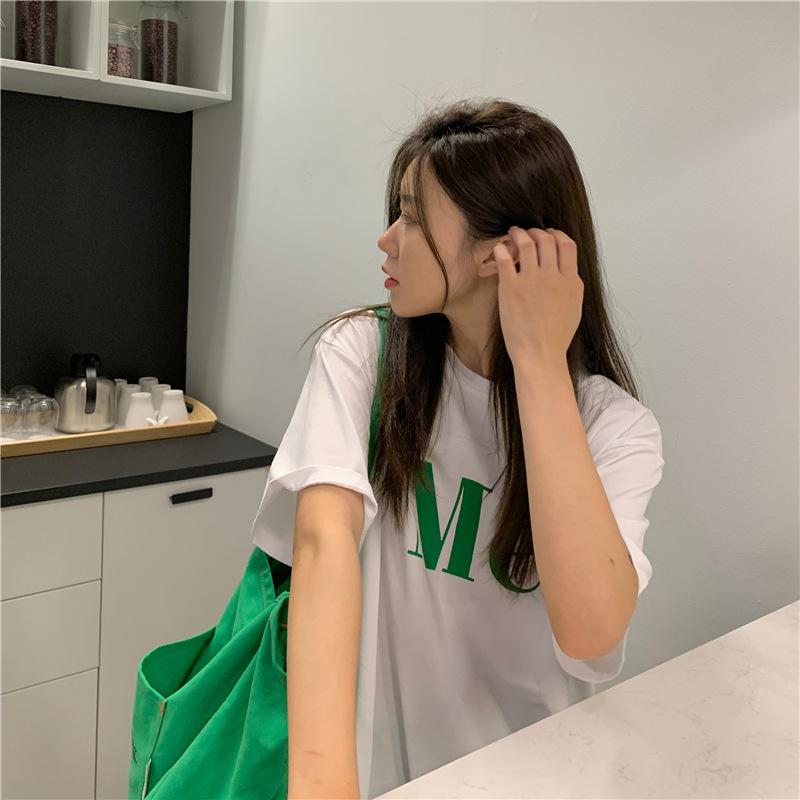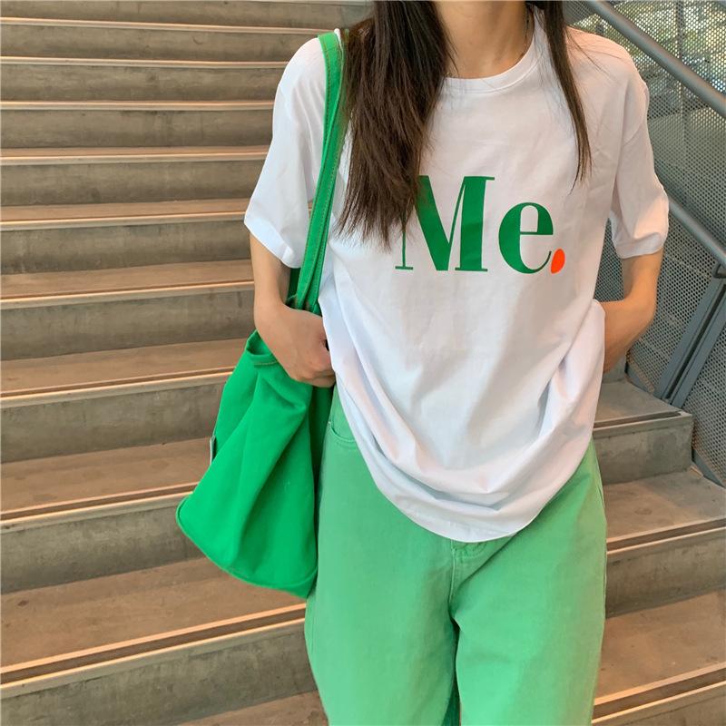 Compra Camiseta de Manga Corta de Algodón Puro con Estampado de Letras de Marca de Moda Estilo Coreano para Mujer Verano Nuevo Ins Manga Media Estilo Americano Vintage High Street Talla Grande al por mayor en Joom.pro