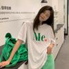 Camiseta de Manga Corta de Algodón Puro con Estampado de Letras de Marca de Moda Estilo Coreano para Mujer Verano Nuevo Ins Manga Media Estilo Americano Vintage High Street Talla Grande