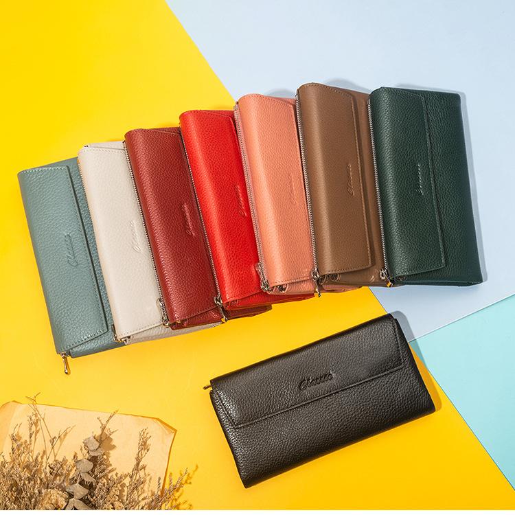 Compra Billetera de Cuero Genuino Procesada a Medida de Fábrica para Mujer Larga Transfronteriza de Primera Capa de Cuero Vacuno Bolso Clutch Billetera de Cuero Vacuno para Mujer al por mayor en Joom.pro
