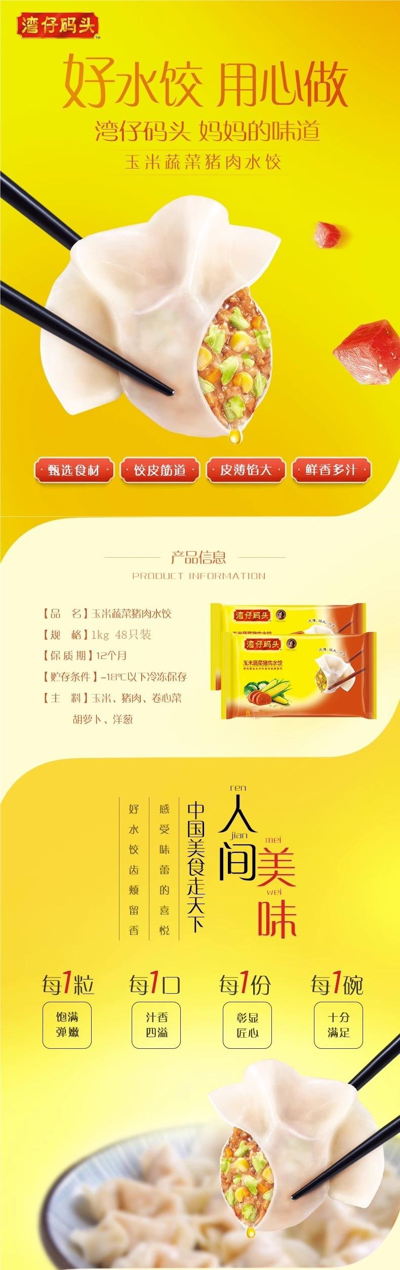 Dumplings de Puerro y Cerdo, Dumplings Congelados 1kg, Comida Instantánea de Maíz Wan Chai Pier con 3 Rellenos, Perifollo Silvestre
