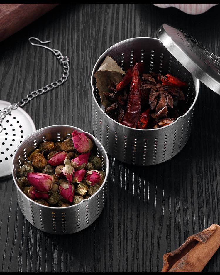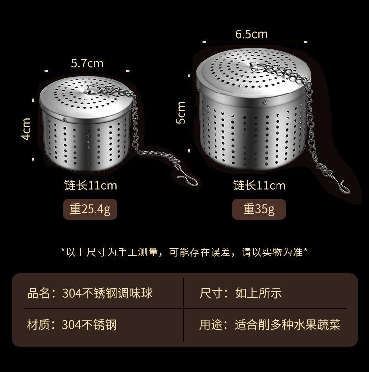 Bola de condimento de acero inoxidable 304 caja de condimento para cocinar en la cocina Té Té Filtro de té bola para sopa y adobo tesoro de sabor