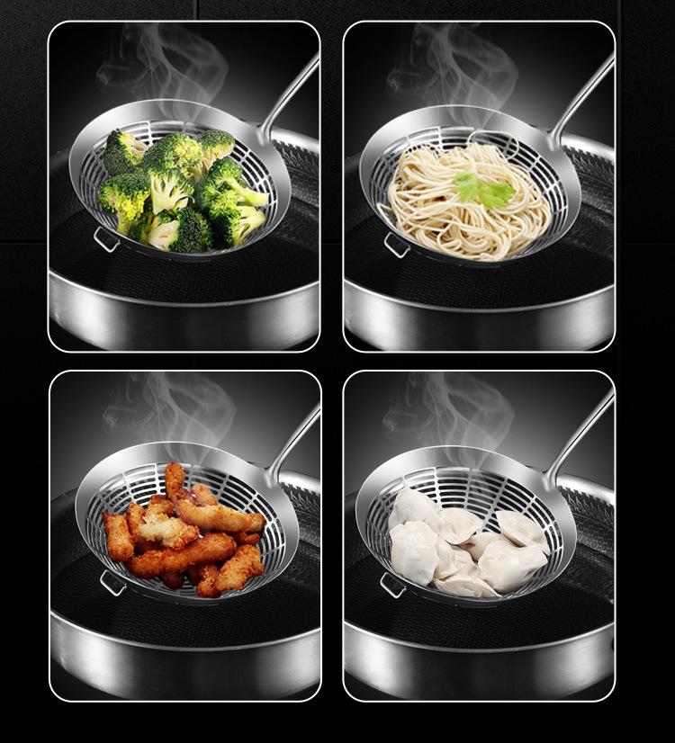 Colador de acero inoxidable 304 para el hogar, cocina, pantalla filtrante, cuchara grande para freír, pesca de fideos, pesca de dumplings