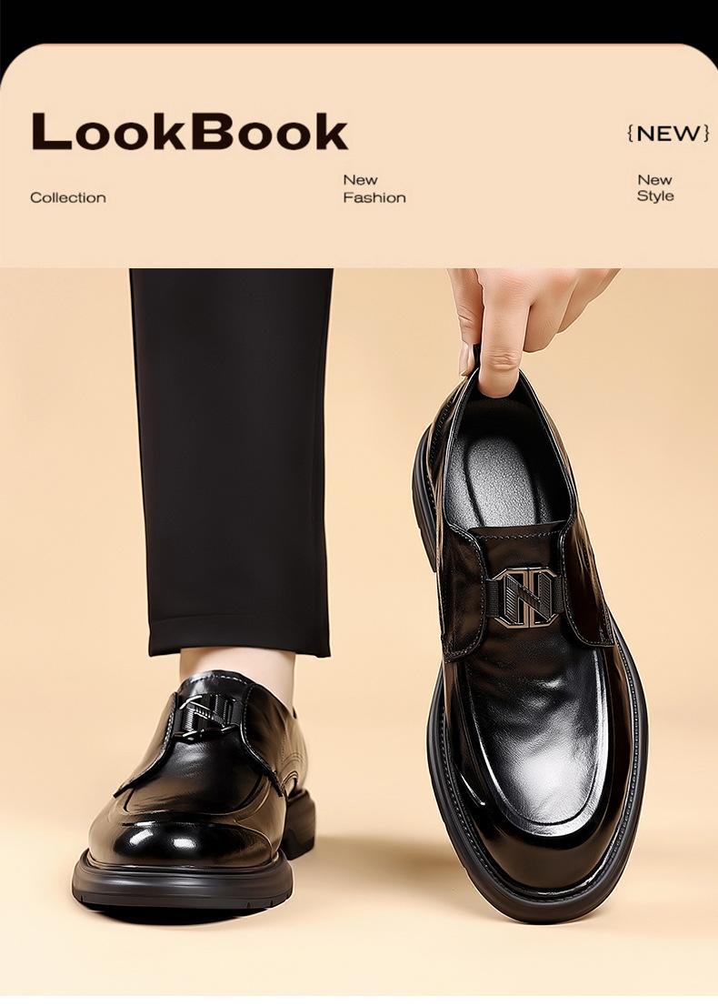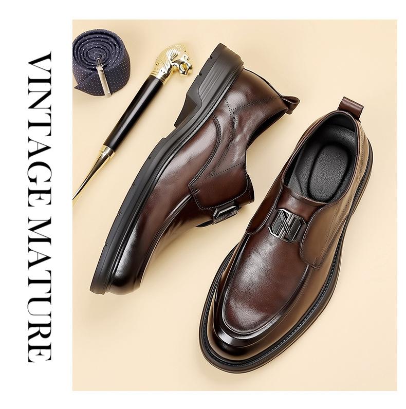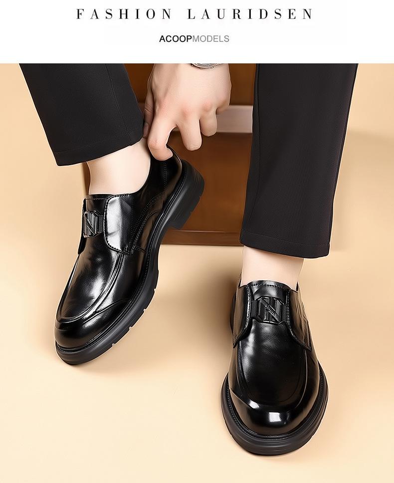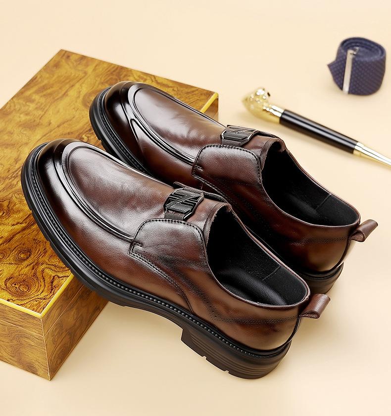 Zapatos Casuales de Hombre Slip-On de Suela Blanda y Superficie Suave, Zapatos de Cuero para Negocios de Piel de Vacuno de Primera Capa Cómodos Británicos para Hombre, Nuevo Estilo