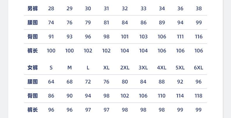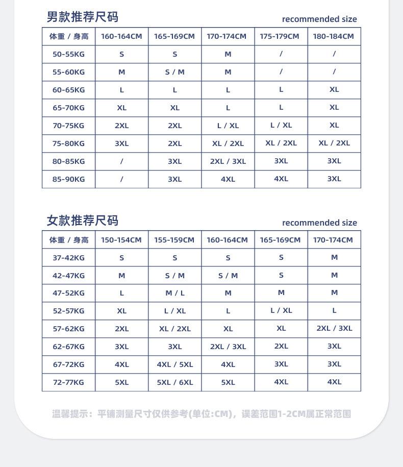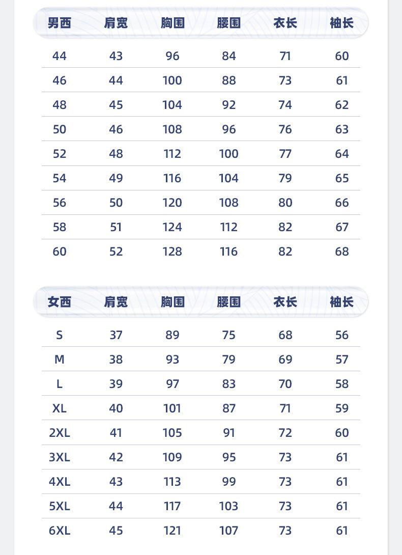 S, M, L, XL, 2XL, 3XL, 4XL, 5XL, 6XL